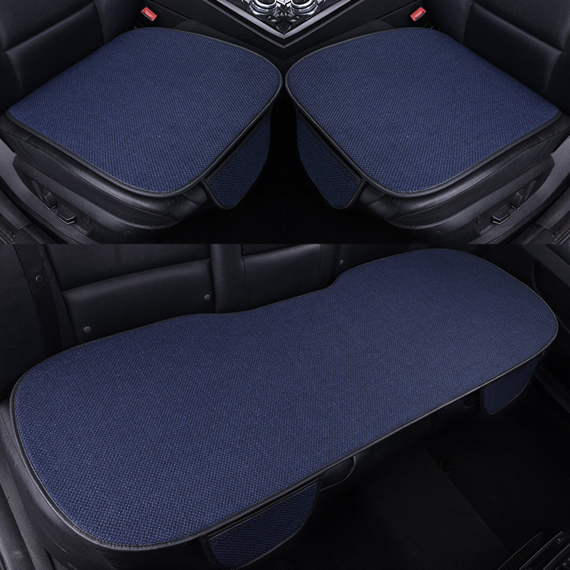 亚麻汽车坐垫座垫四季通用防滑透气免绑五座三件套汽车座椅坐垫