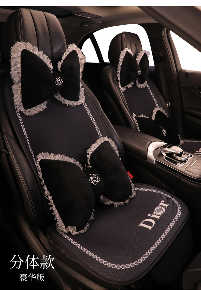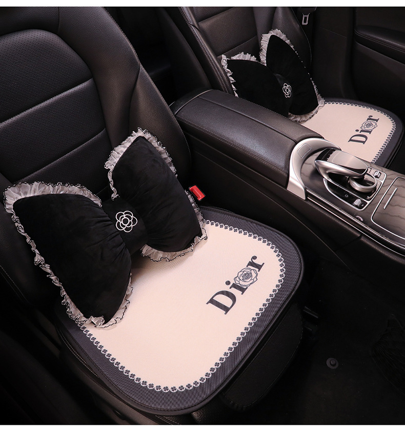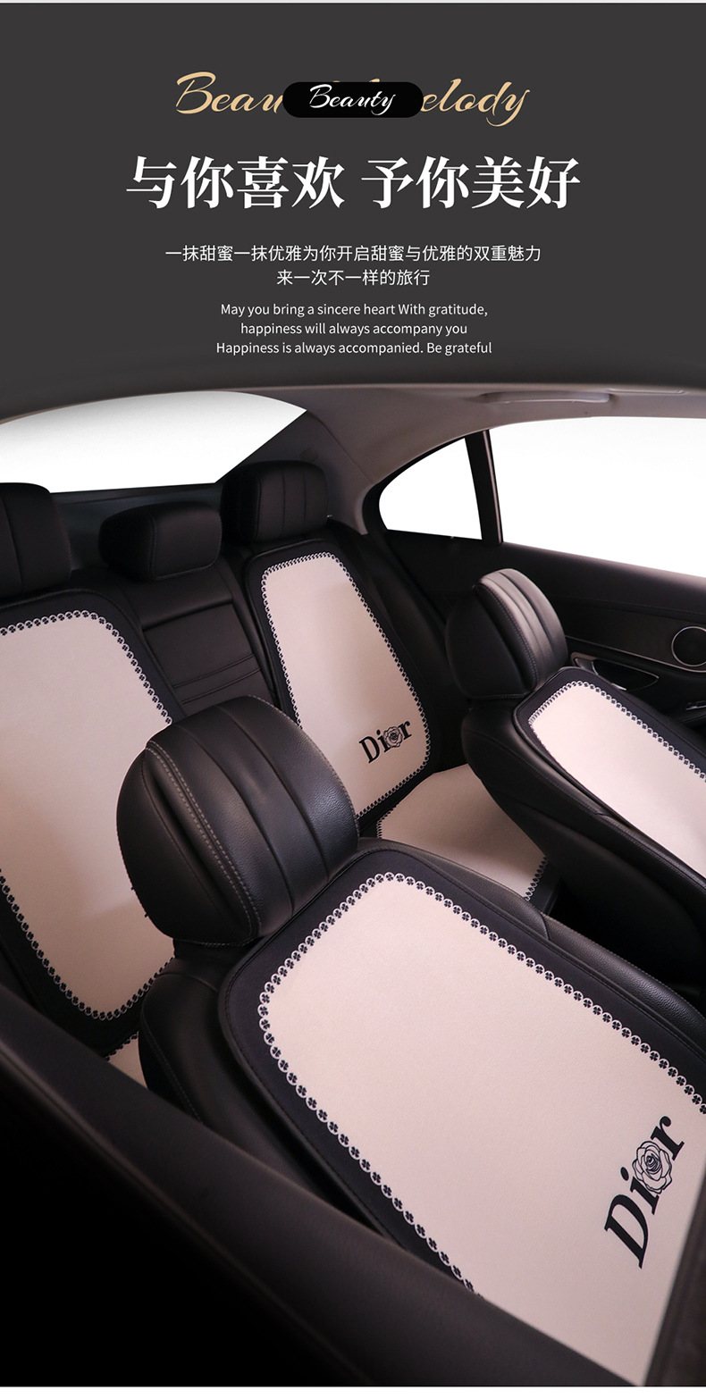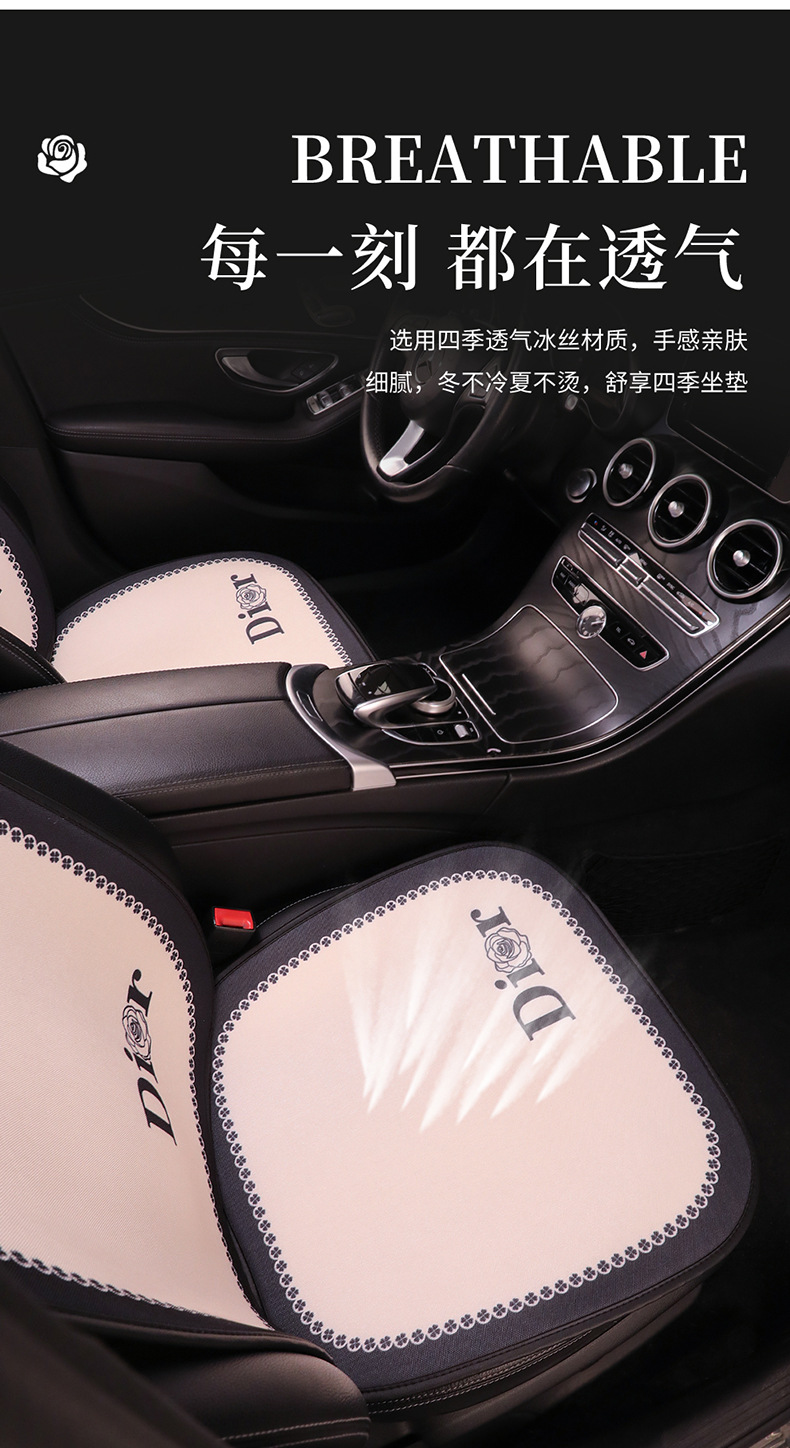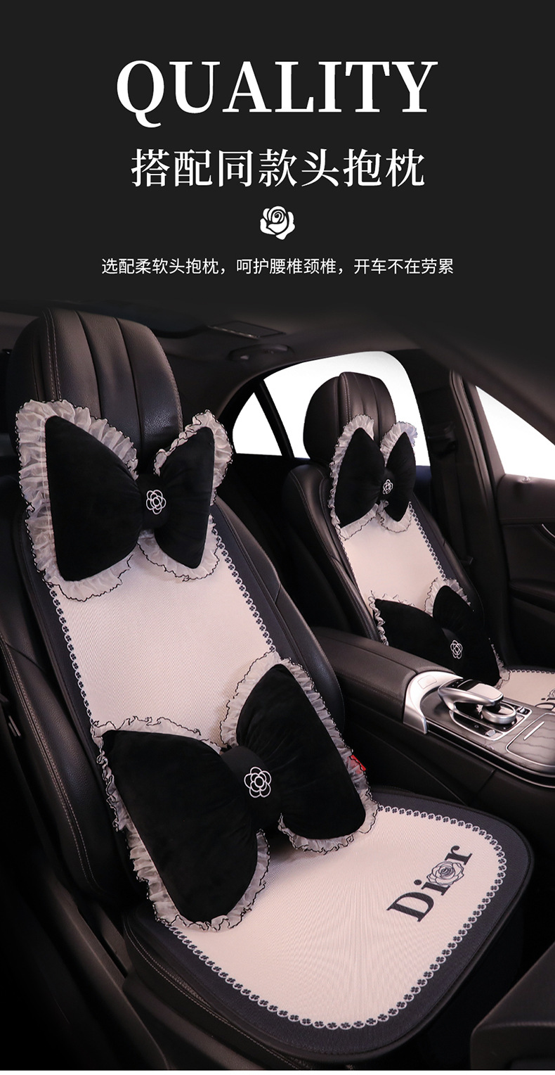 汽车坐垫四季通用小香风亚麻透气网红女士车内座椅套座垫座套高级