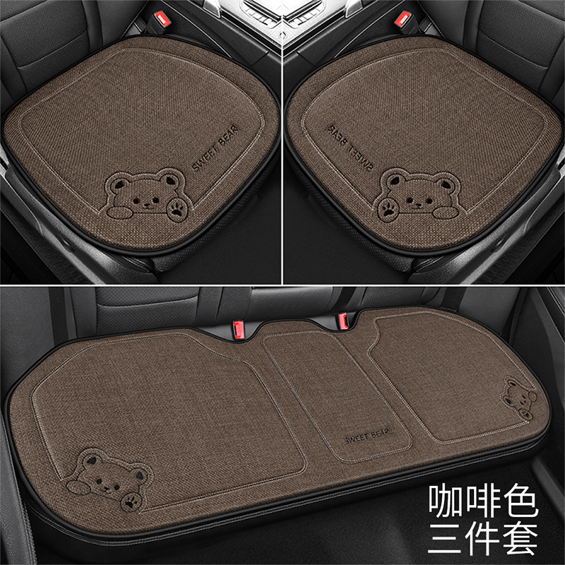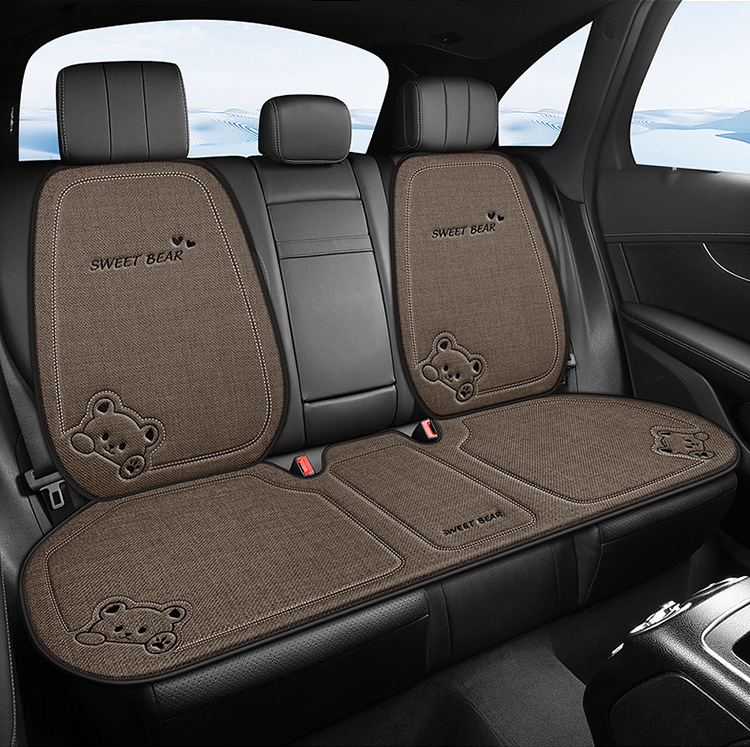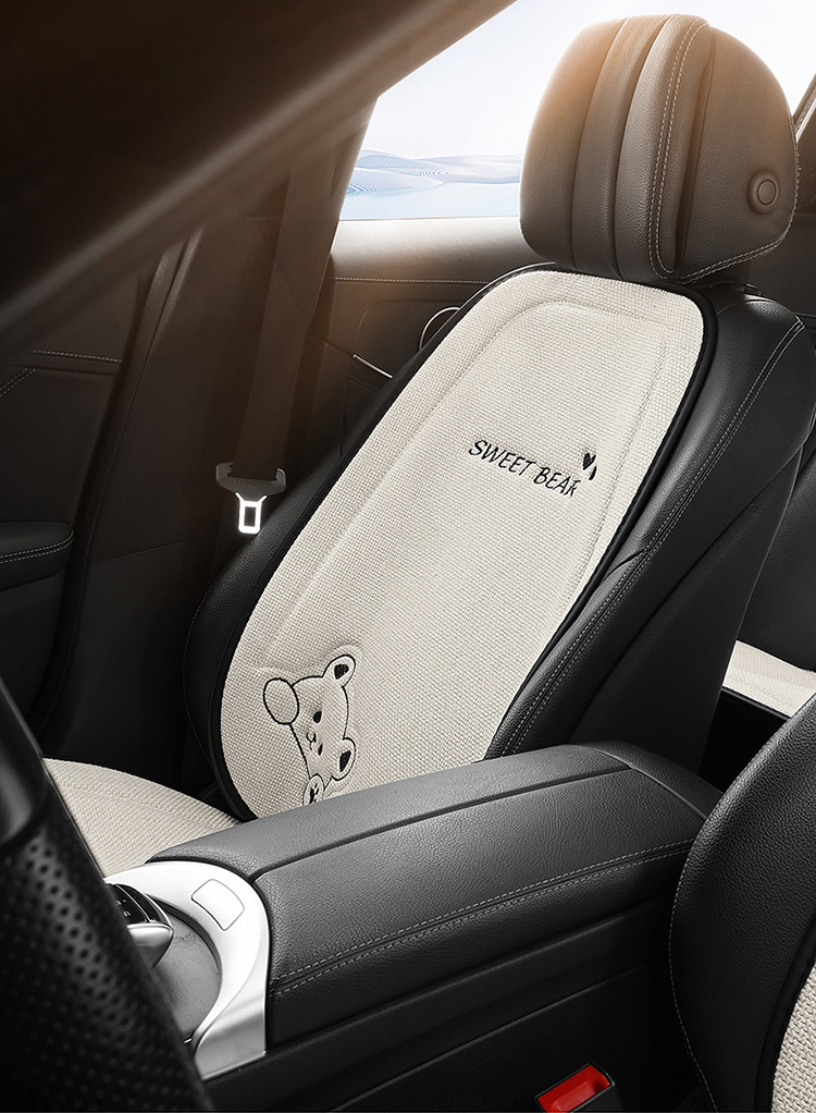 2024年新款现货批发可爱简约卡通女甜甜熊淳麻四季汽车坐垫多件套
