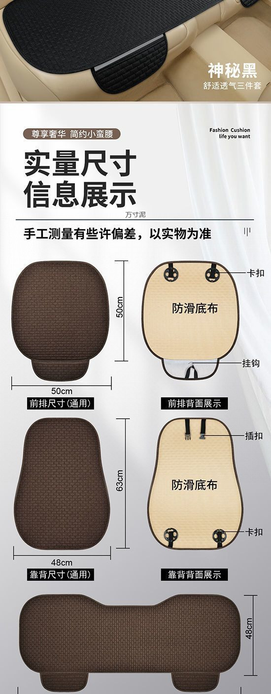 汽车坐垫四季通用单片亚麻三件套车内后排座椅垫透气车用座垫批发