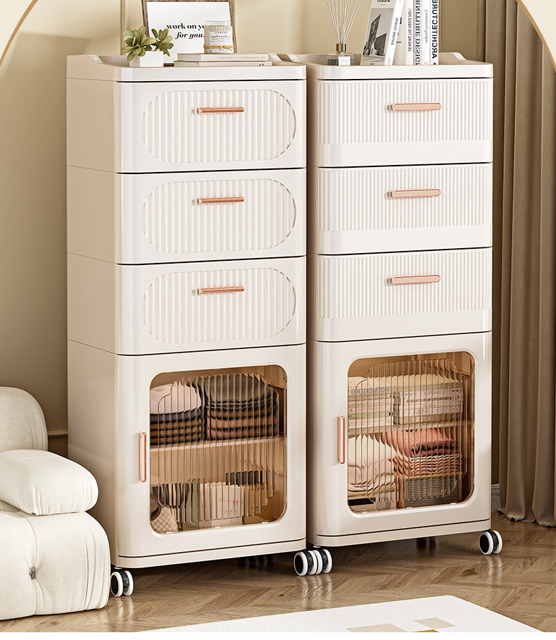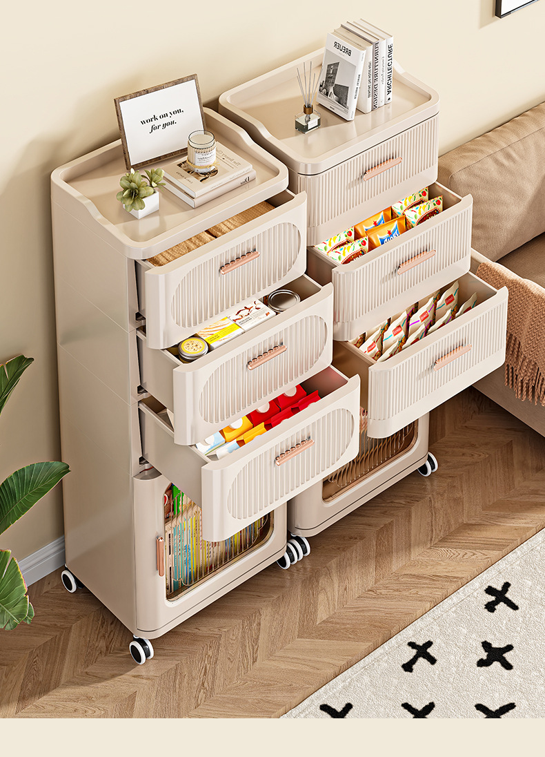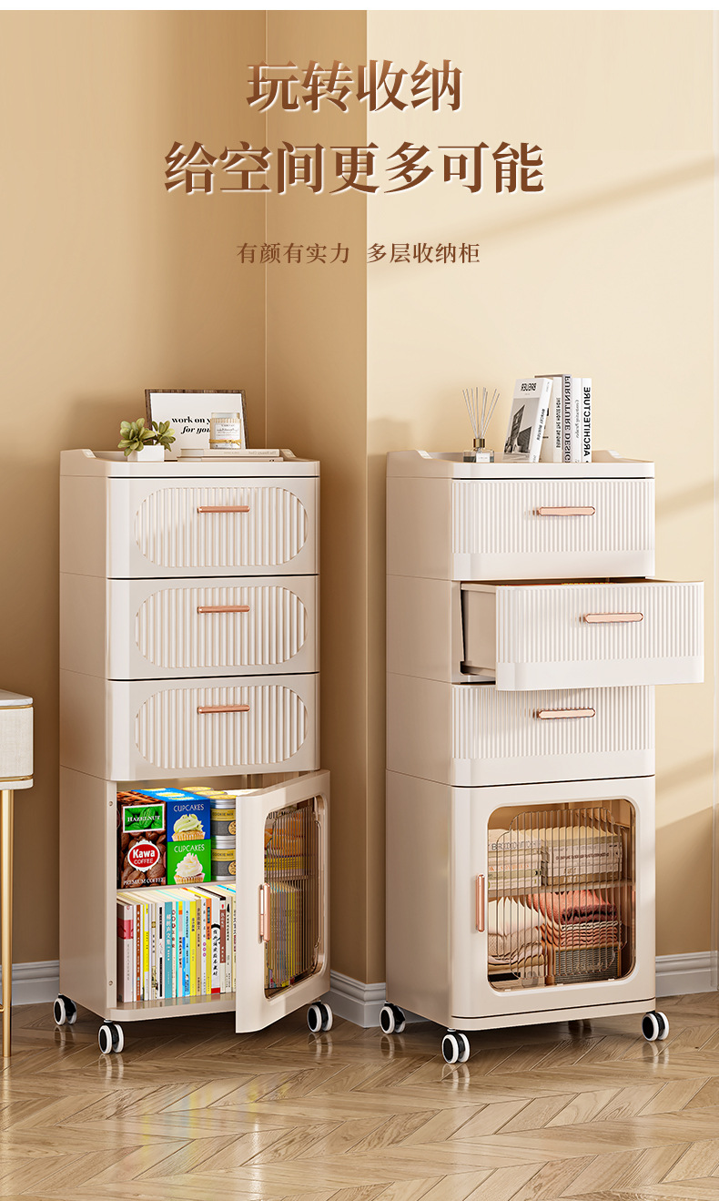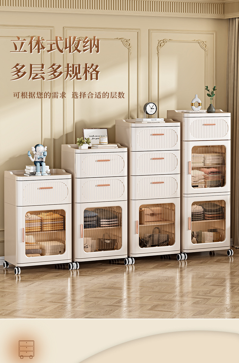 塑料抽屉式收纳柜客厅置物柜多层夹缝储物柜子家用日式卧室床头柜