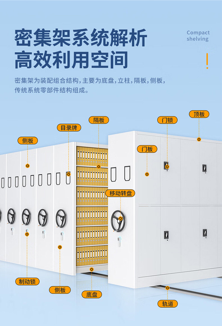 密集架档案室密集柜手摇移动档案资料凭证文件柜电动智能密集货架