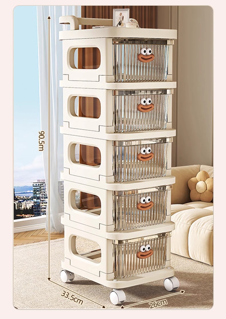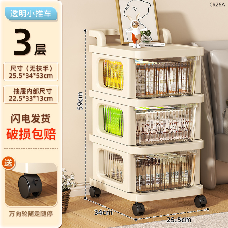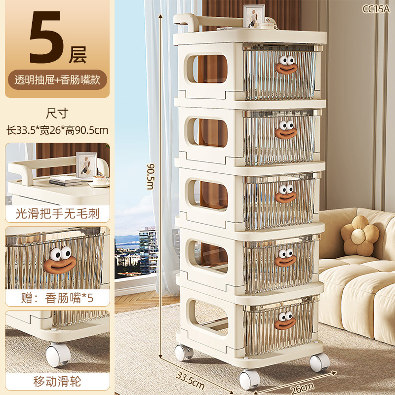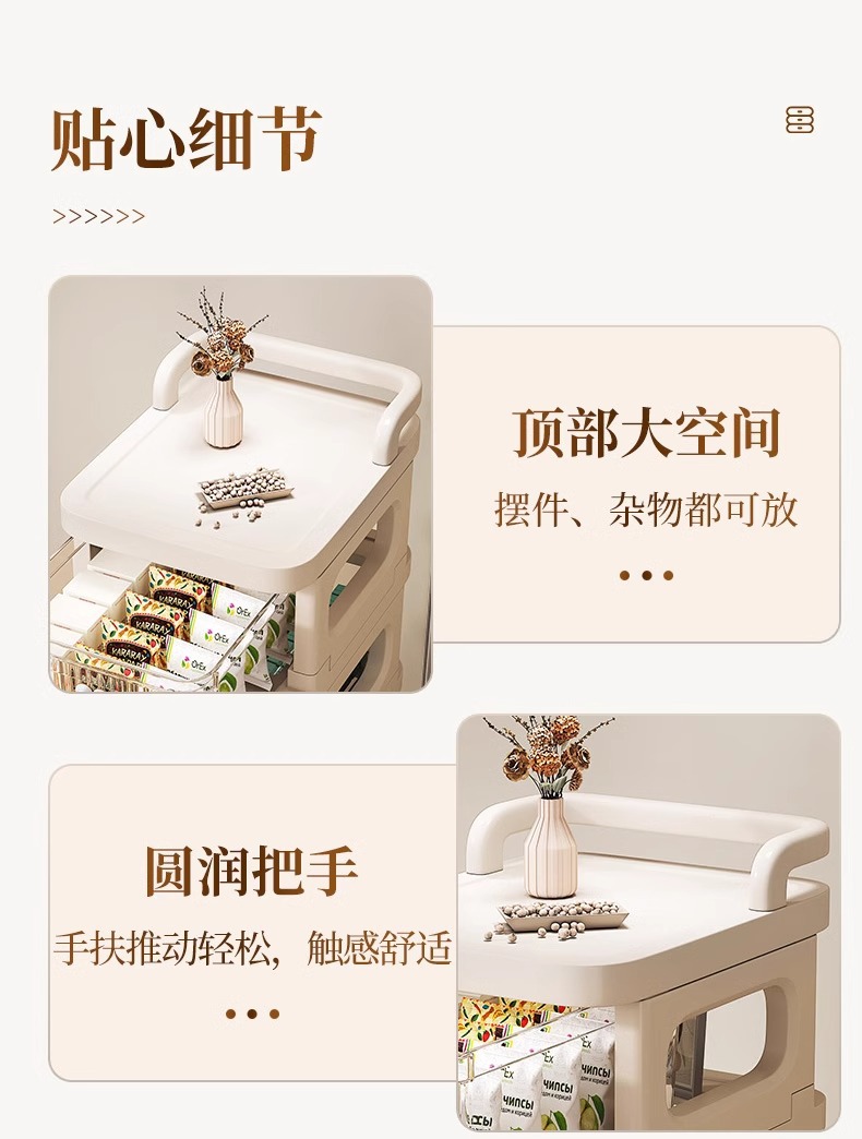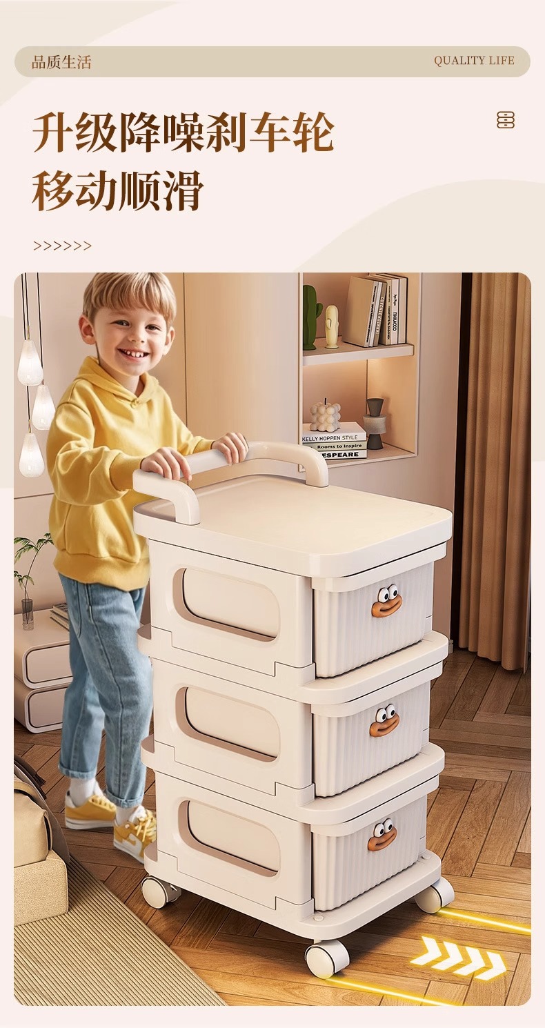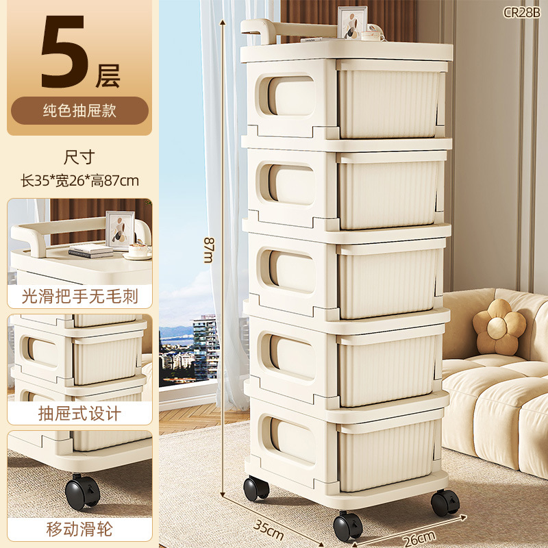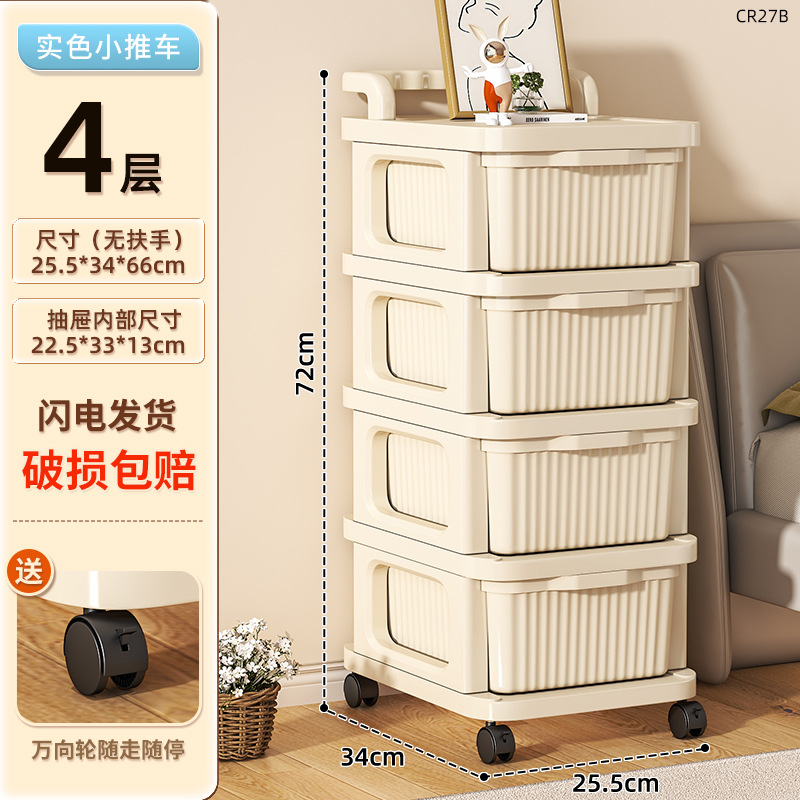 跨境供应客厅杂物收纳柜可移动小推车卧室床头衣物置物多层抽屉柜