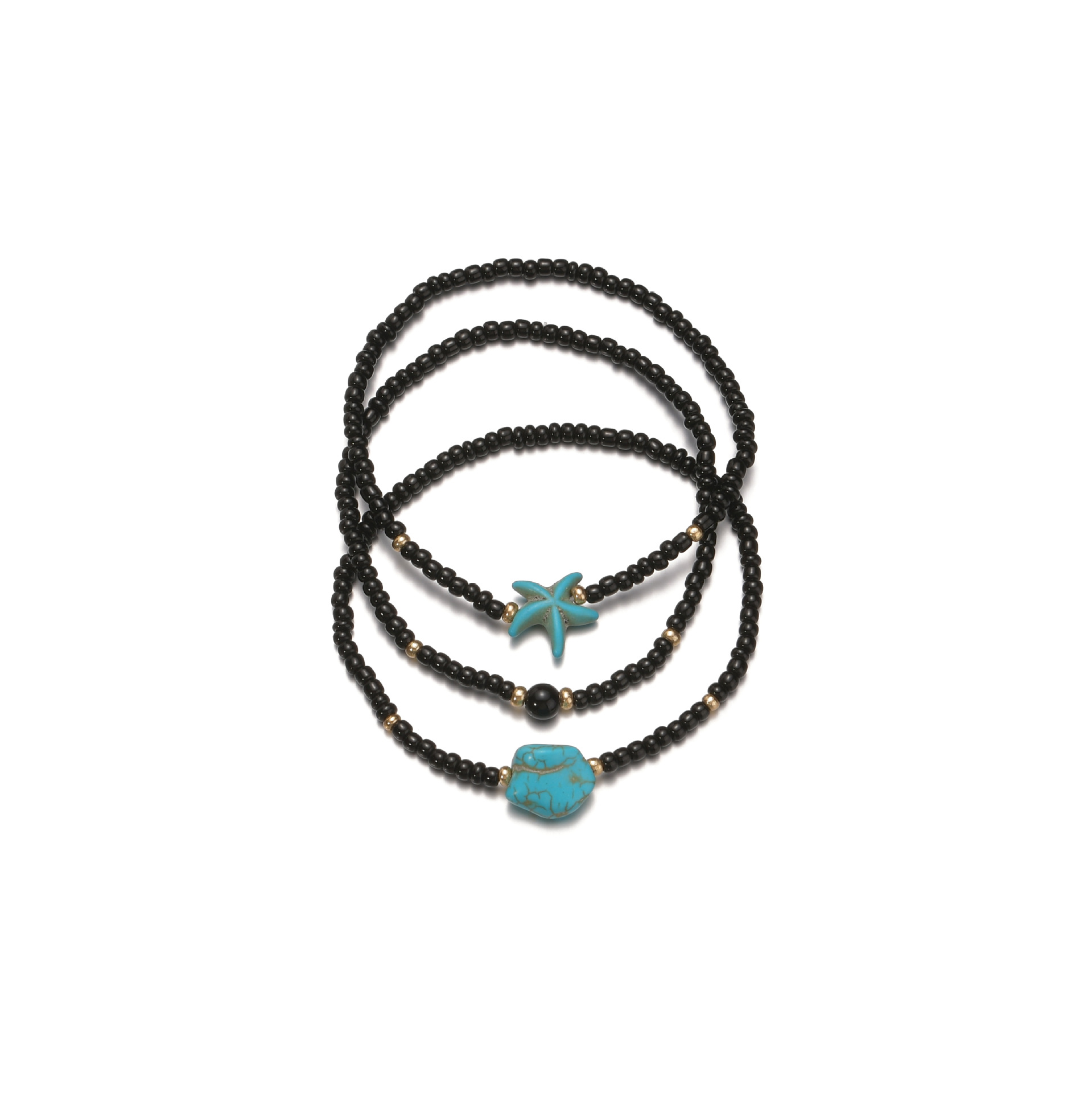 波西米亚度假风不规则松石海星米珠弹力脚链3件套适合沙滩派对