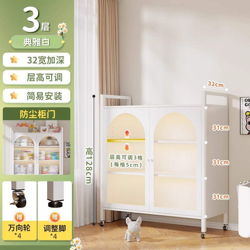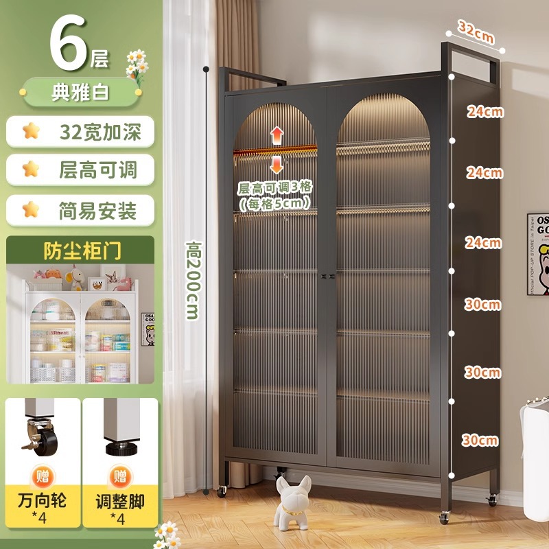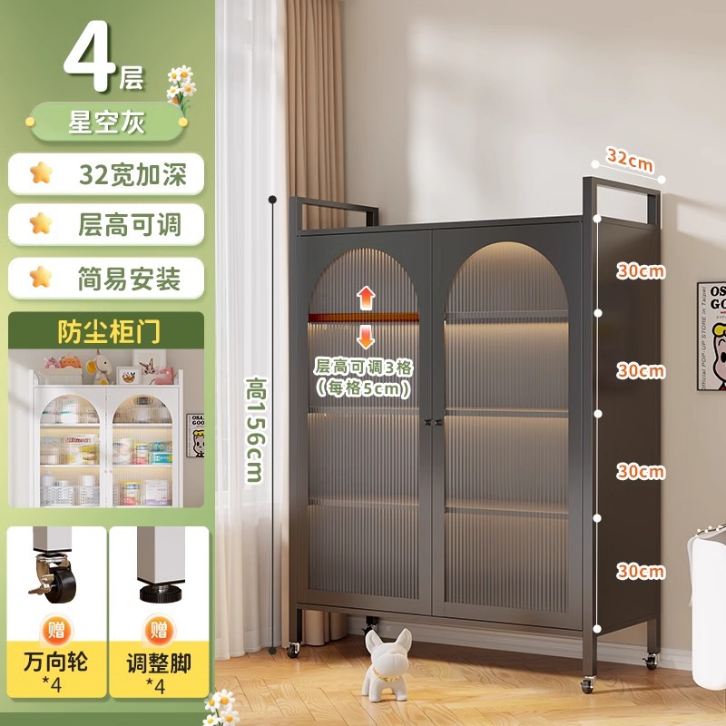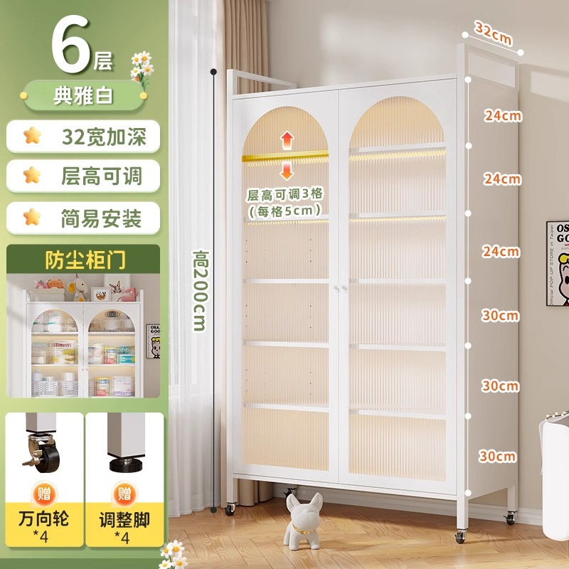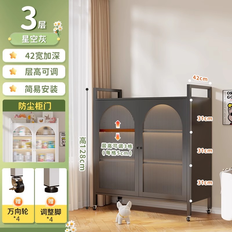 家用收纳柜钢制置物柜阳台储物柜多层落地零食柜收纳架铁艺置物架
