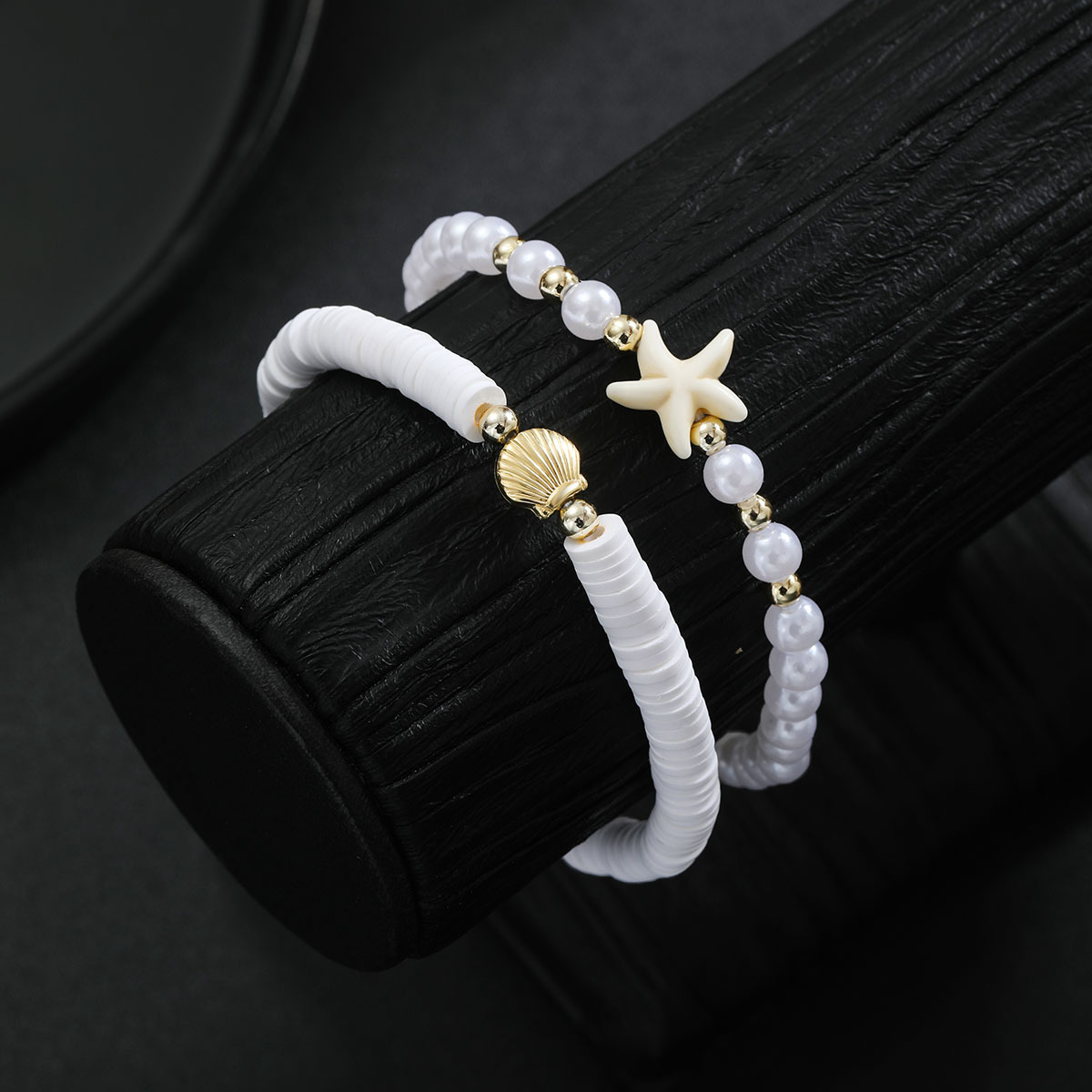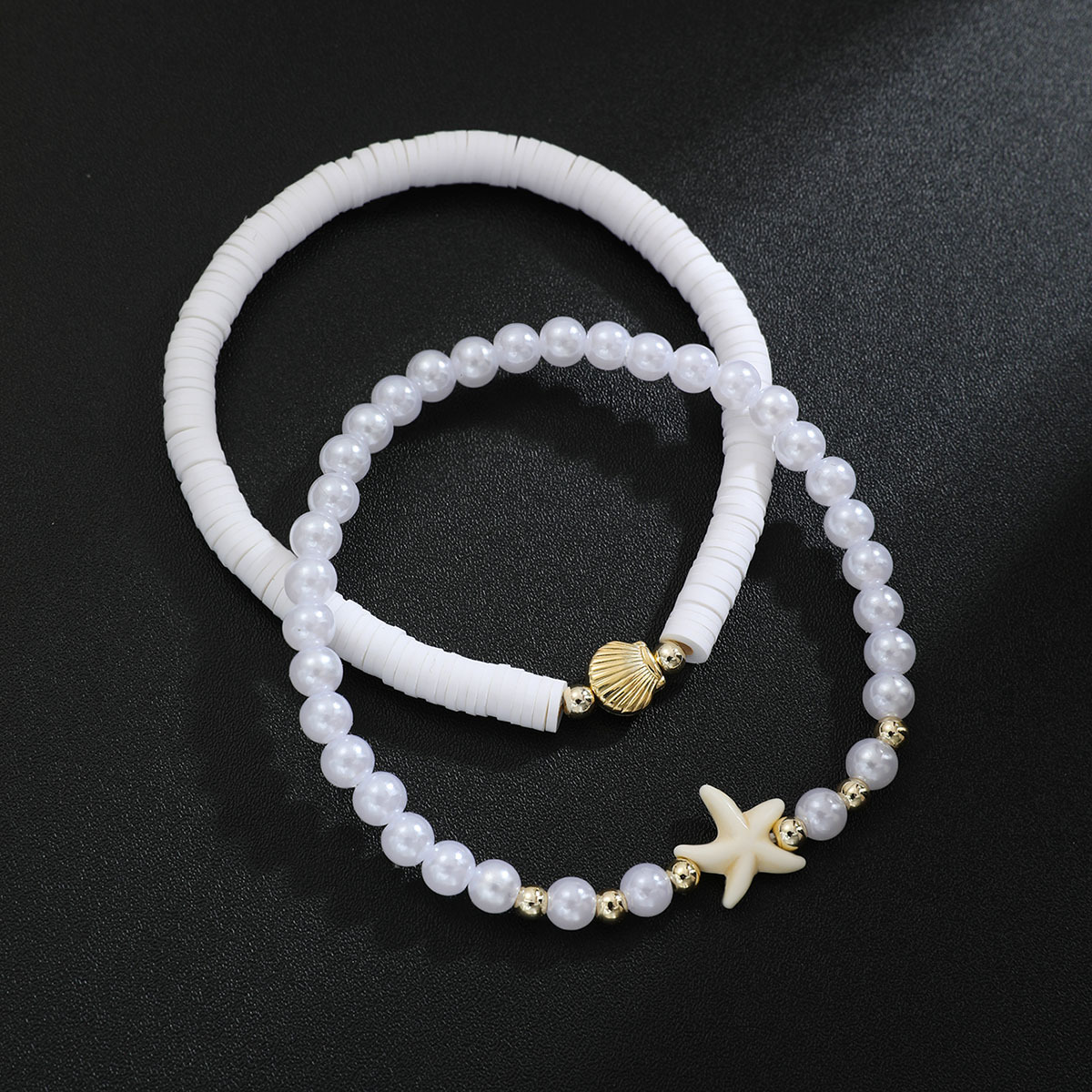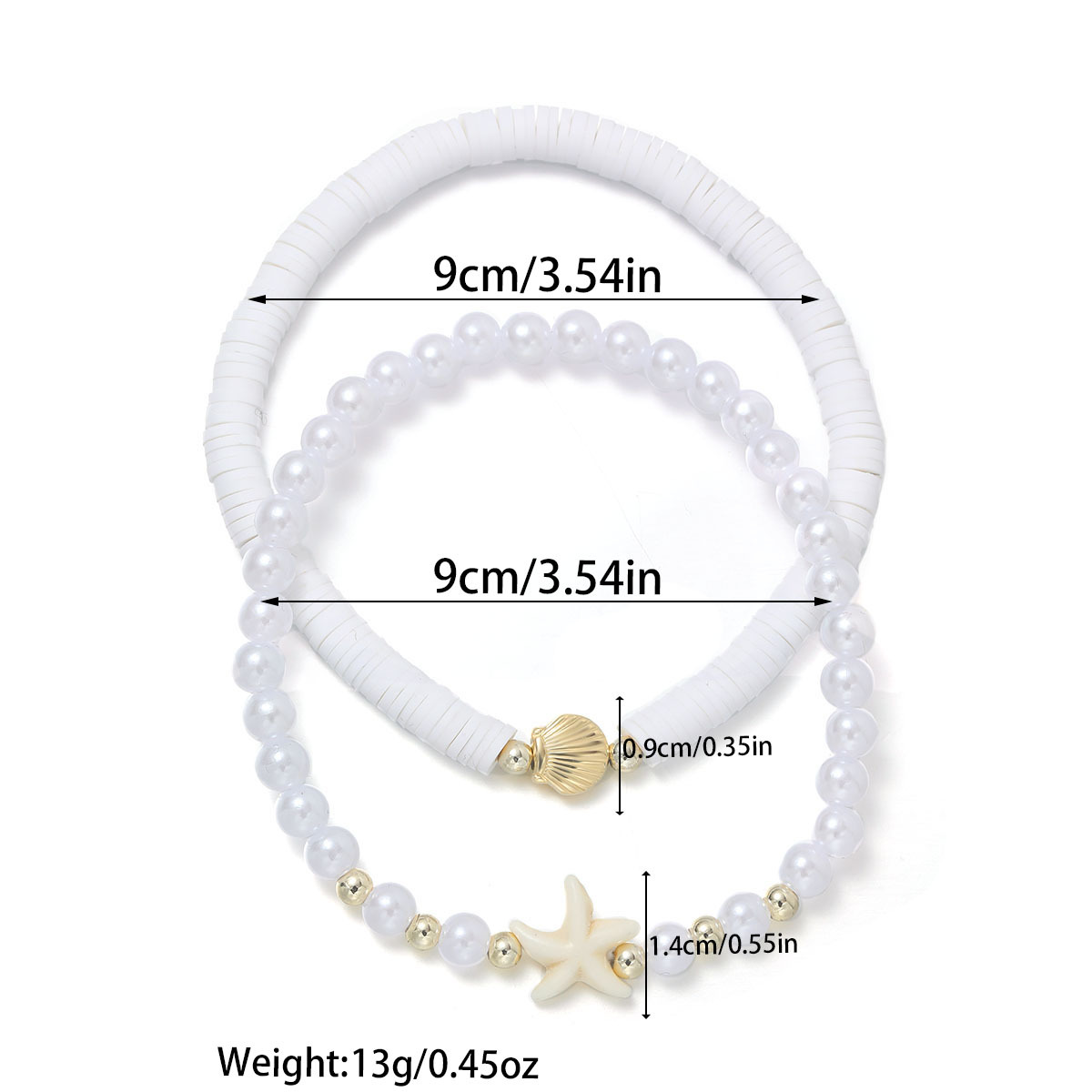 跨境波西米亚海洋风合金扇贝松石海星软陶珍珠弹力女式脚链2件套
