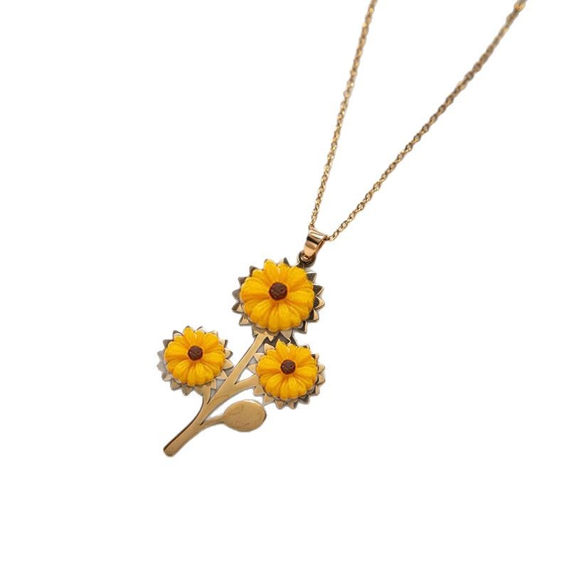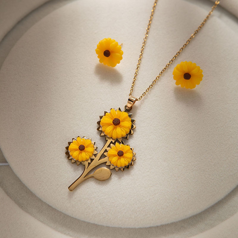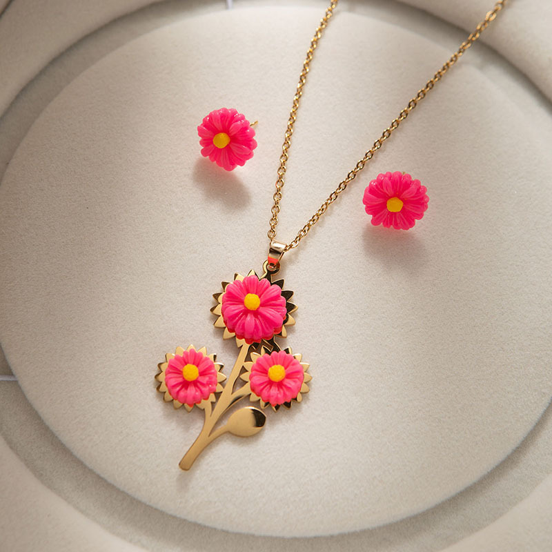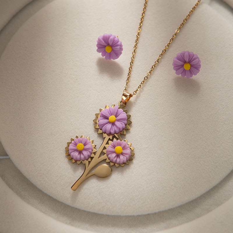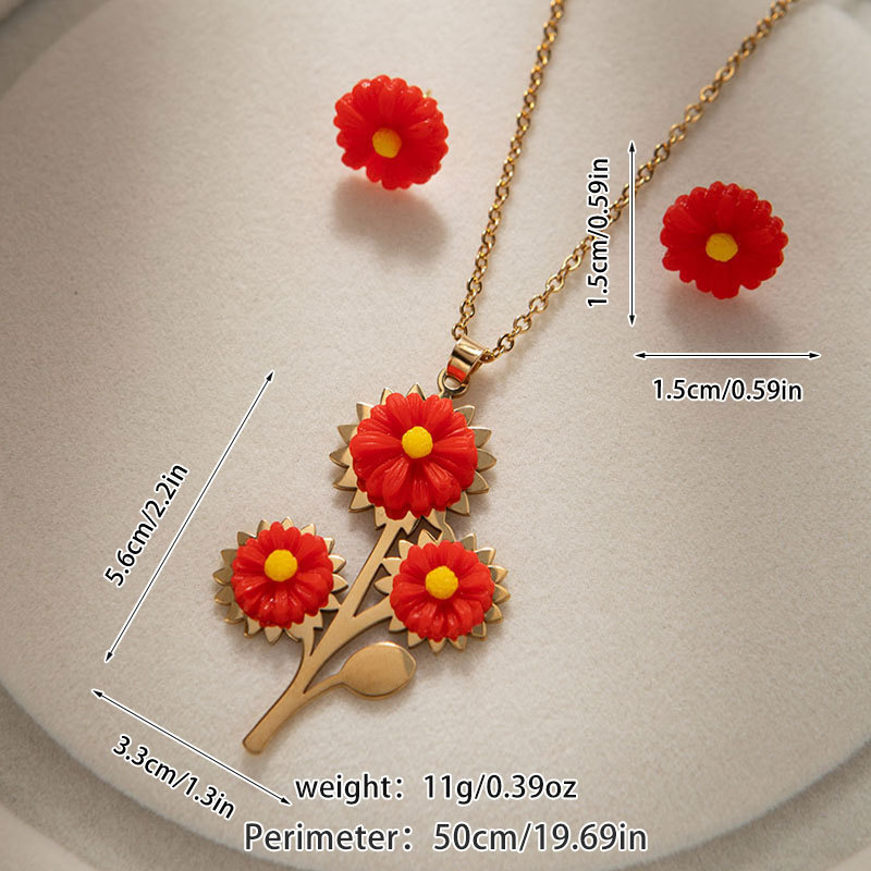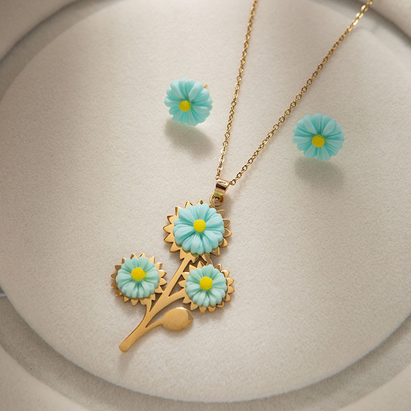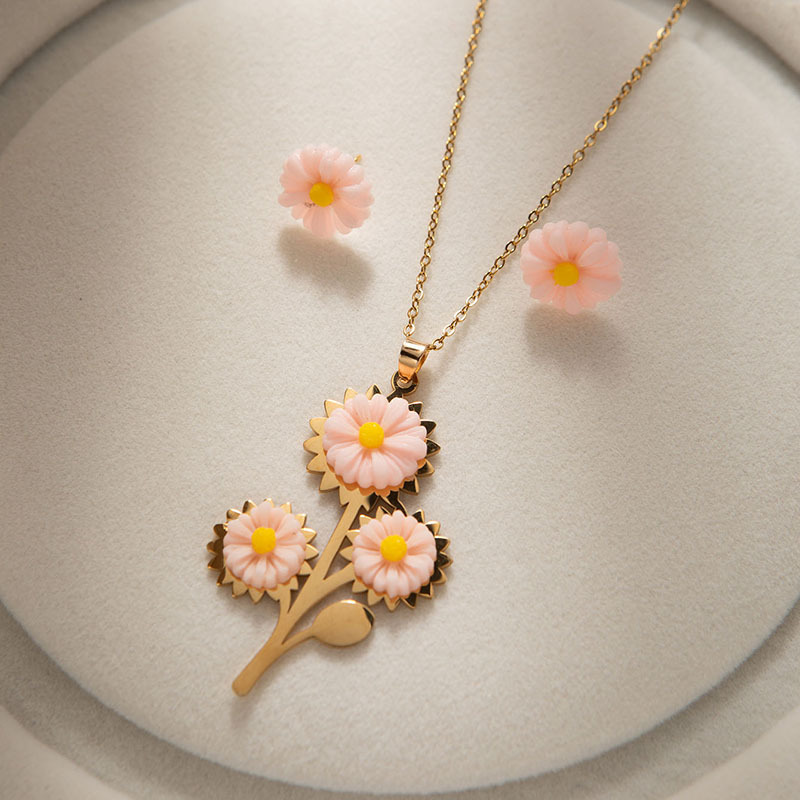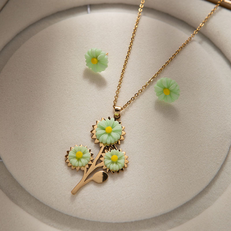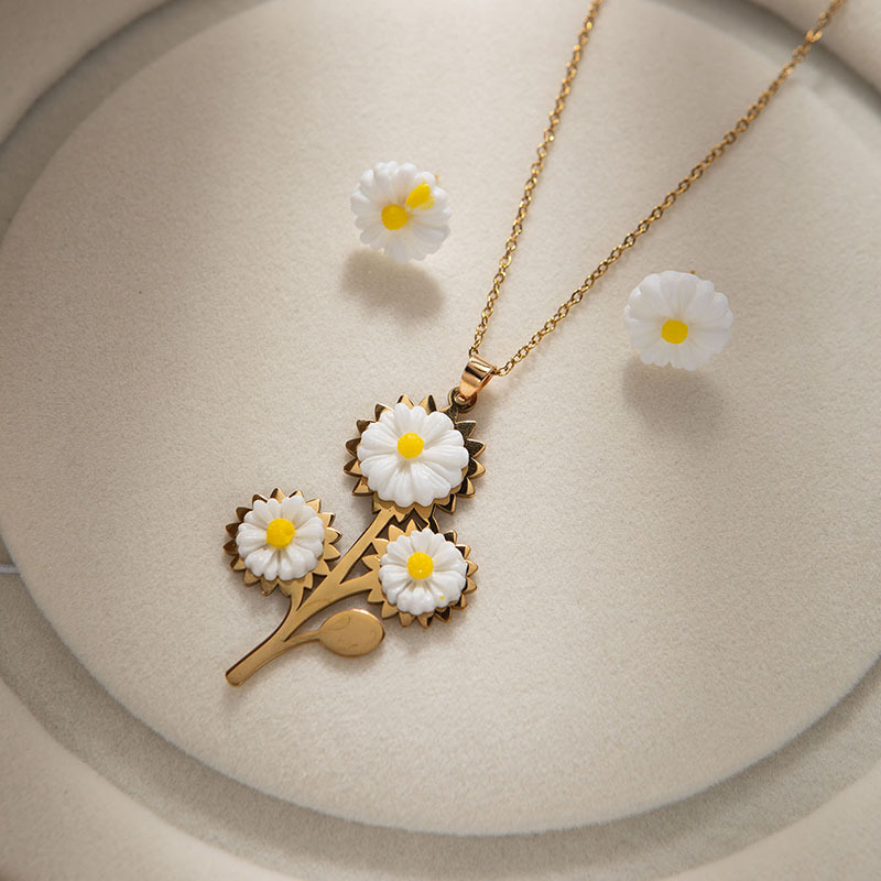 跨境爆款小雏菊项链耳钉套装轻奢钛钢锁骨链耳环女波西米亚风饰品