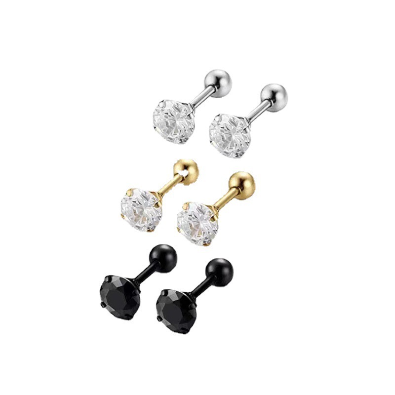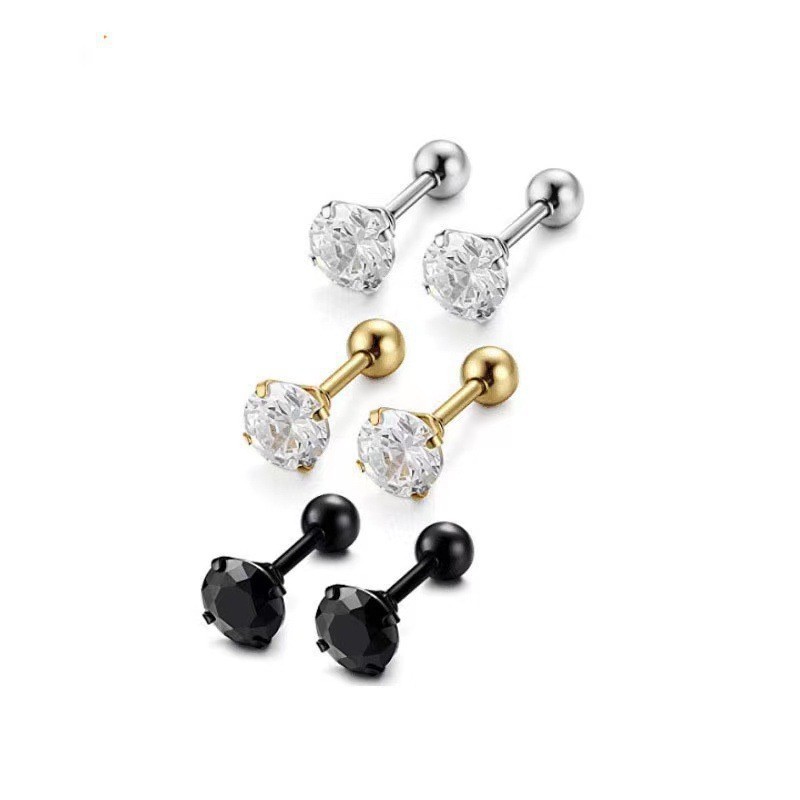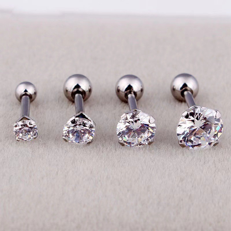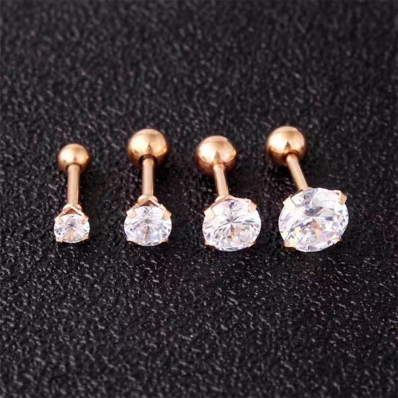 金属螺纹韩版女式时尚4爪锆石钛钢简约女个性小耳饰耳钉耳骨钉饰
