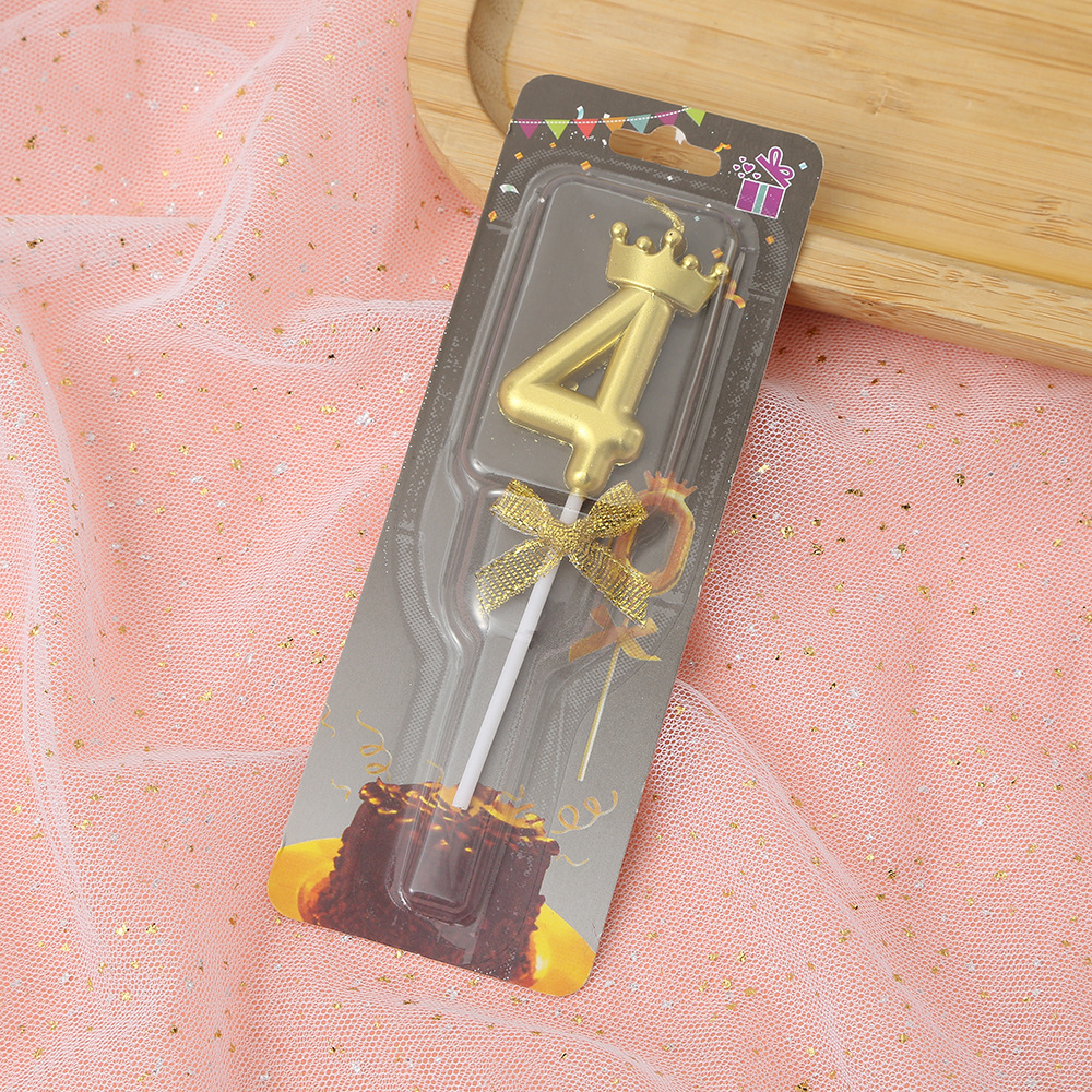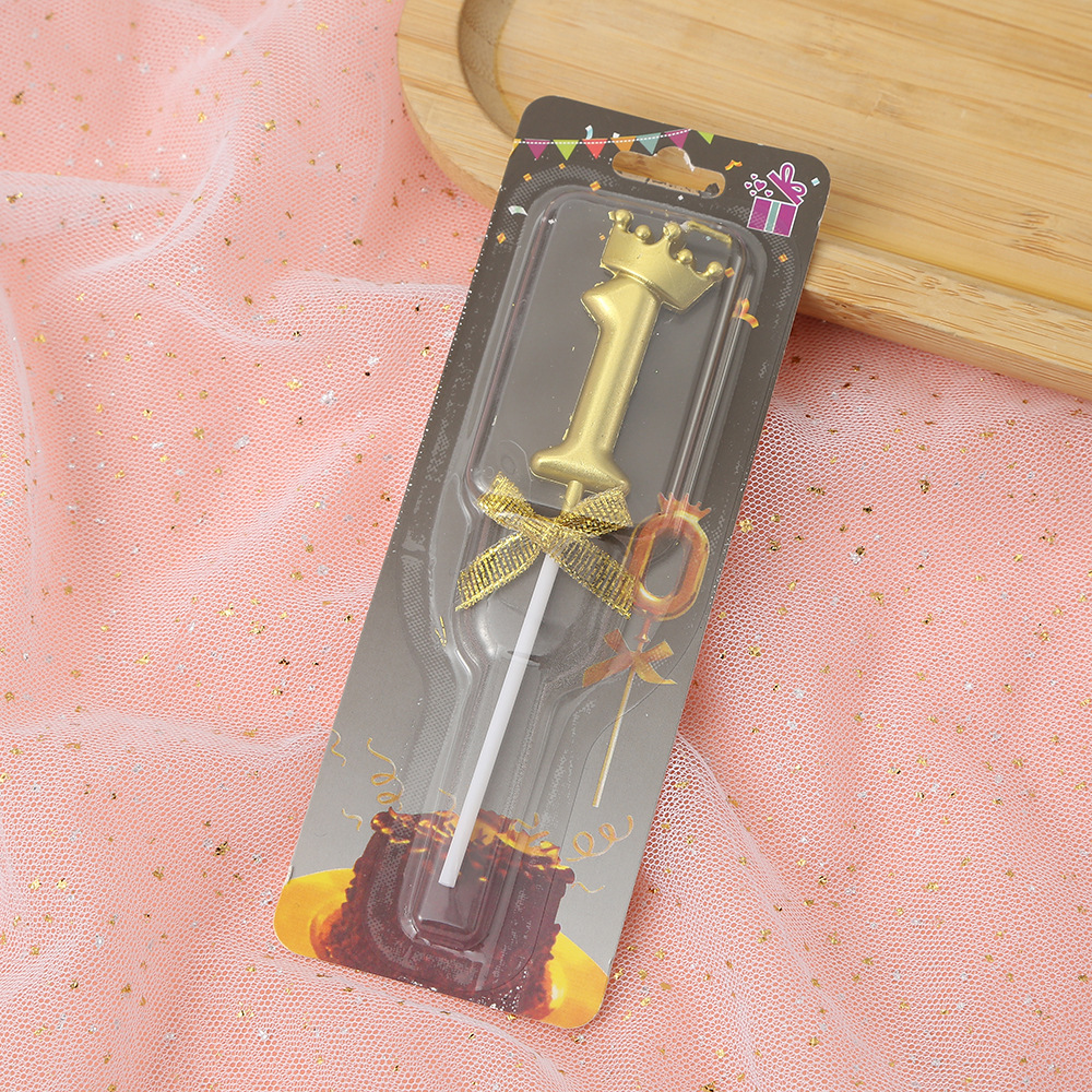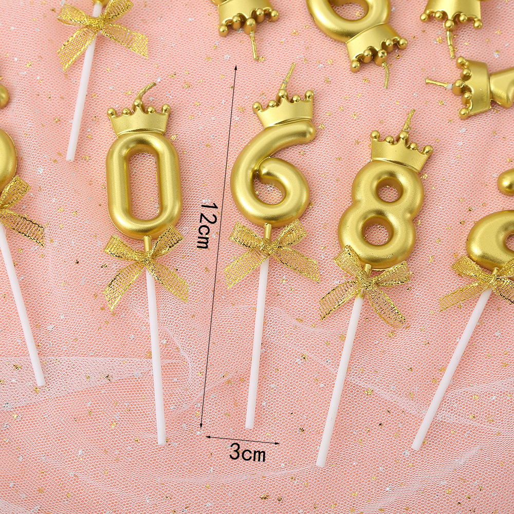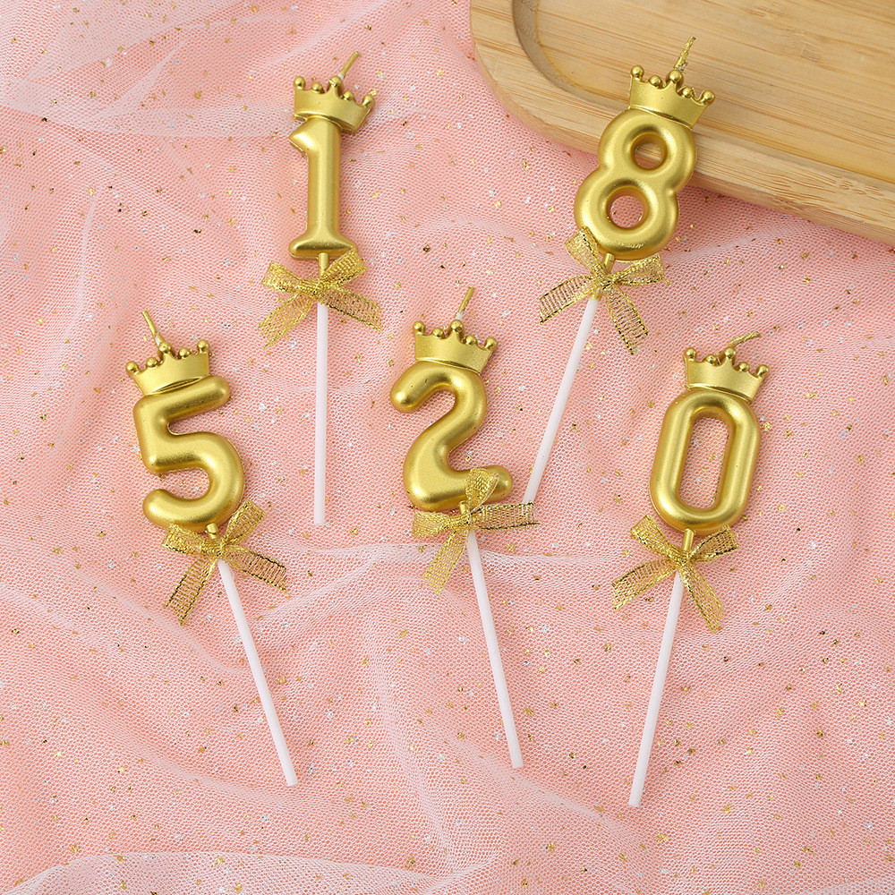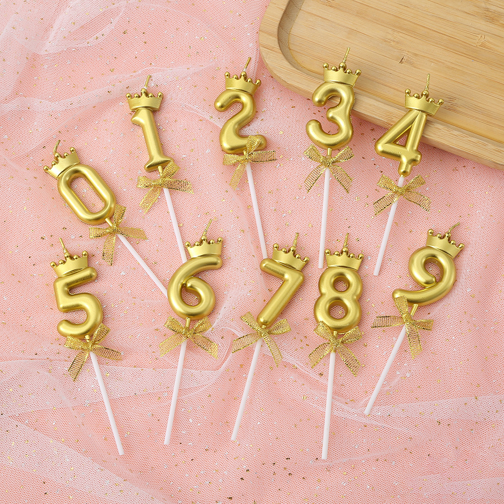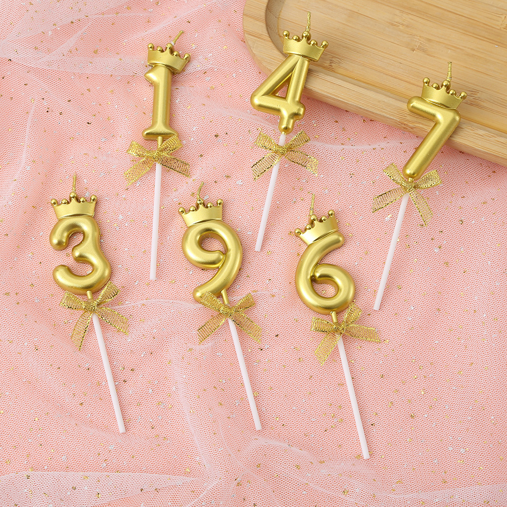 金色皇冠蝴蝶结数字蜡烛生日蛋糕插旗 儿童周岁烘焙蛋糕装饰插件