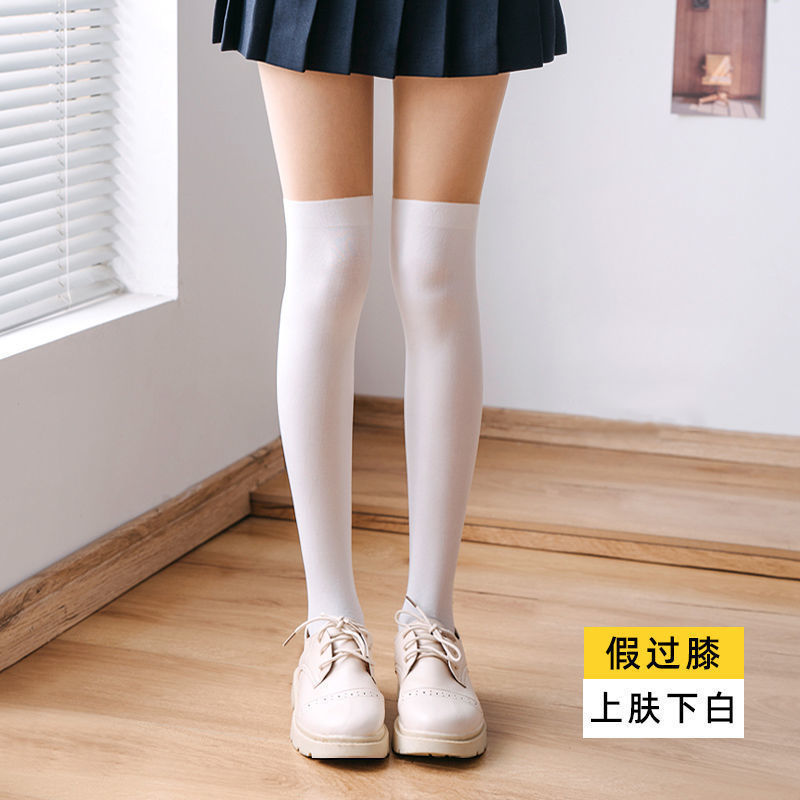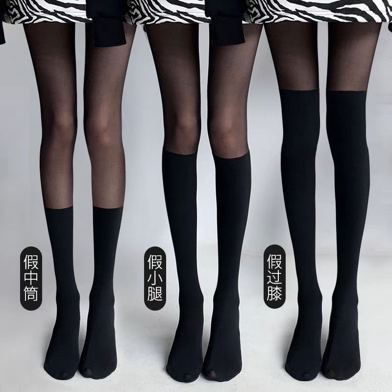 厂批发网红薄款拼接黑色打底袜丝袜性感JK风假过膝防勾丝连裤丝袜