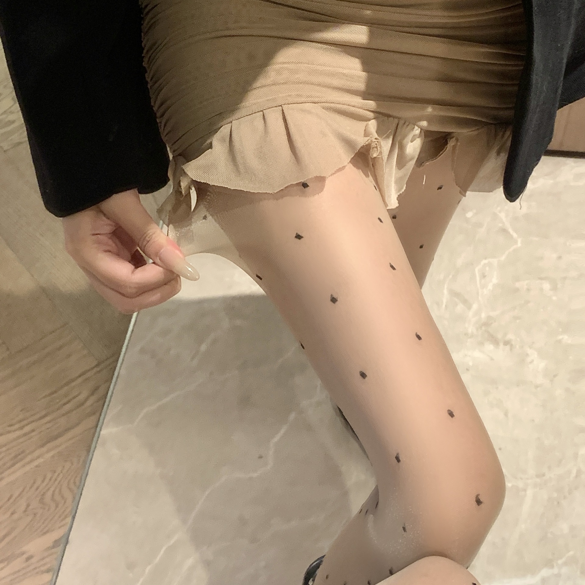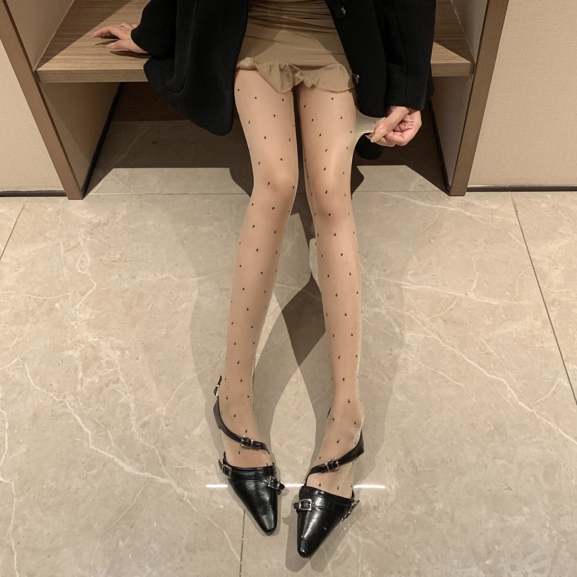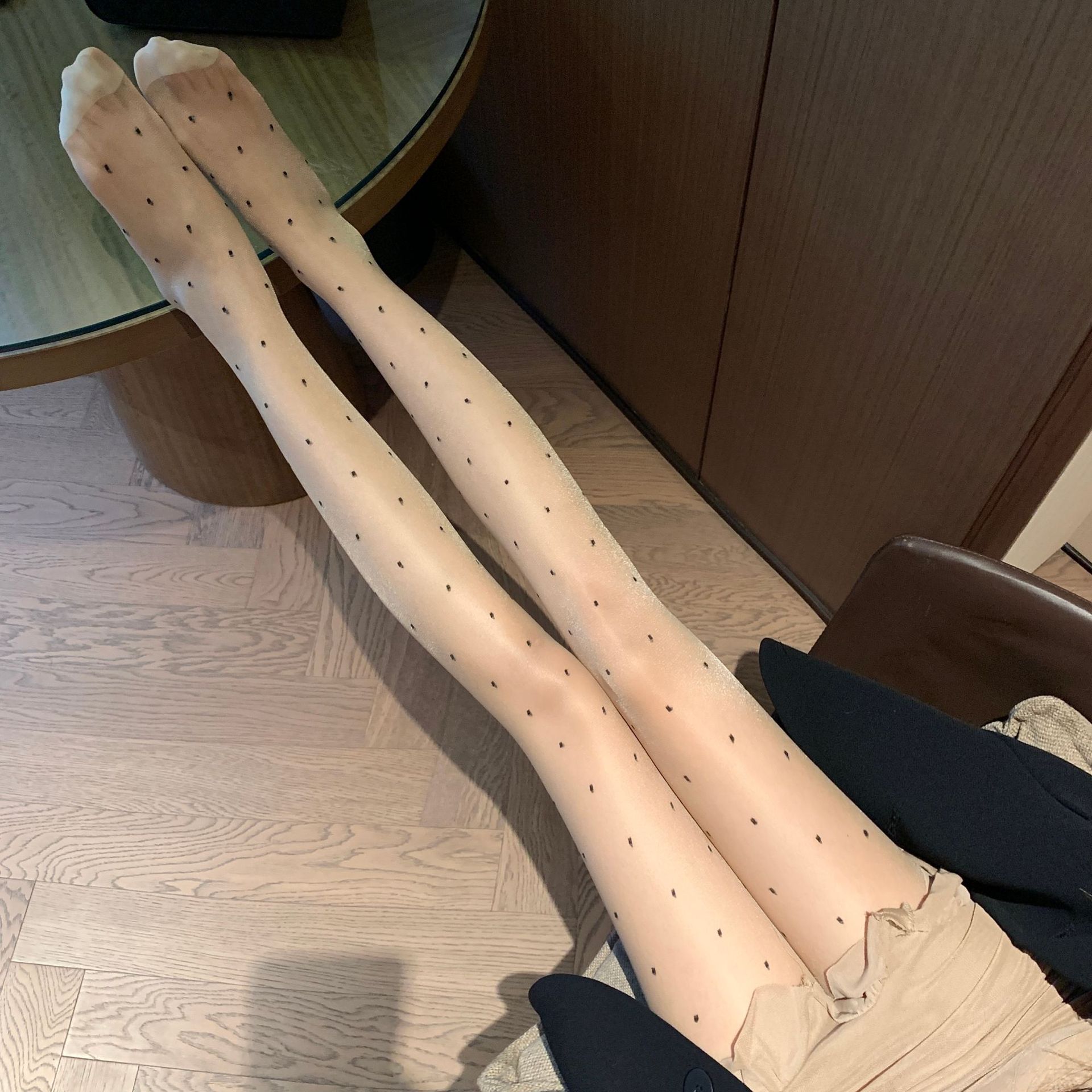 春夏新品肤色圆点包芯丝提花丝袜纯欲风薄款性感显瘦打底袜女士