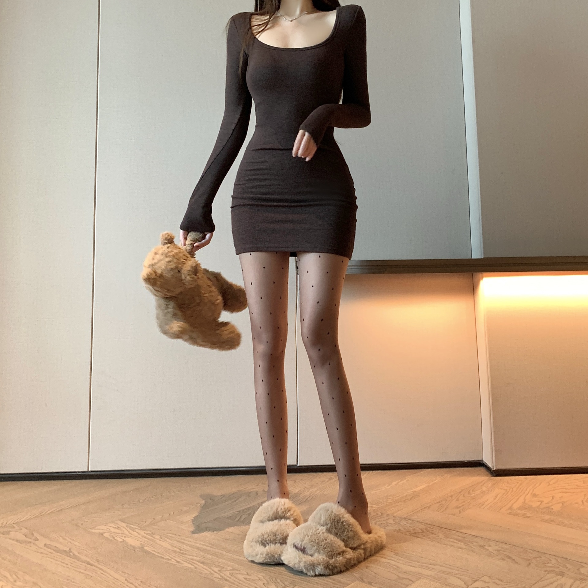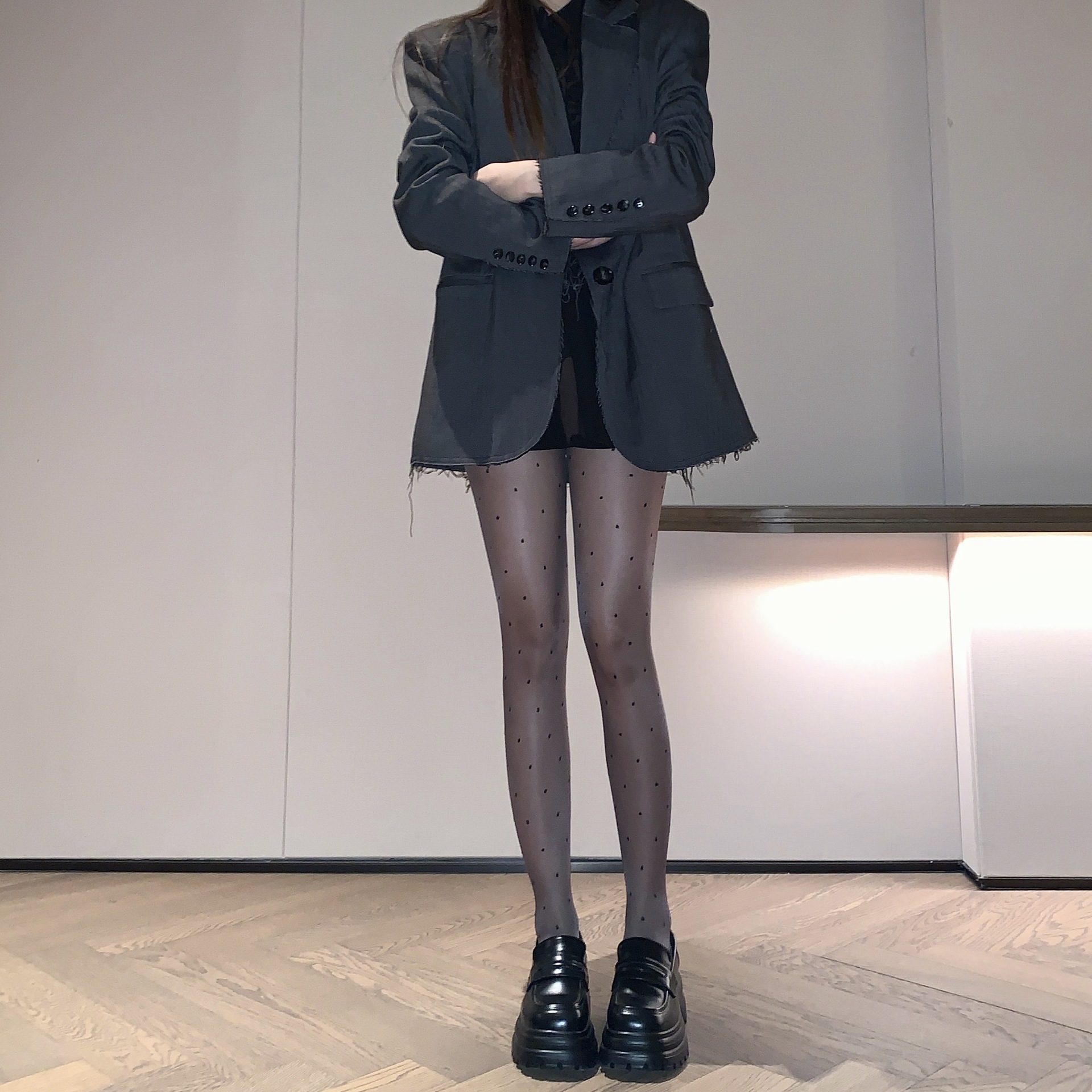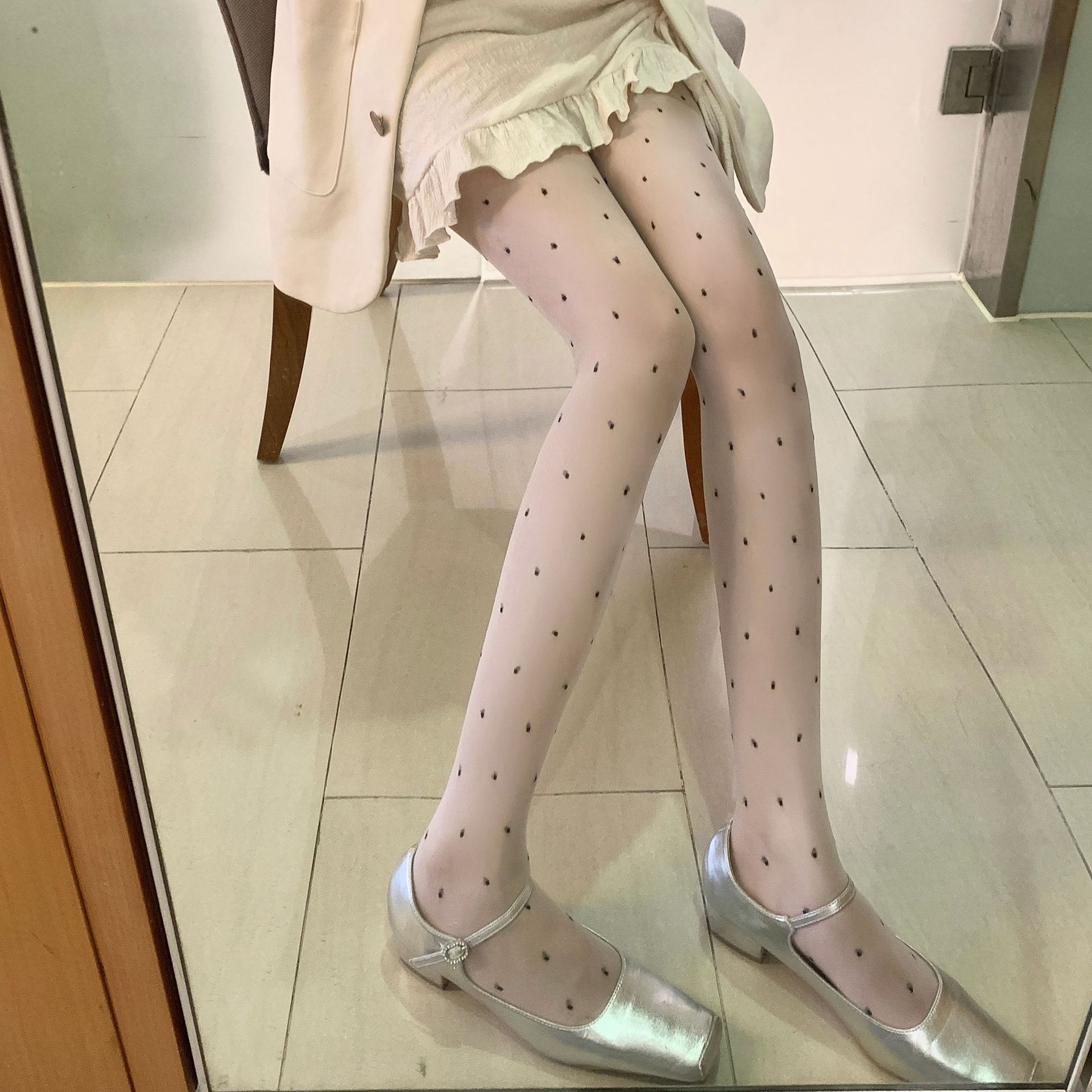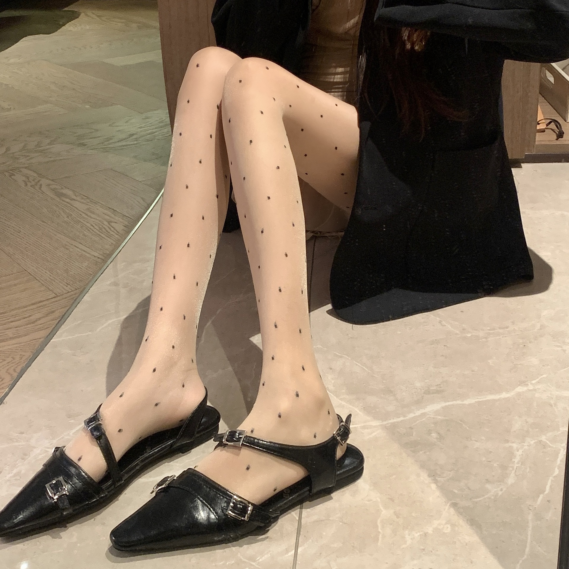 春夏新品肤色圆点包芯丝提花丝袜纯欲风薄款性感显瘦打底袜女士