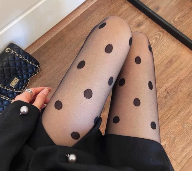 爱心丝袜女春夏薄款甜美蝴蝶结奶白色连裤袜洛丽塔圆波点jk黑丝