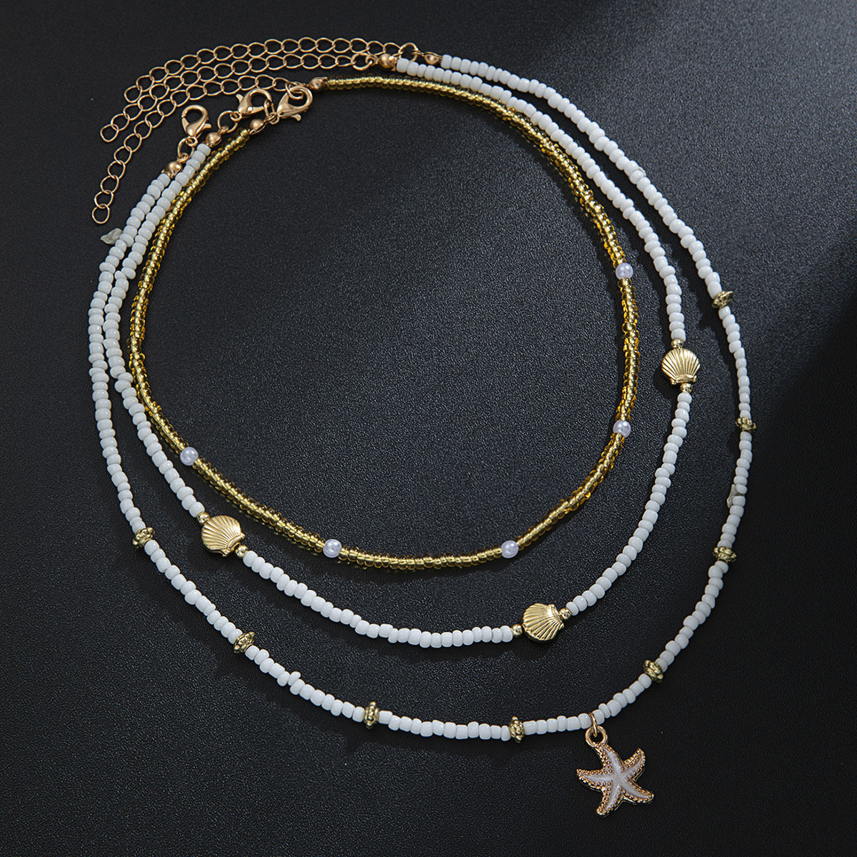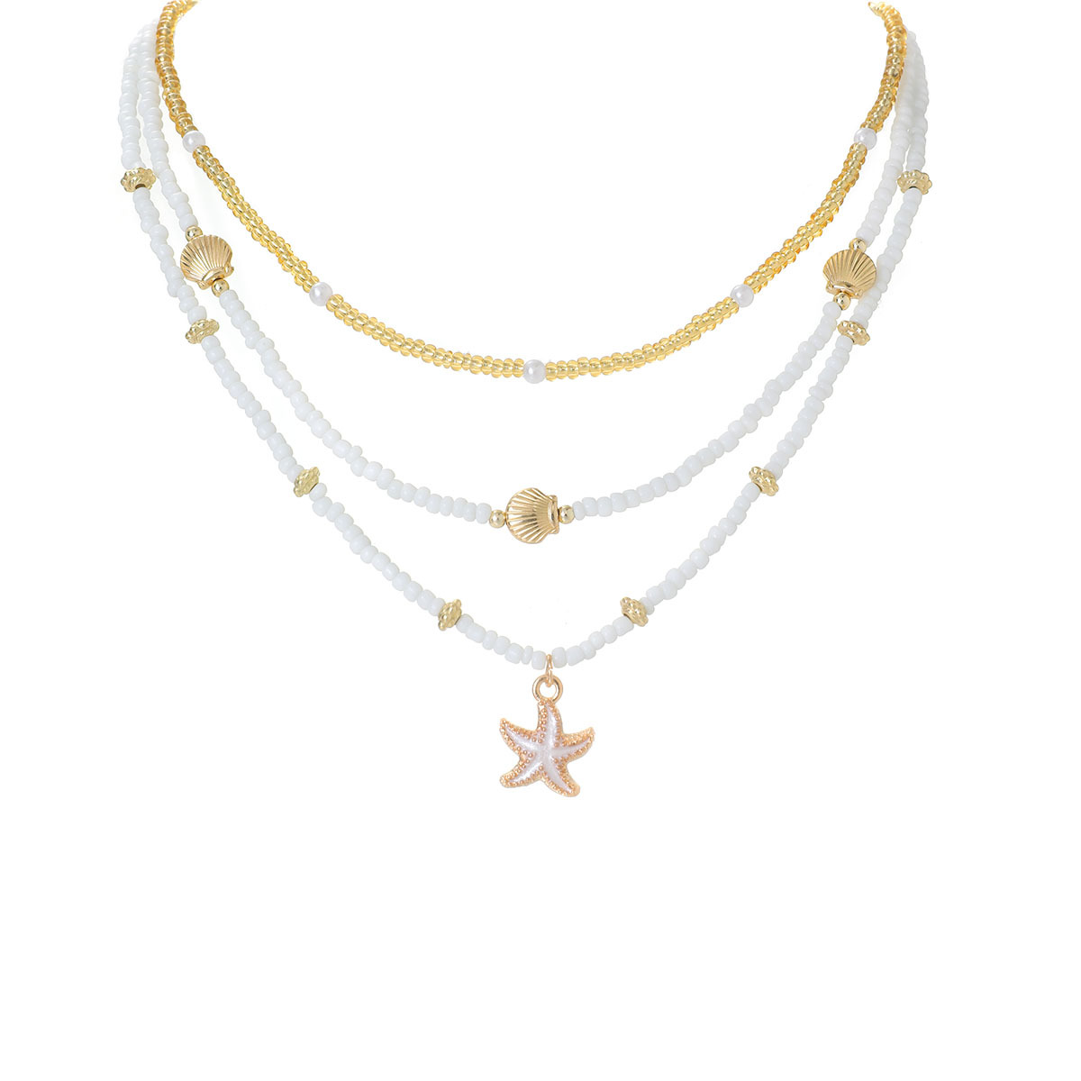 跨境波西米亚度假风合金海星扇贝珍珠米珠可调节女式三层项链