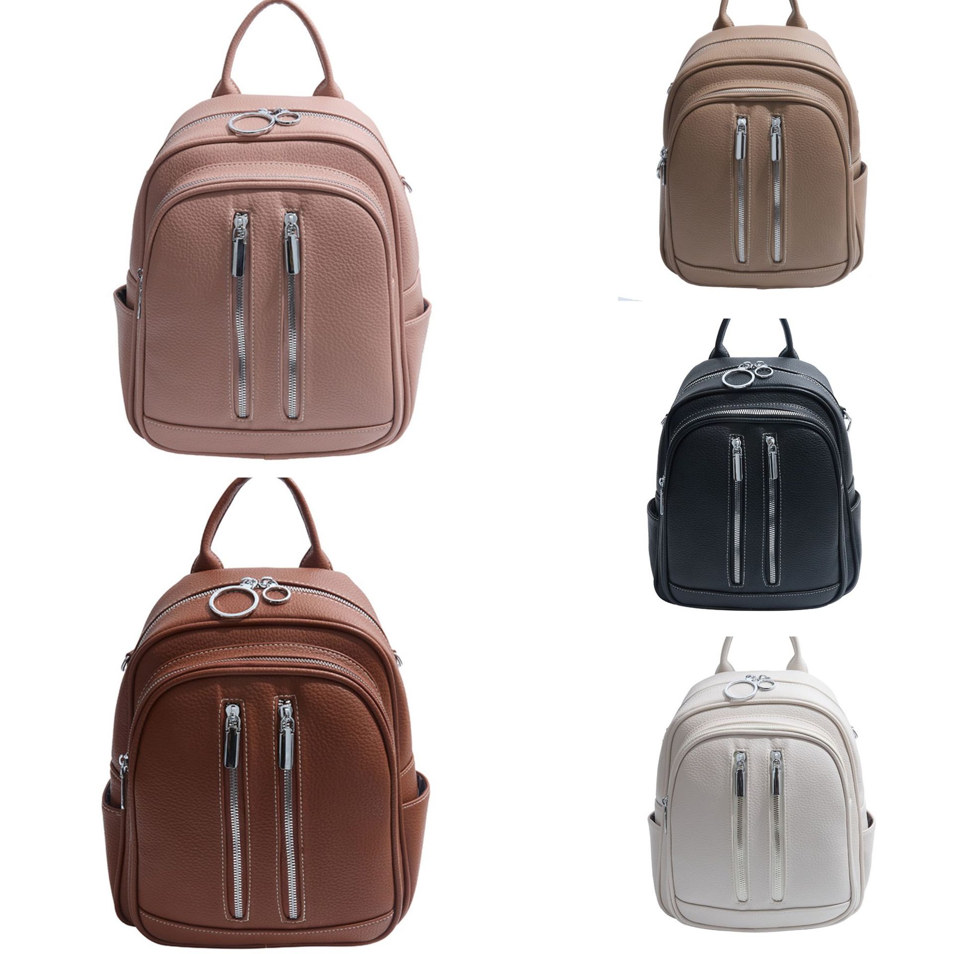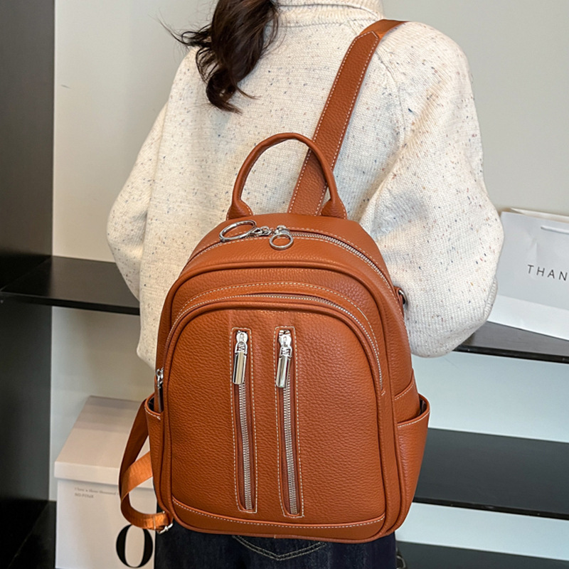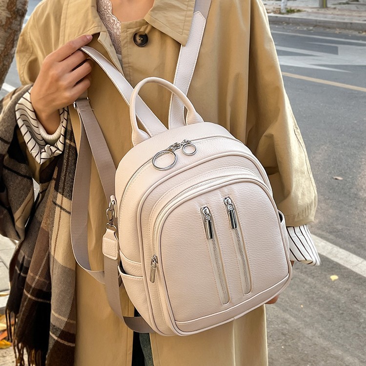 2025夏新款韩版潮女士双肩包女时尚纯色休闲软pu简约小背包女包包