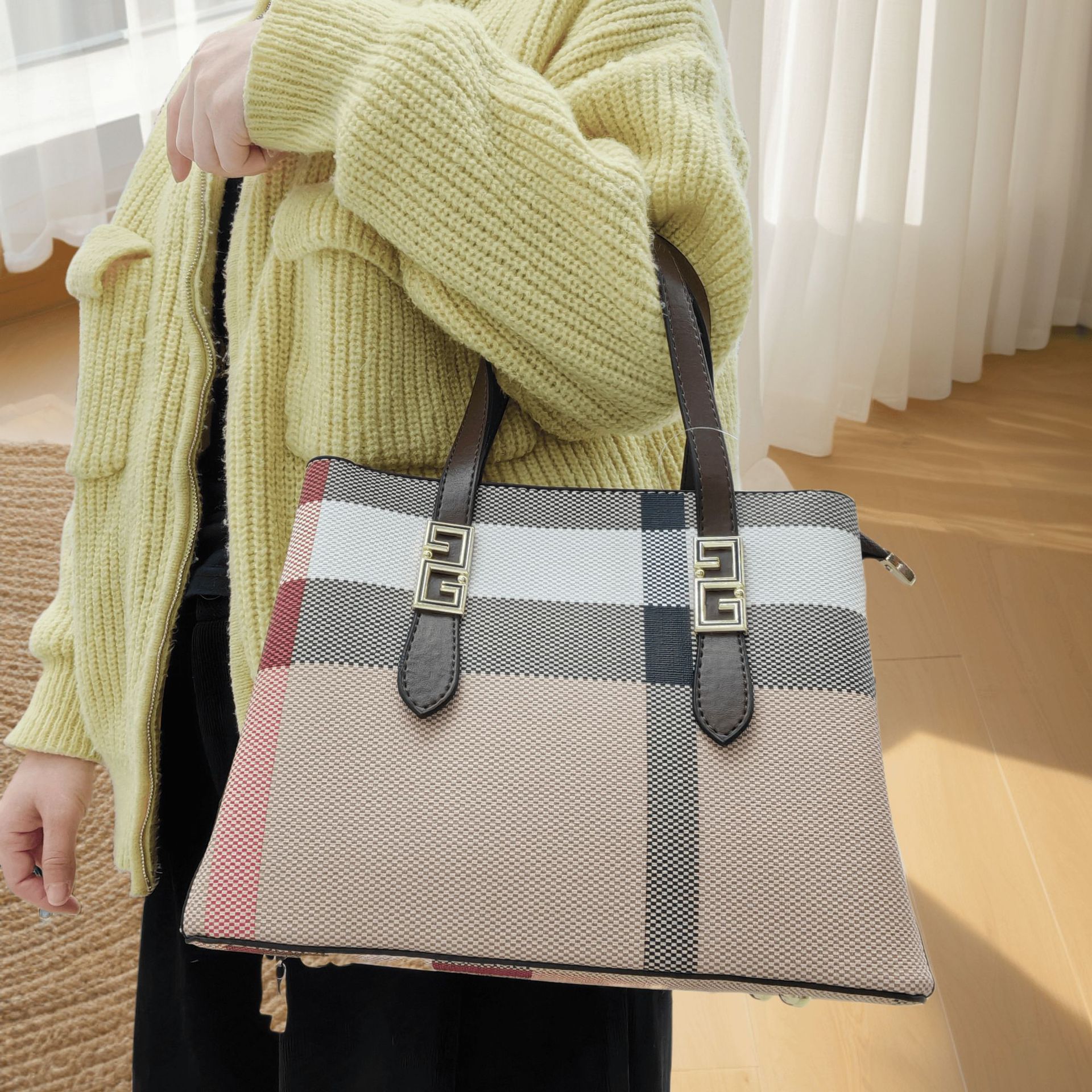 格子跨境女包2025新款大容量托特包时尚百搭公文包单肩斜挎手提包