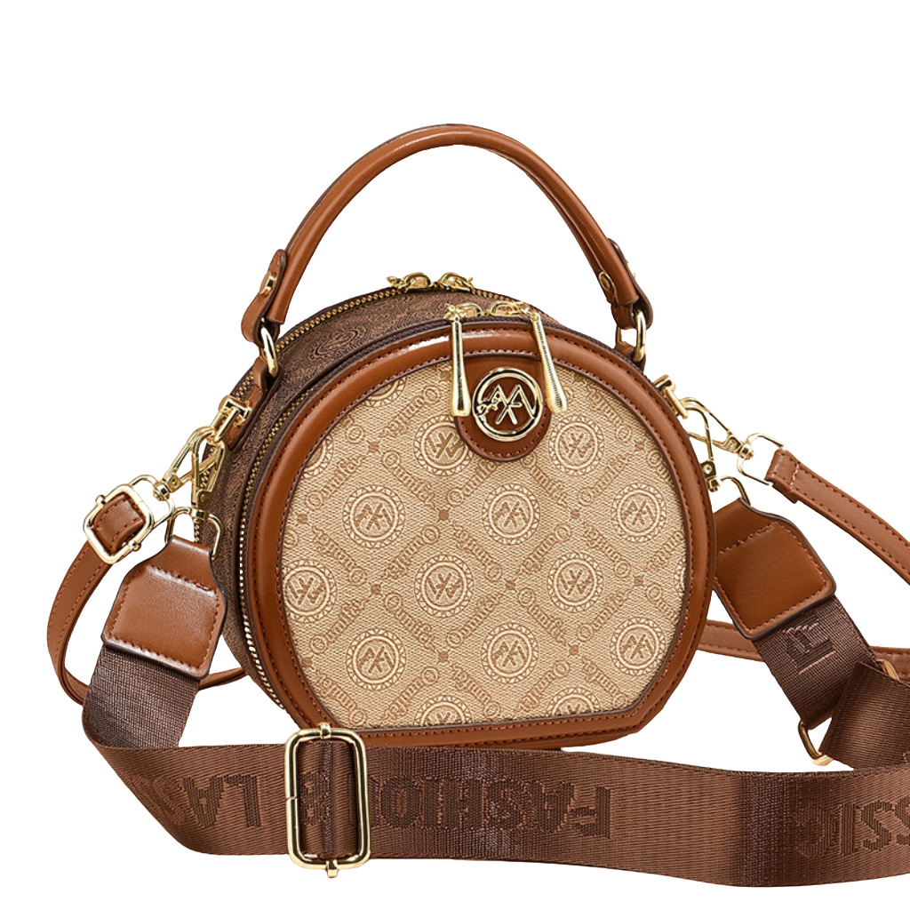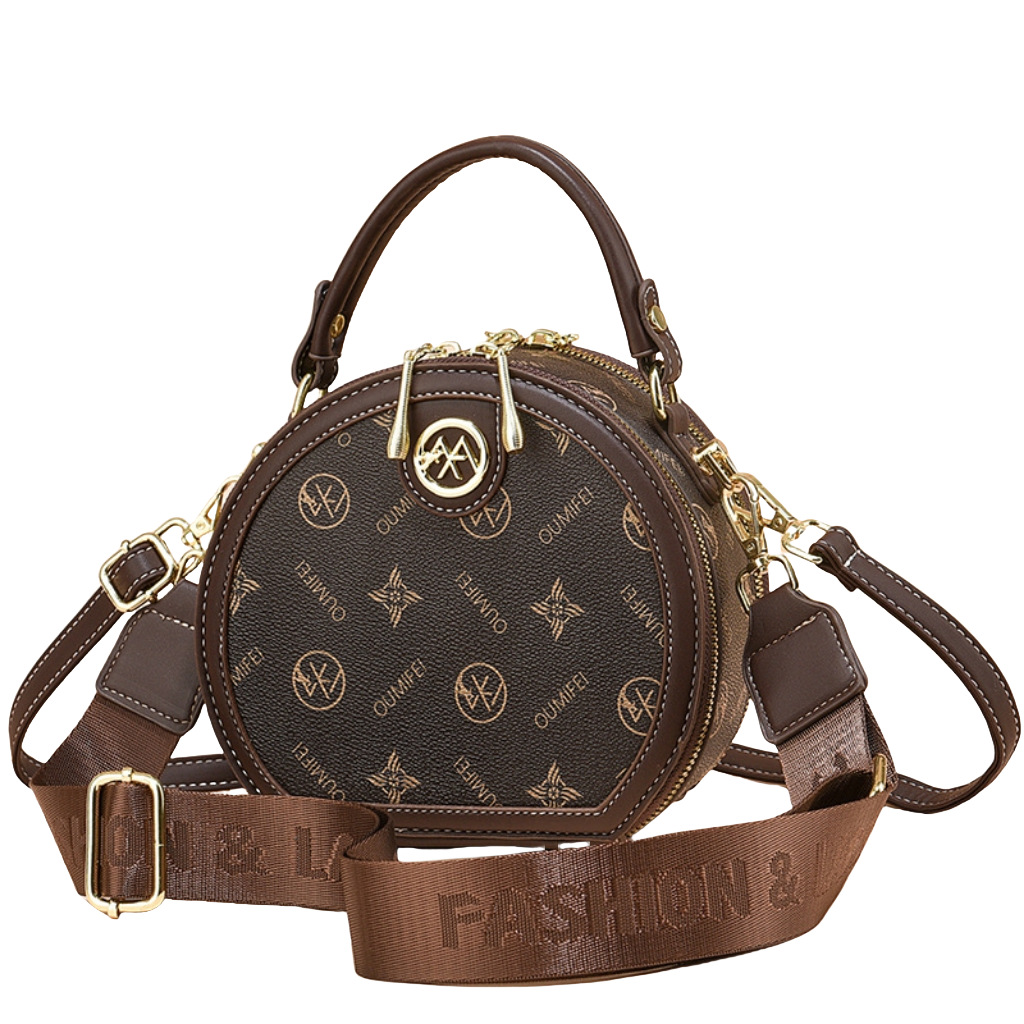 斜挎包包2025新款女小众设计复古印花厂货通百搭小圆包单肩手提包