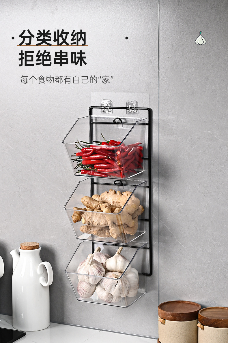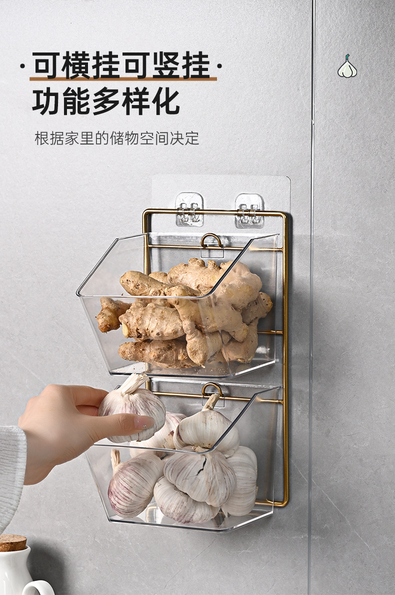 葱姜蒜收纳筐厨房放蒜头壁挂置物篮生姜大蒜收纳架挂墙食物盒神器