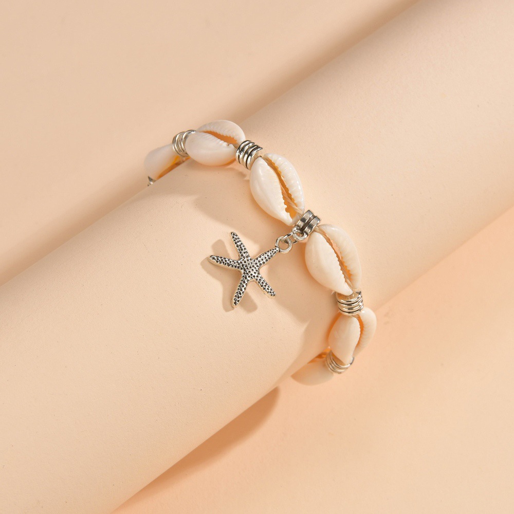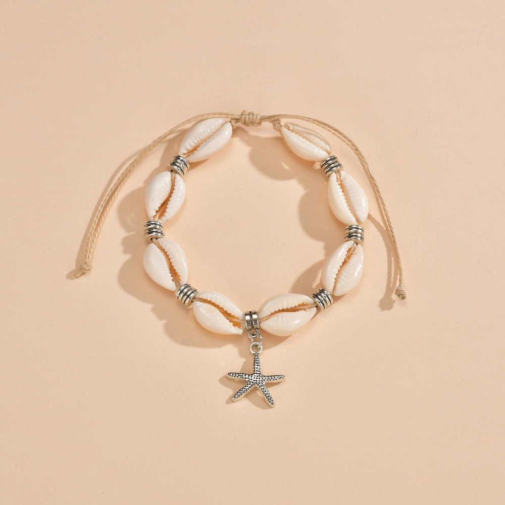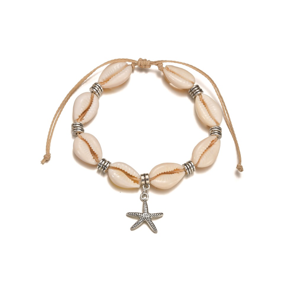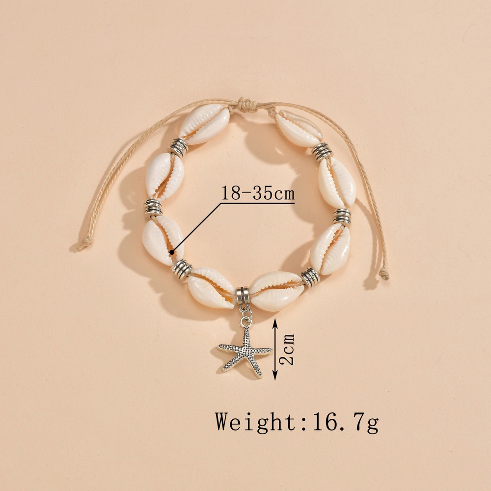 欧美个性跨境新品贝壳编织手链海星吊坠编织脚链可调节饰品批发