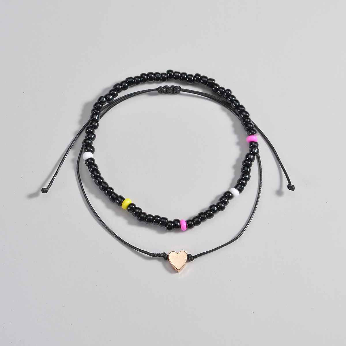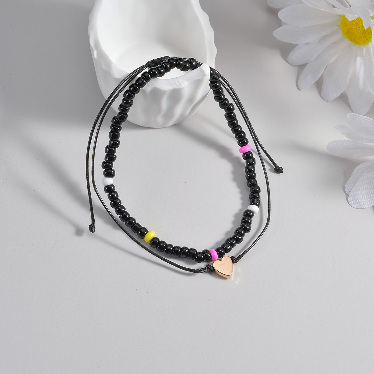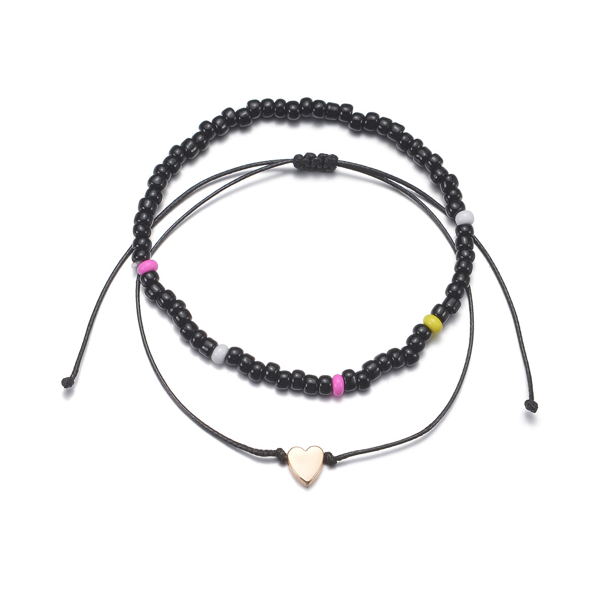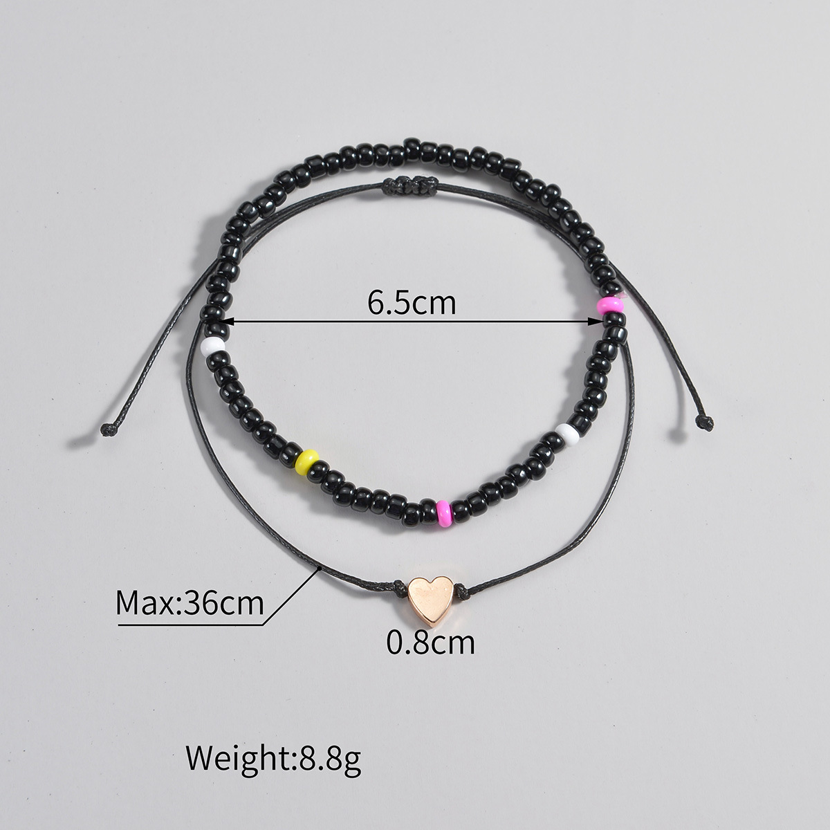 跨境时尚个性风沙滩风合金爱心米珠防水蜡线女士脚链2件套