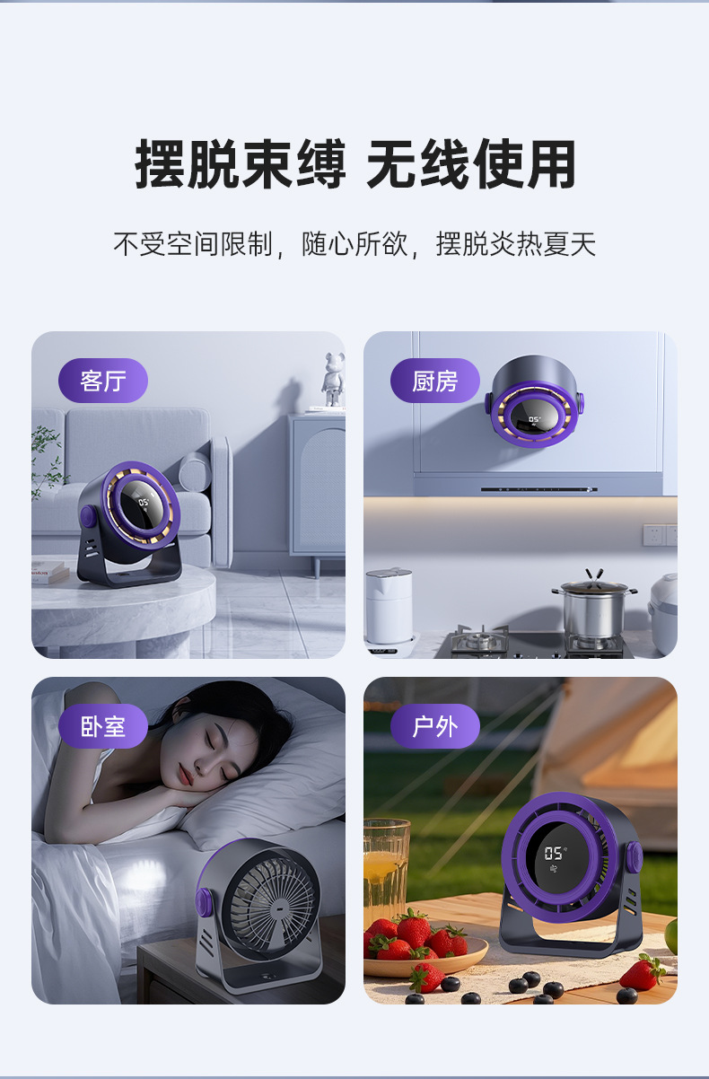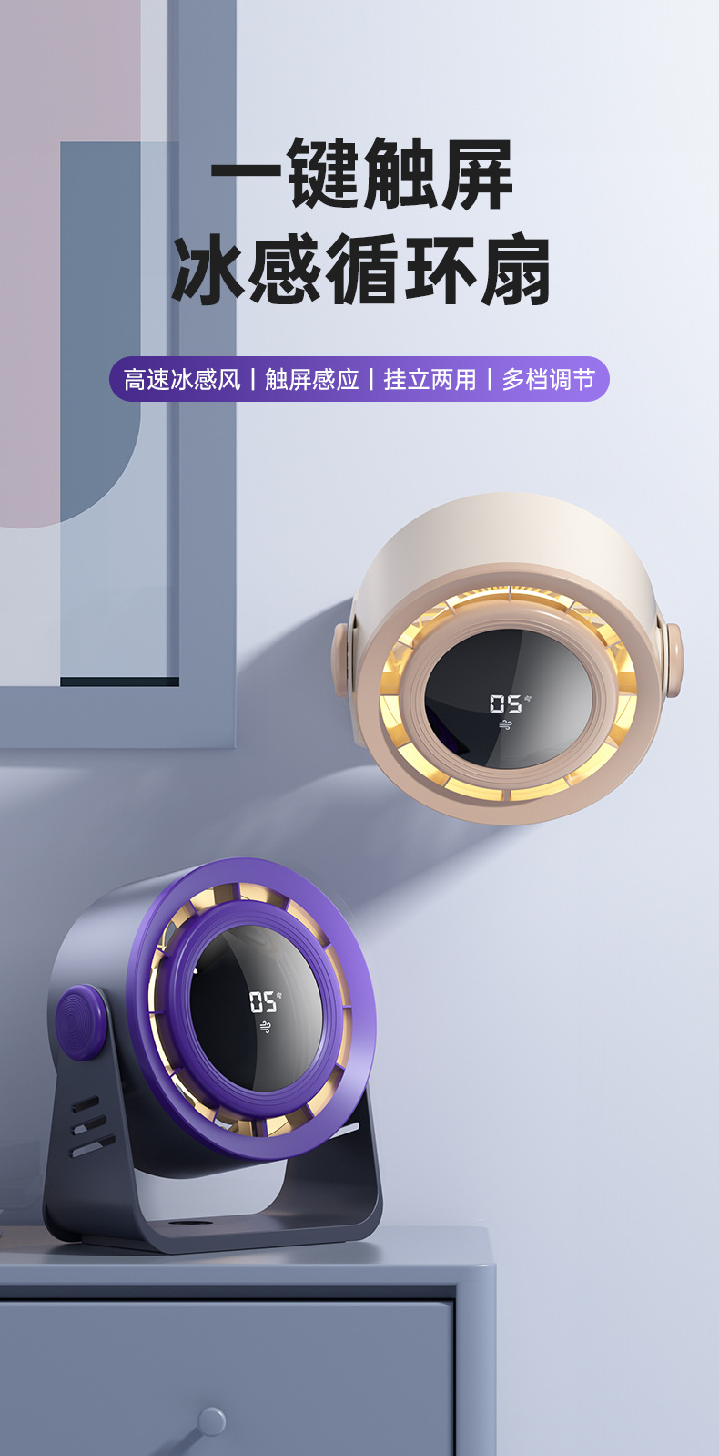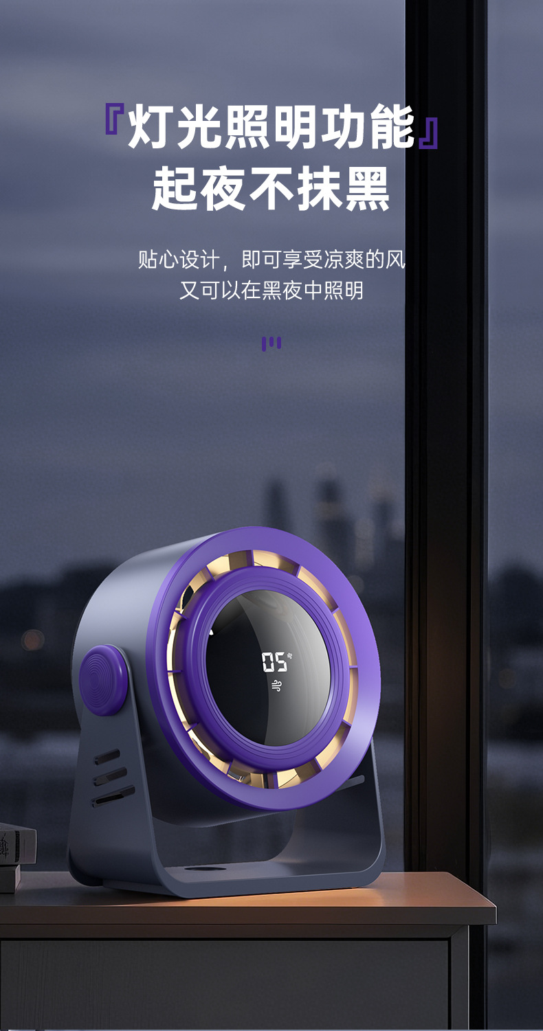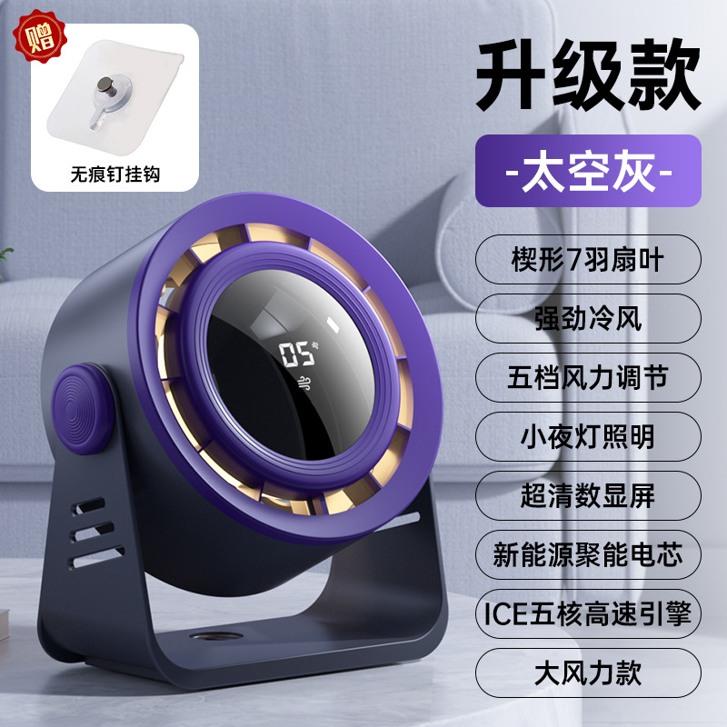 跨境爆款新款桌面循环数显风扇家用台式壁挂小风扇USB充电静音电