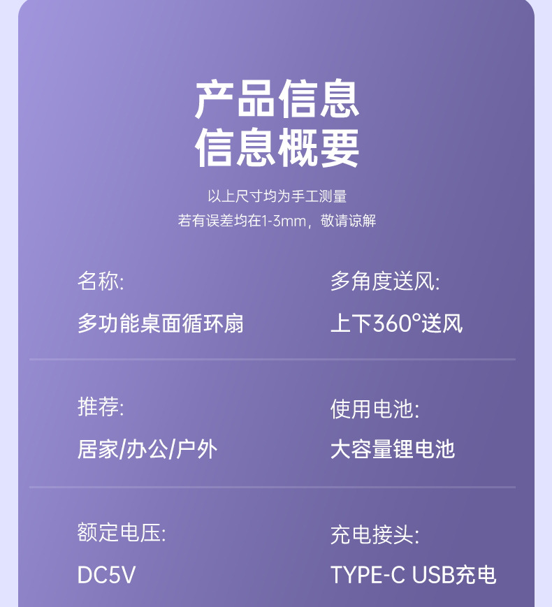跨境爆款源头厂家可充电学生宿舍家用便携式办公循环小风扇定时