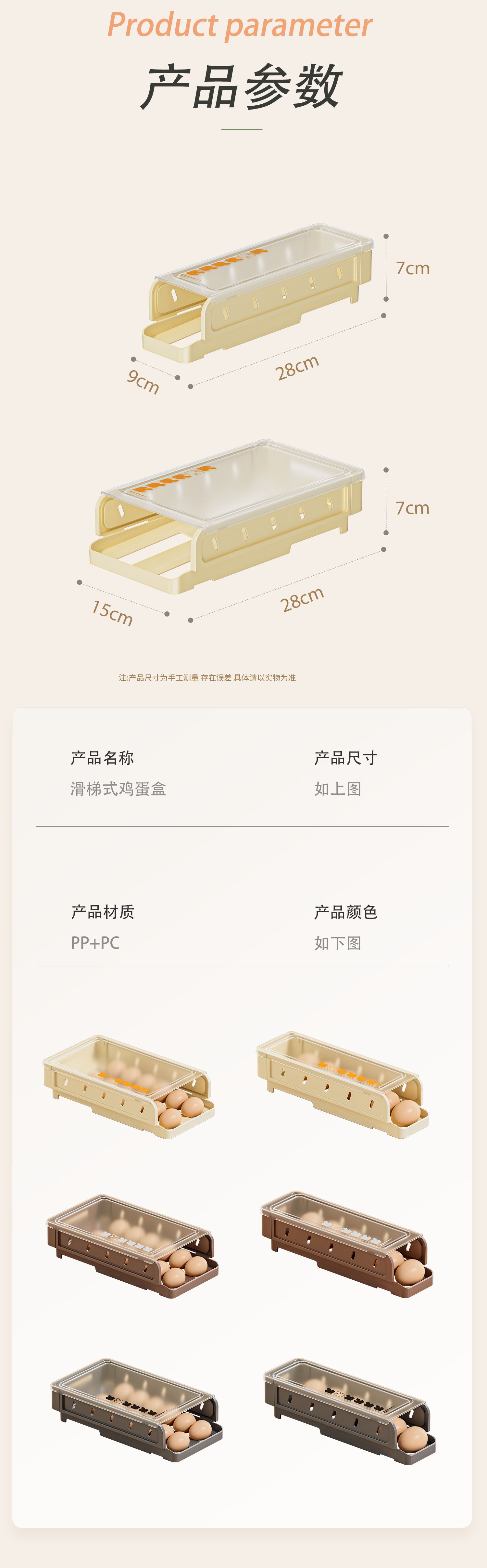 滑梯滚动鸡蛋收纳盒收纳家用冰箱侧门厨房取蛋Temu可代贴标签
