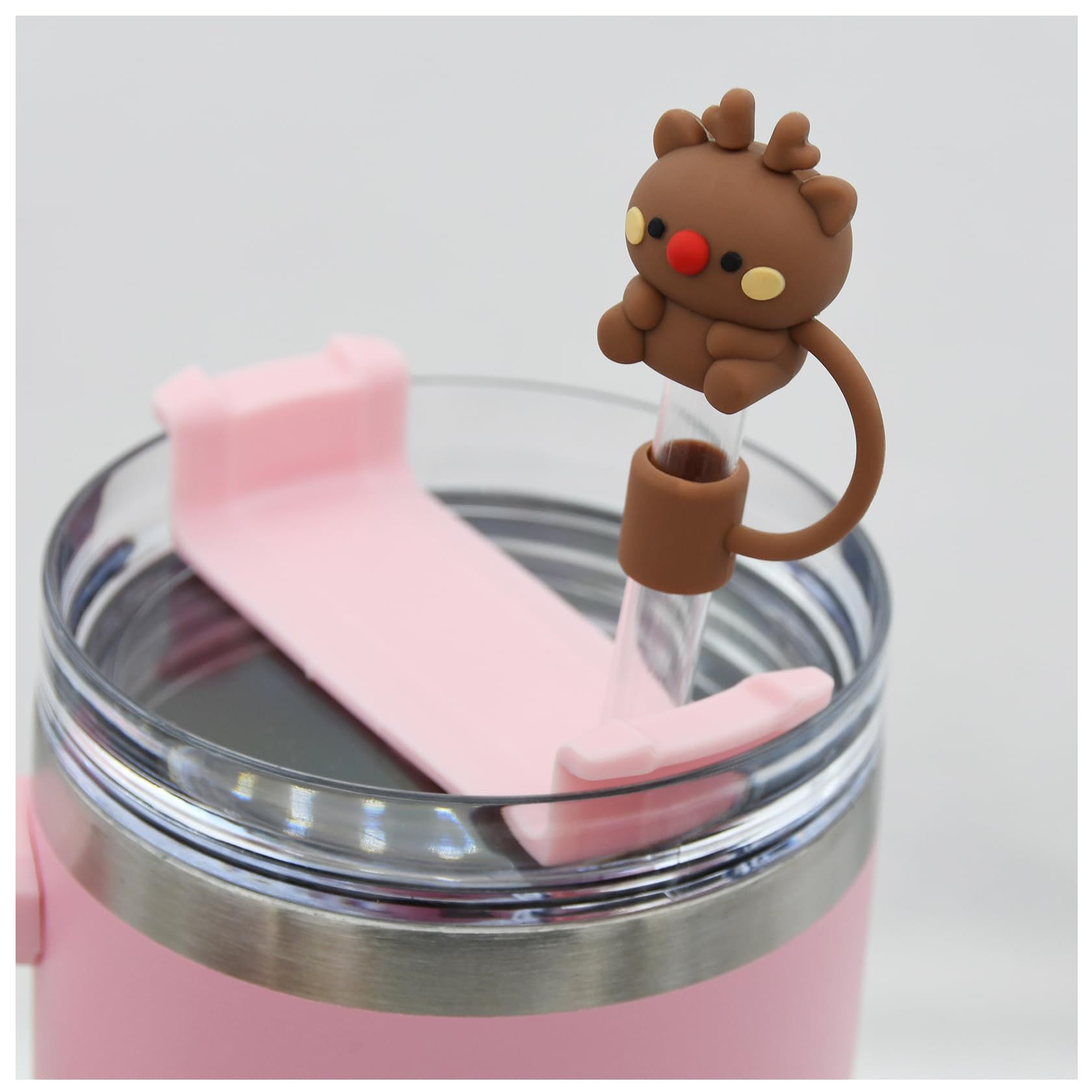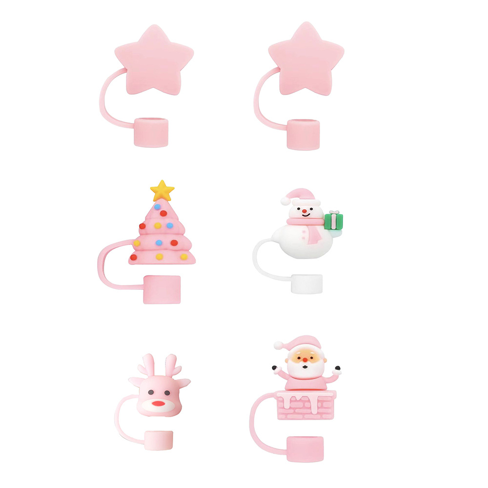 6pcs亚马逊圣诞吸管帽硅胶吸管套趣味卡通派对吸管装饰帽防尘盖