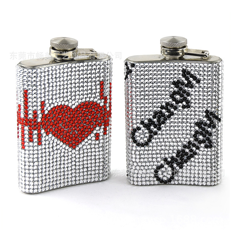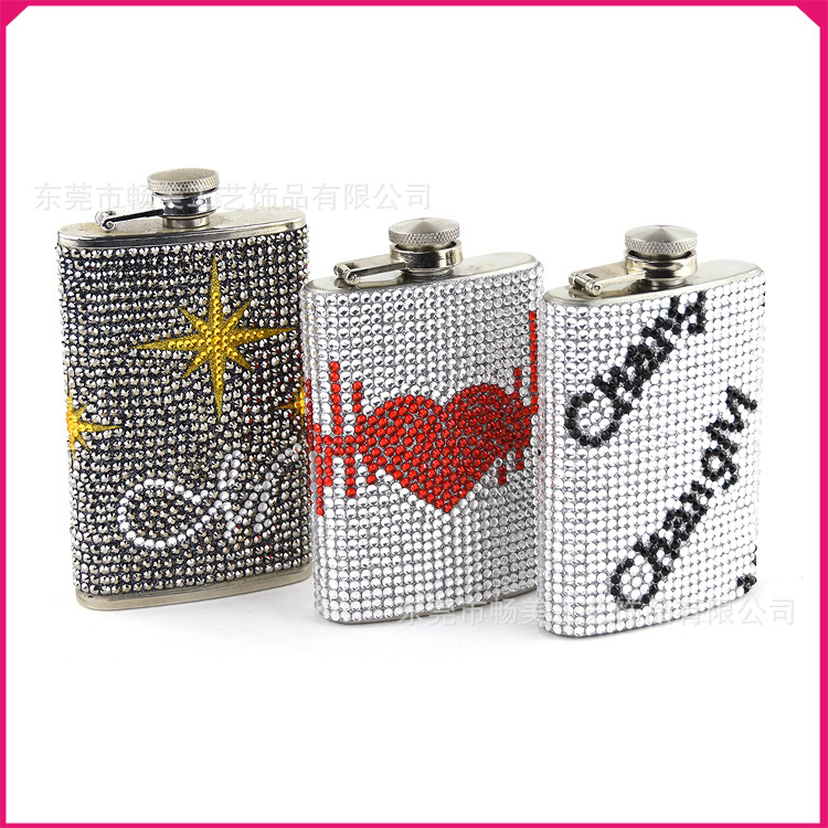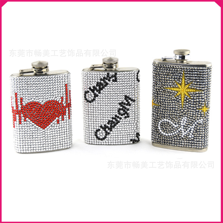 新款水钻不锈钢小酒壶 钻石个性俄罗斯随身白酒瓶6oz酒壶贴钻加工