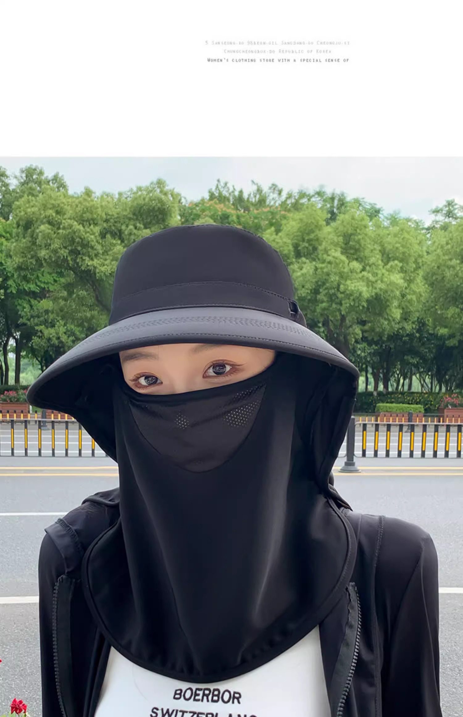全方位防晒帽透气遮脸面罩护颈一体太阳帽防紫外线户外遮阳帽女夏