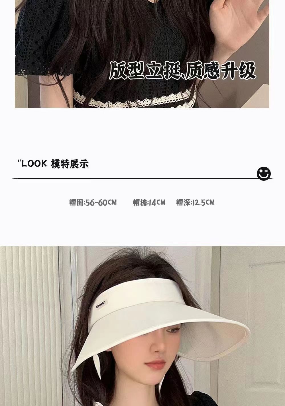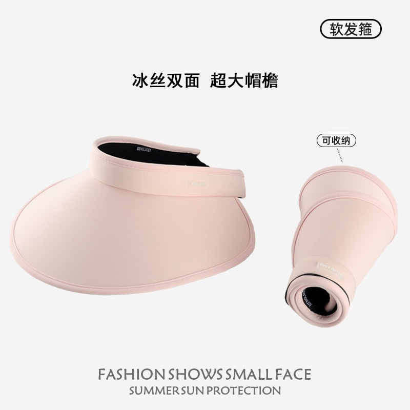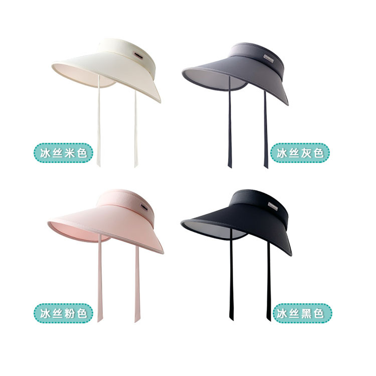 夏季骑车遮阳帽时尚绑带UV太阳帽无顶大檐透气户外冰丝防晒空顶帽