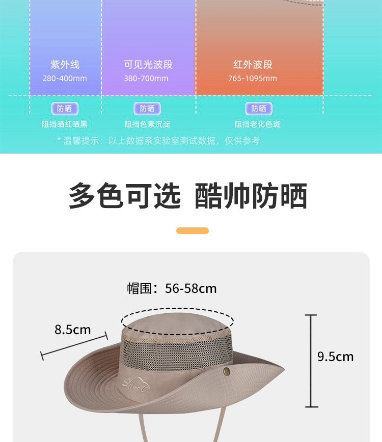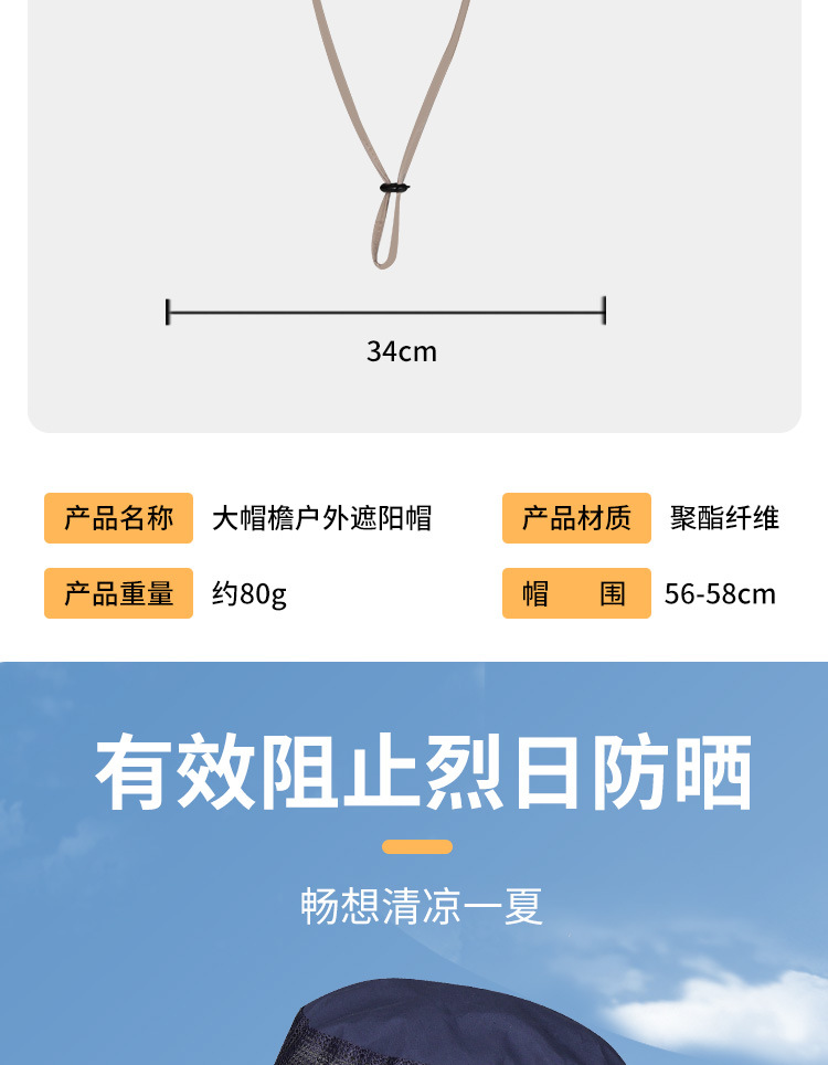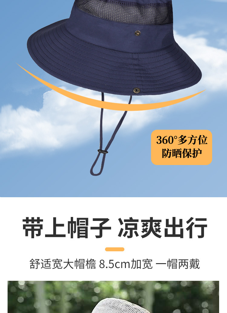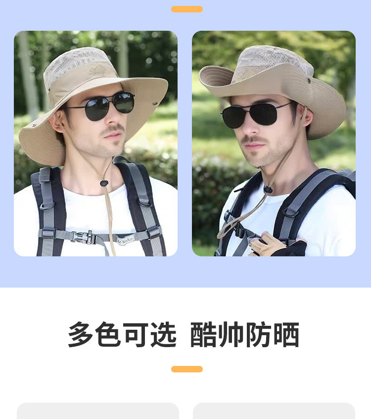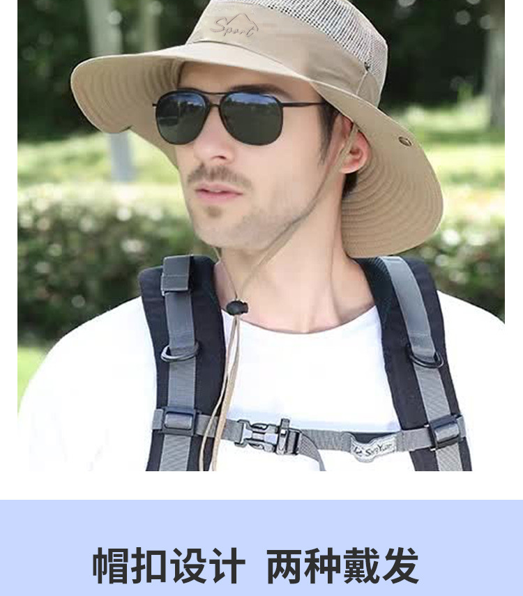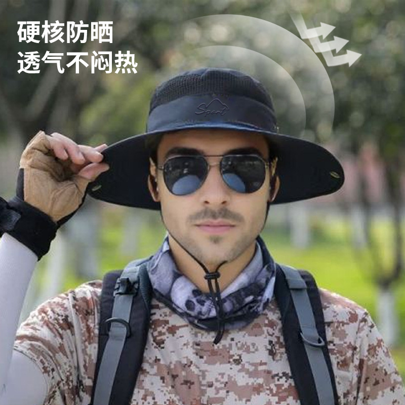 男士新款便携渔夫帽 户外钓鱼大檐遮阳帽 旅游户外登山防晒太阳帽