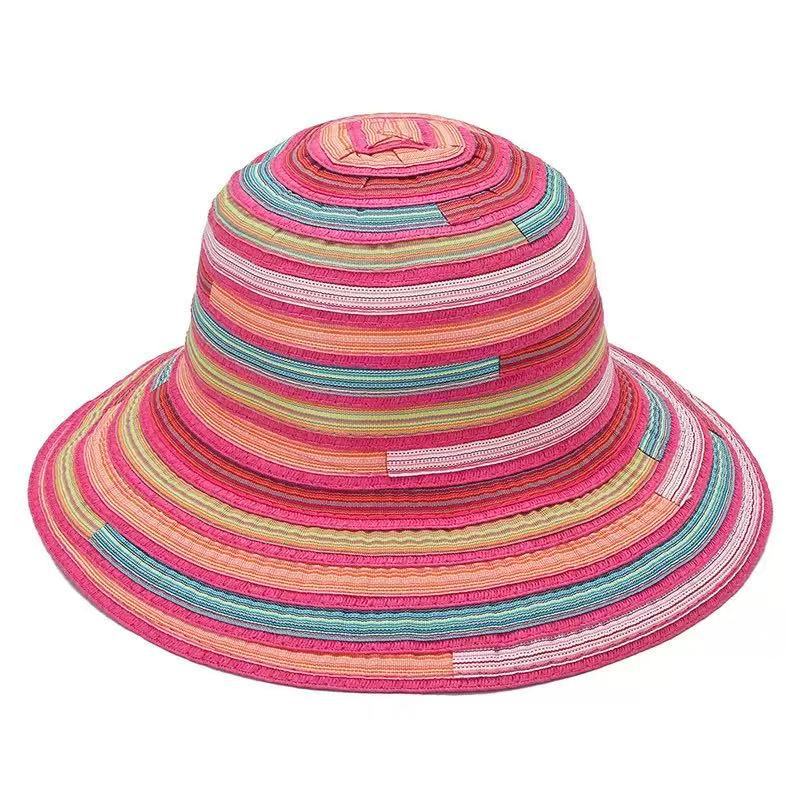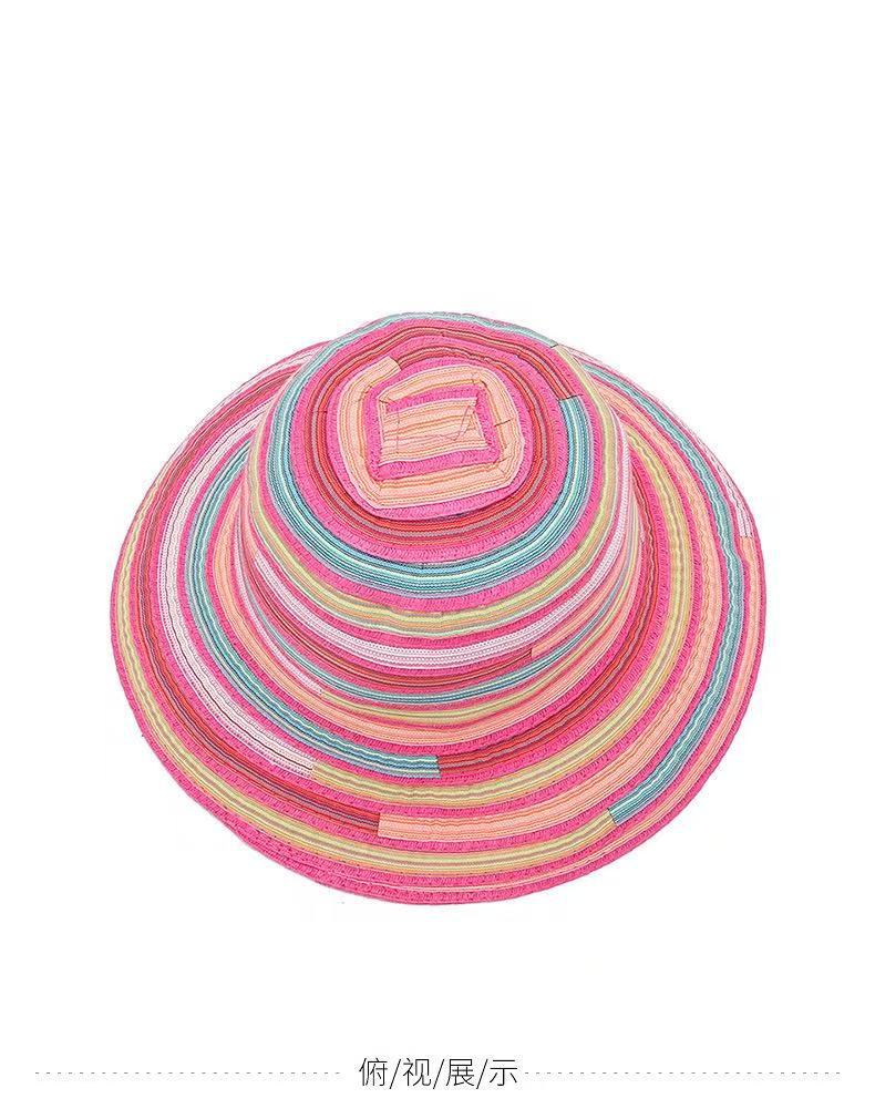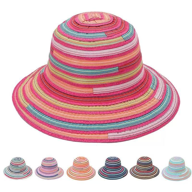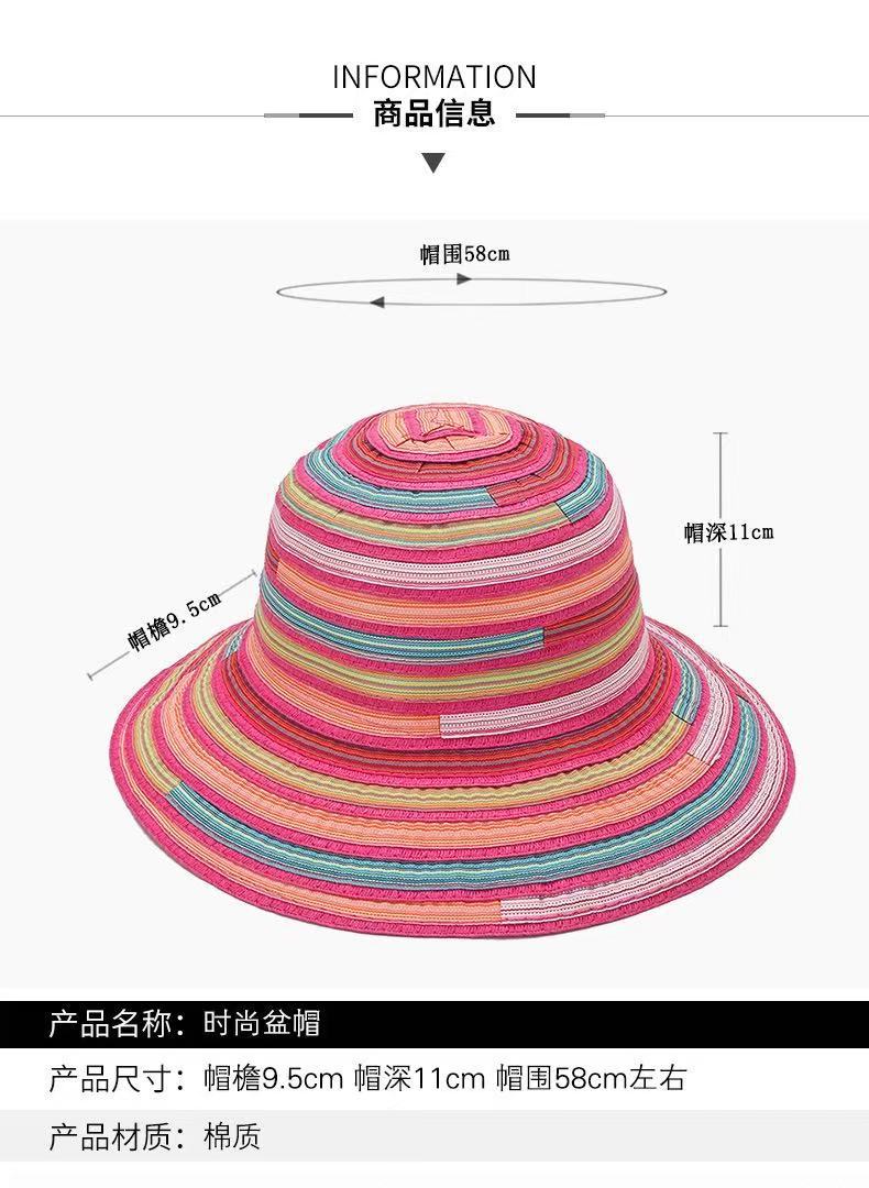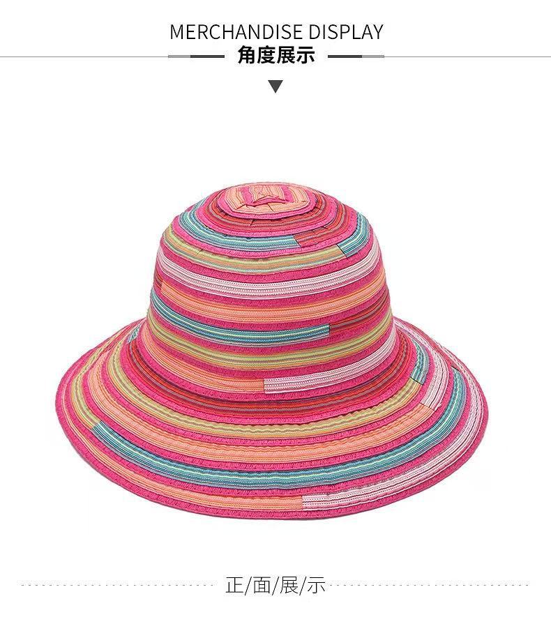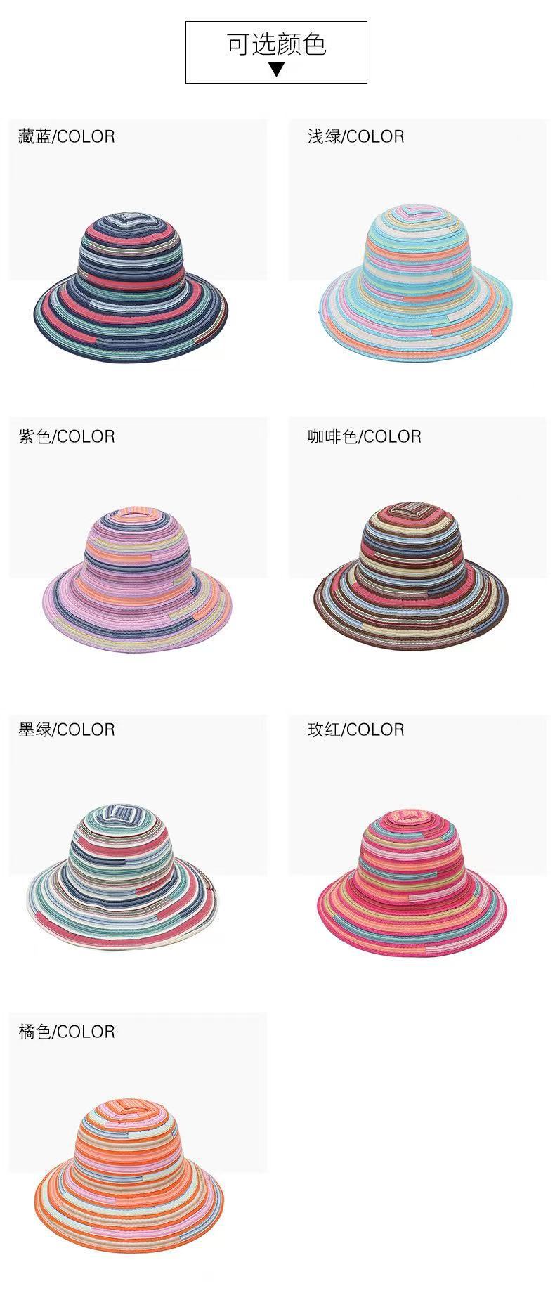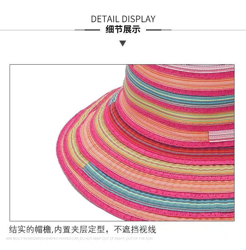 可折叠条纹防晒遮阳帽批发圆顶彩条太阳帽夏季沙滩度假田园渔夫帽
