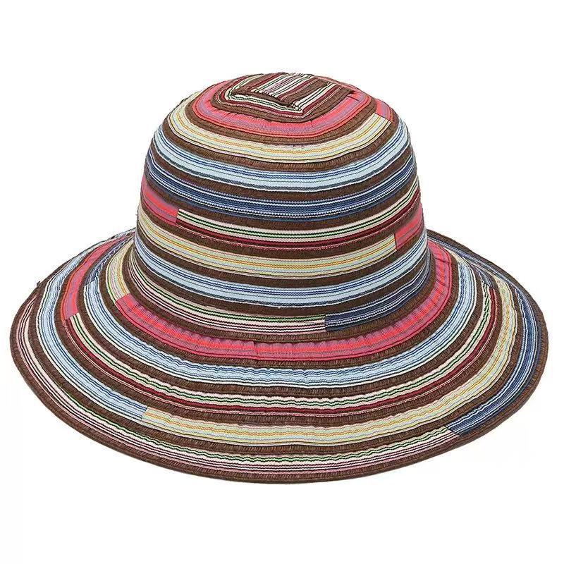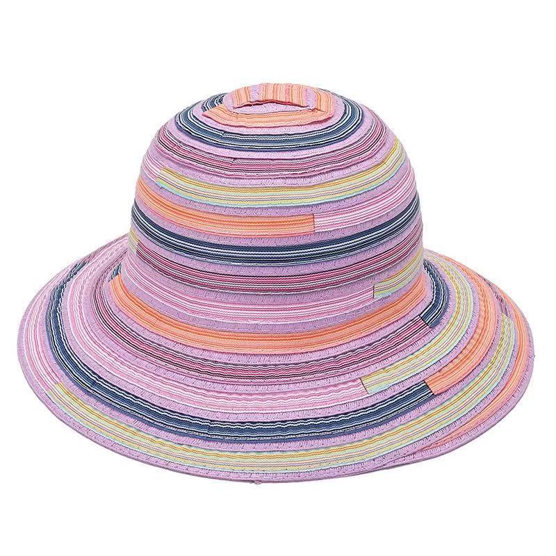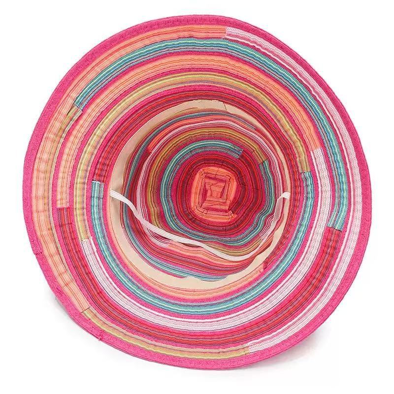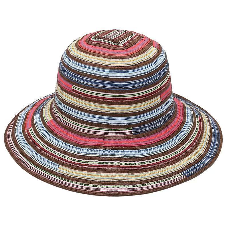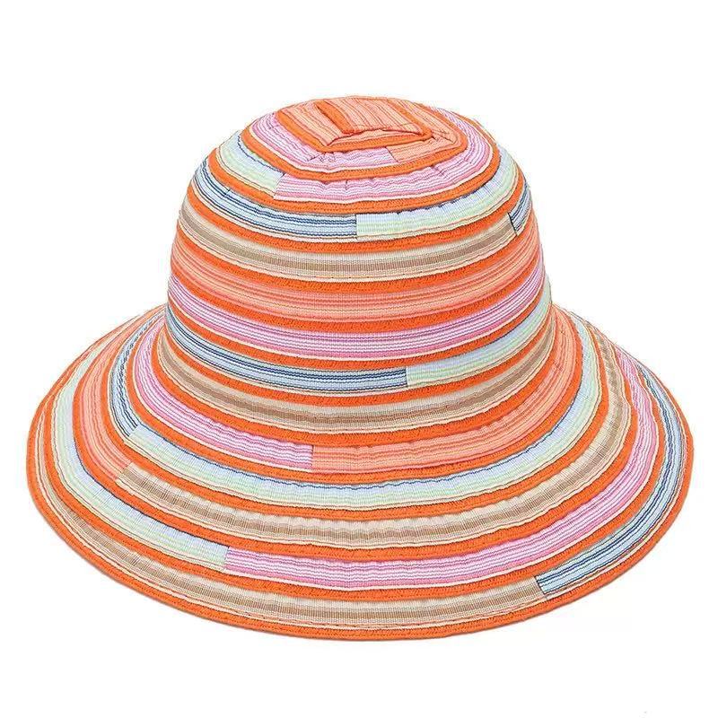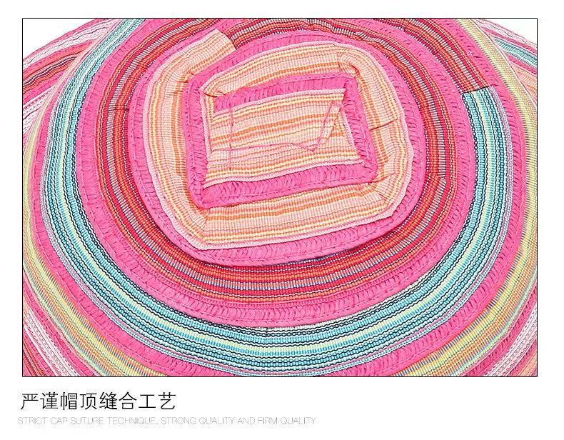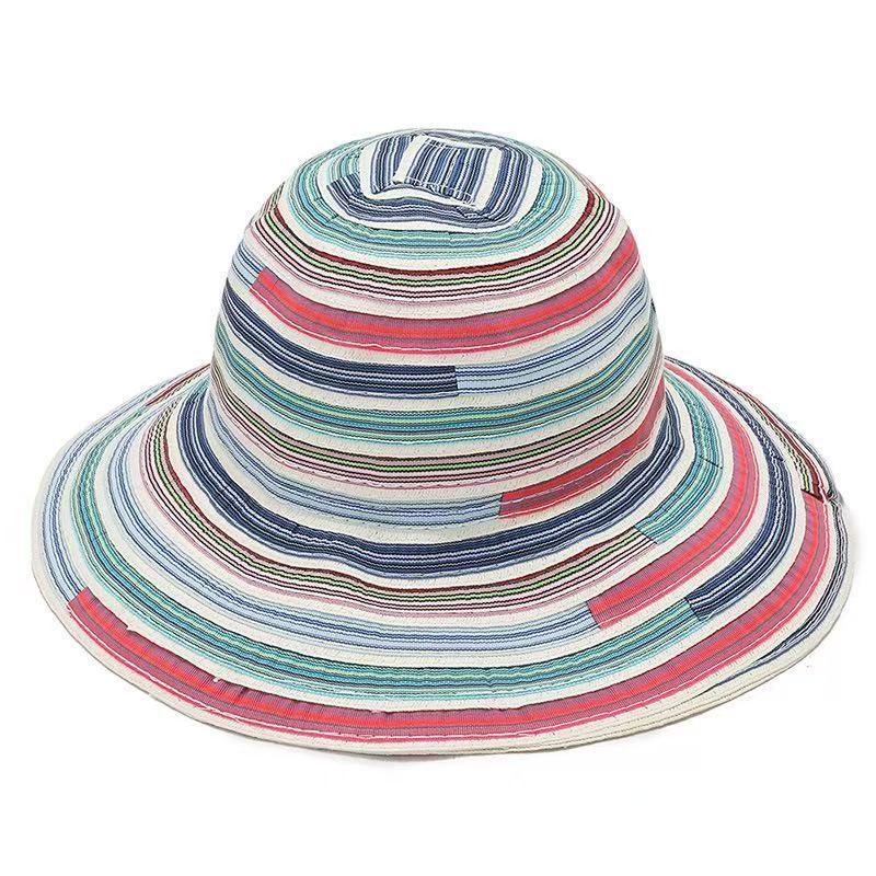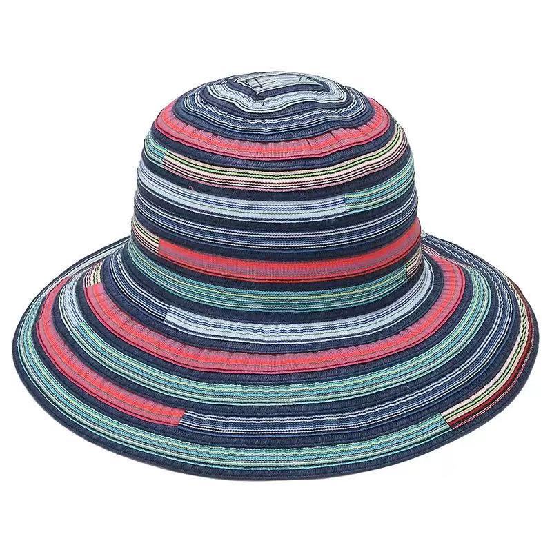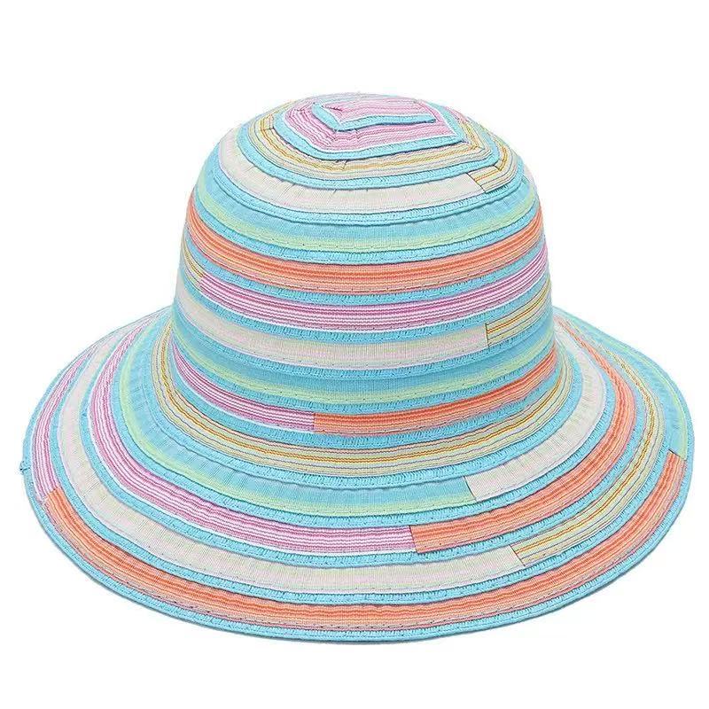 可折叠条纹防晒遮阳帽批发圆顶彩条太阳帽夏季沙滩度假田园渔夫帽