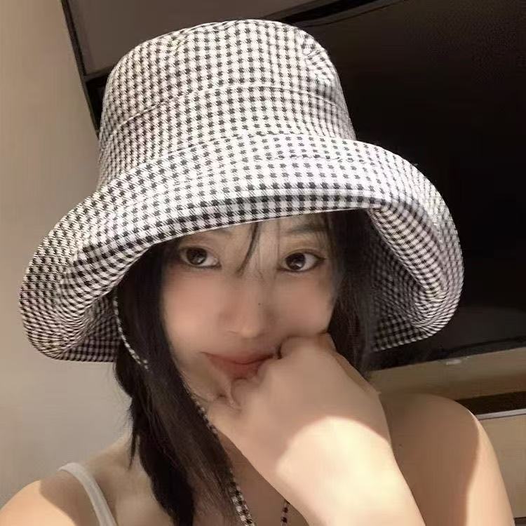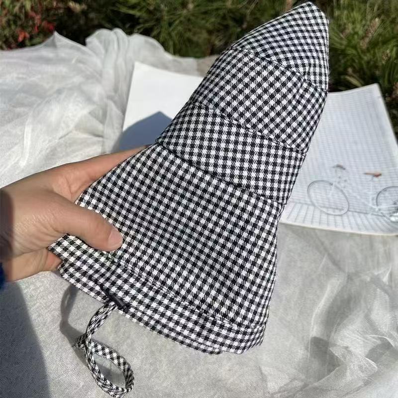 千鸟格渔夫帽女韩版夏季出游防紫外线户外大檐遮阳帽遮脸沙滩帽