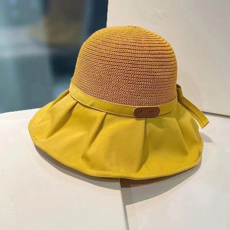 大帽檐遮脸渔夫帽女夏季韩版百搭出游遮阳帽防晒薄款蝴蝶结太阳帽