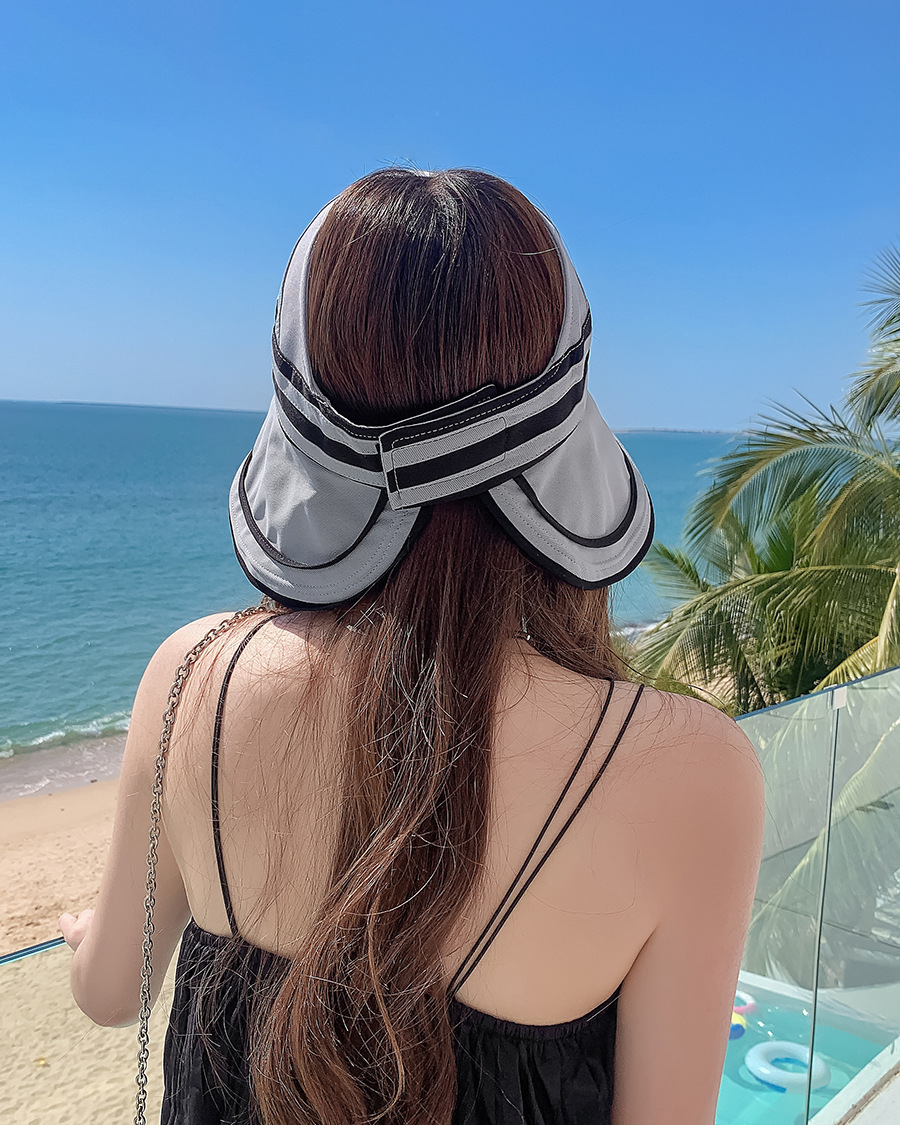 大帽檐防晒帽女夏季遮脸防紫外线披肩太阳帽户外骑车百搭马尾盆帽