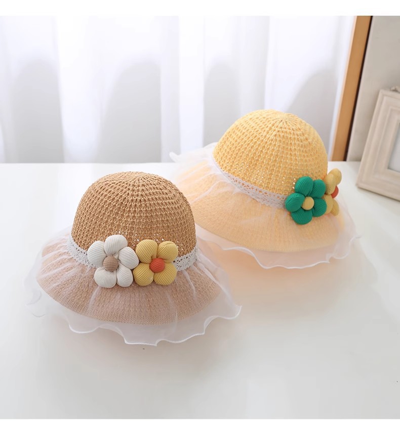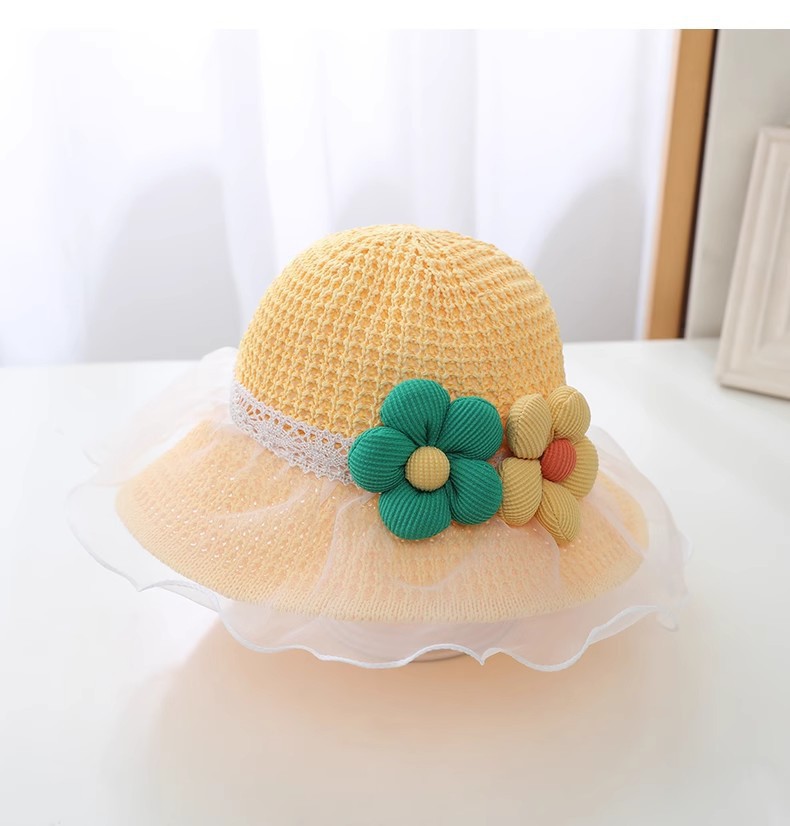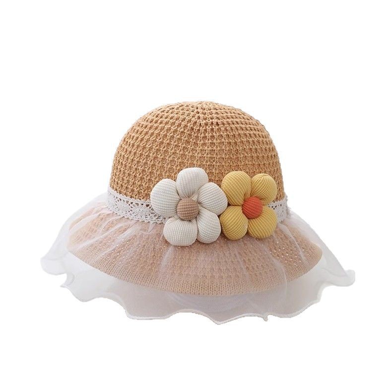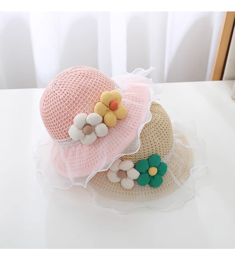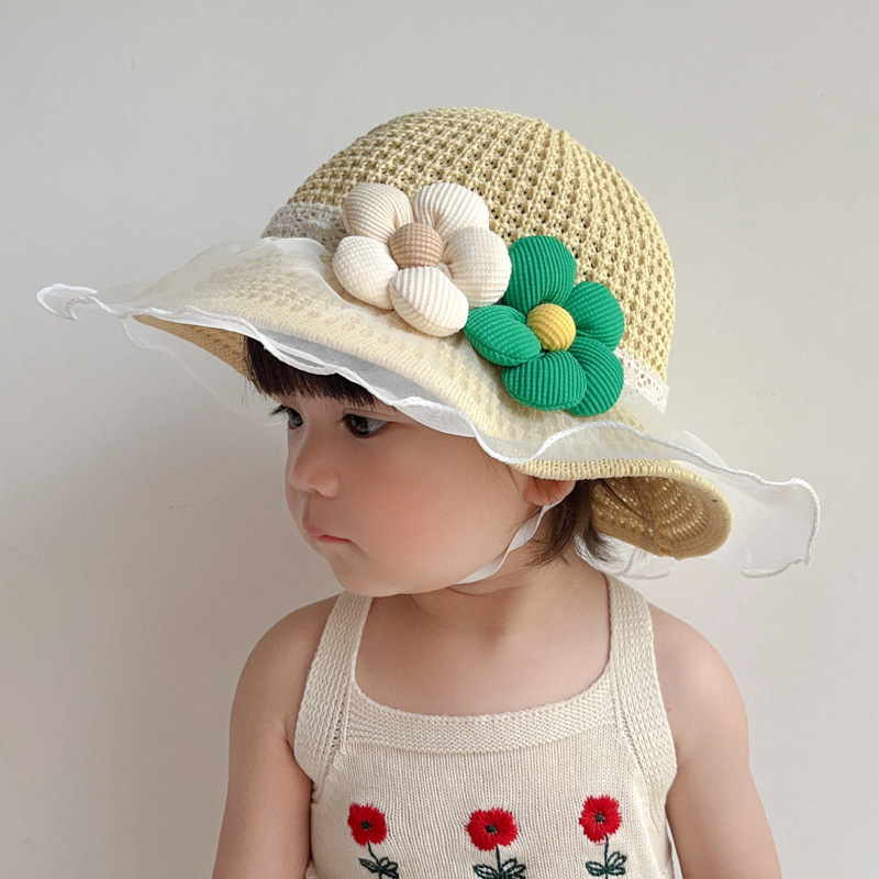 两朵大花定型儿童防晒帽夏女孩遮阳太阳帽夏款户外出游女宝宝草帽