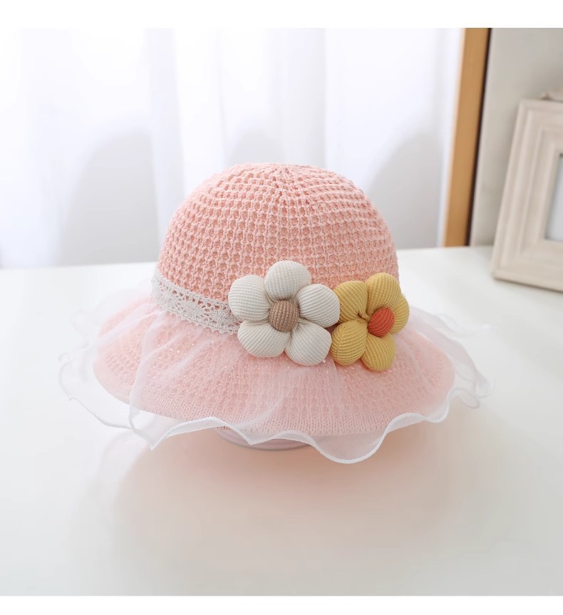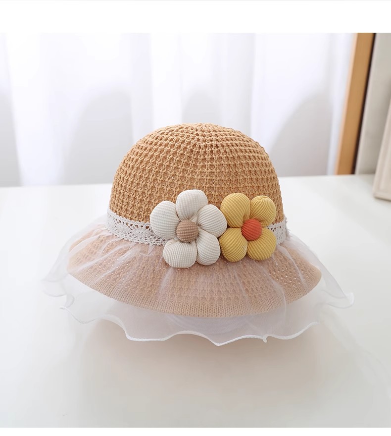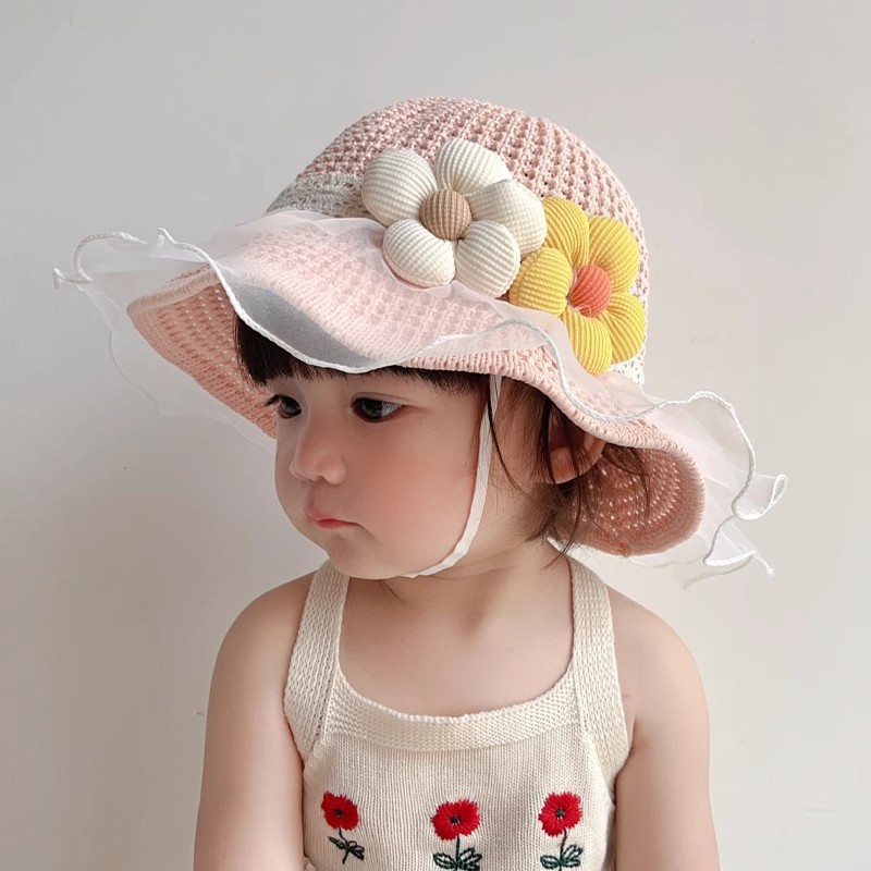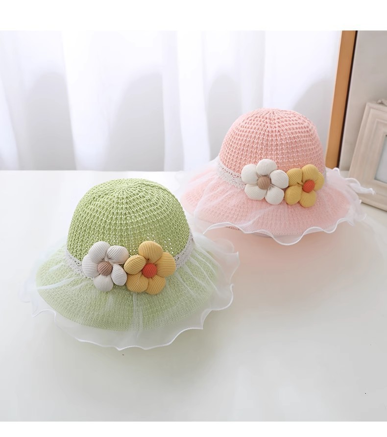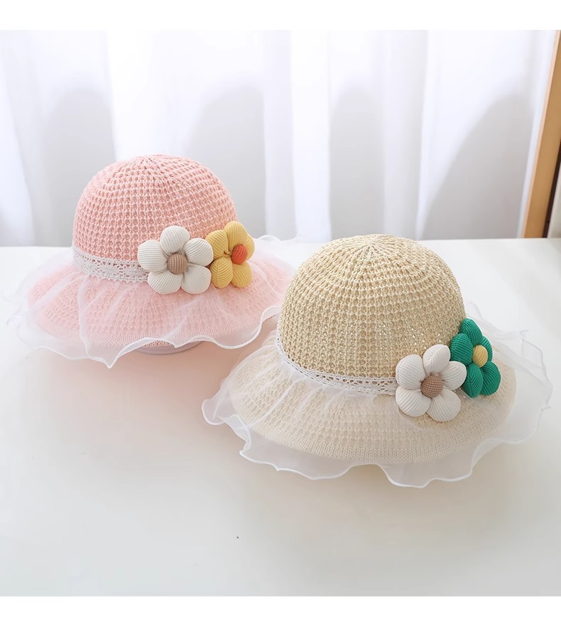 两朵大花定型儿童防晒帽夏女孩遮阳太阳帽夏款户外出游女宝宝草帽