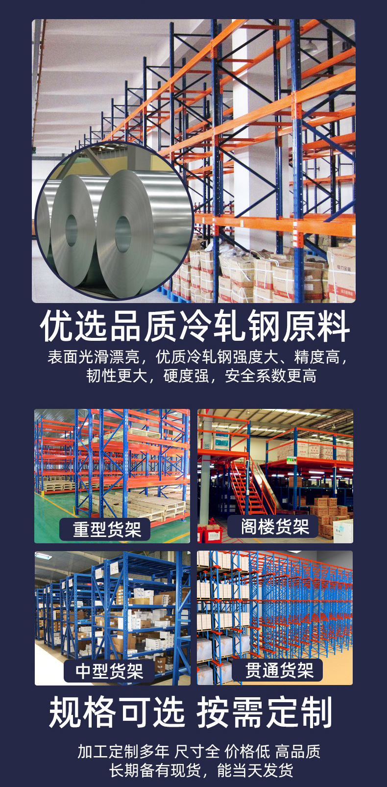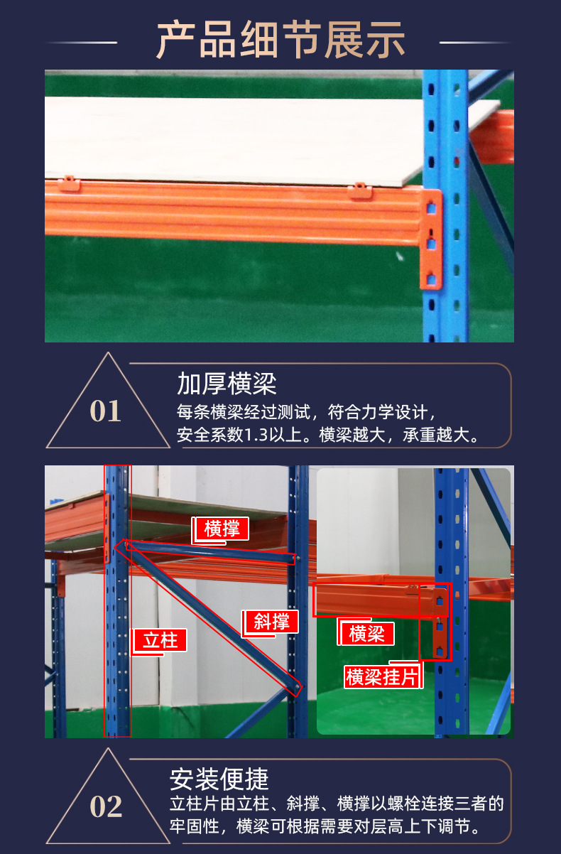 重型货架仓库加厚横梁式货架五金工厂库房高位立体库重型仓储货架