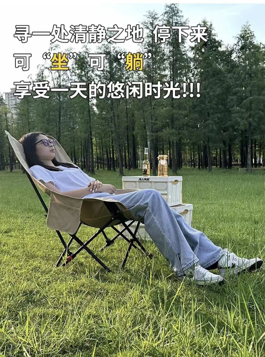 加高户外折叠月亮椅三档调节腿托躺椅野外露营野餐钓鱼沙滩午休椅