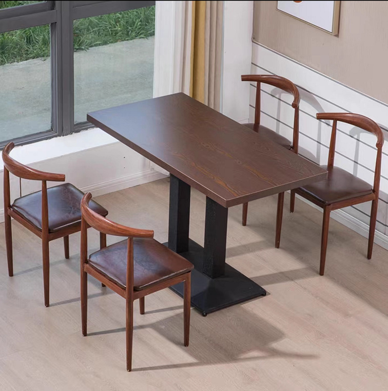批发餐饮小吃牛角椅饭堂商用餐桌食堂甜品奶茶店面馆快餐桌椅组合