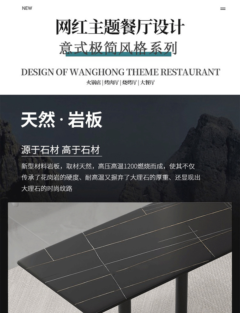 商用岩板桌奶茶店咖啡厅西餐厅长桌小吃售楼处接待洽谈快餐店桌椅
