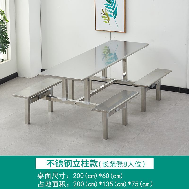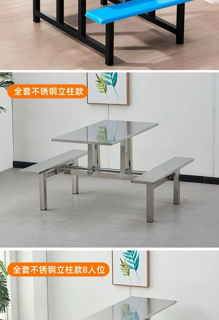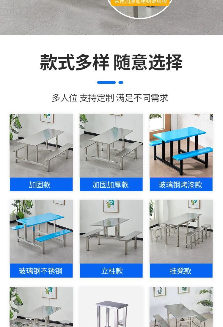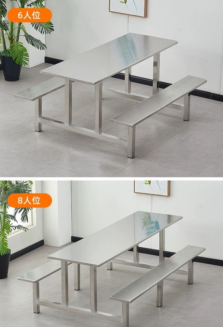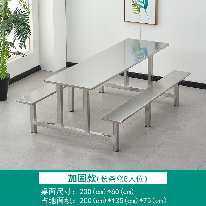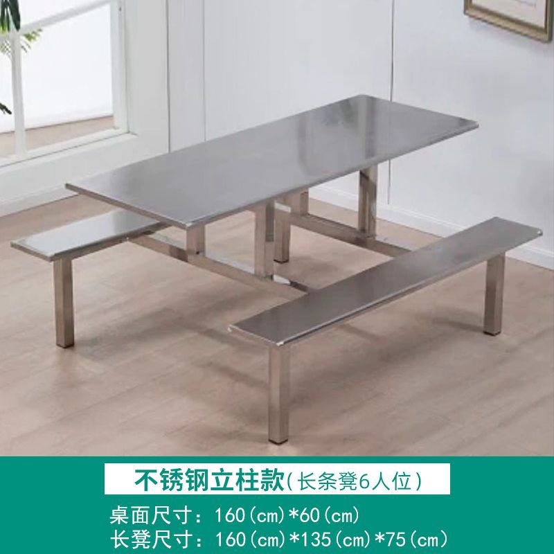 不锈钢餐桌椅加厚学校学生食堂工厂员工饭堂餐桌4人6人8人位连体