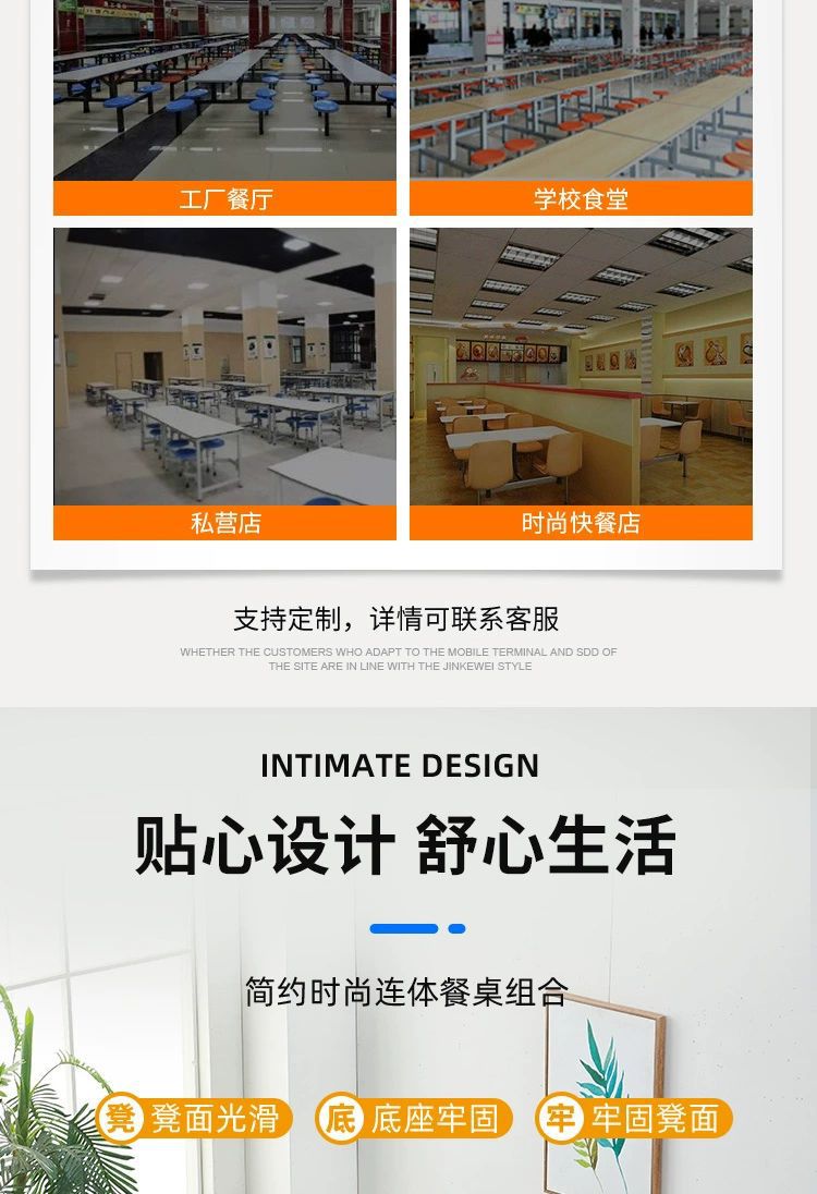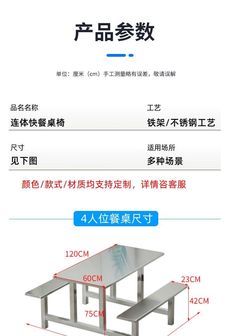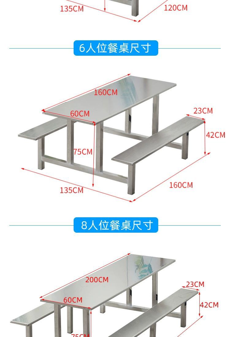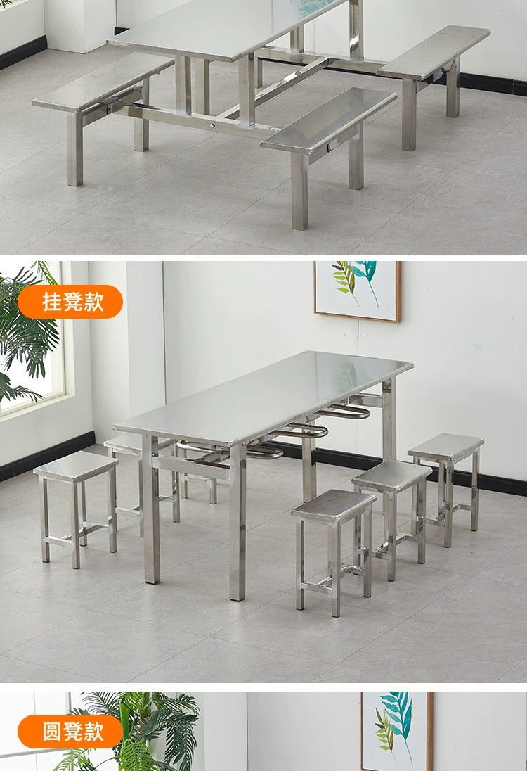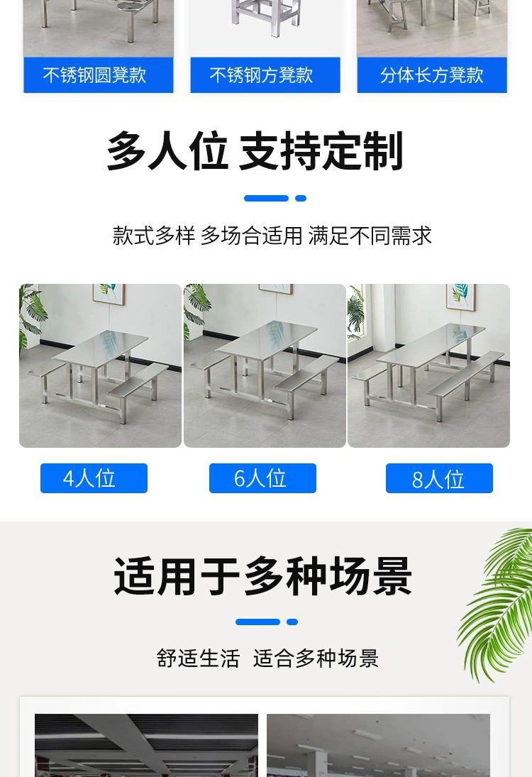 不锈钢餐桌椅加厚学校学生食堂工厂员工饭堂餐桌4人6人8人位连体