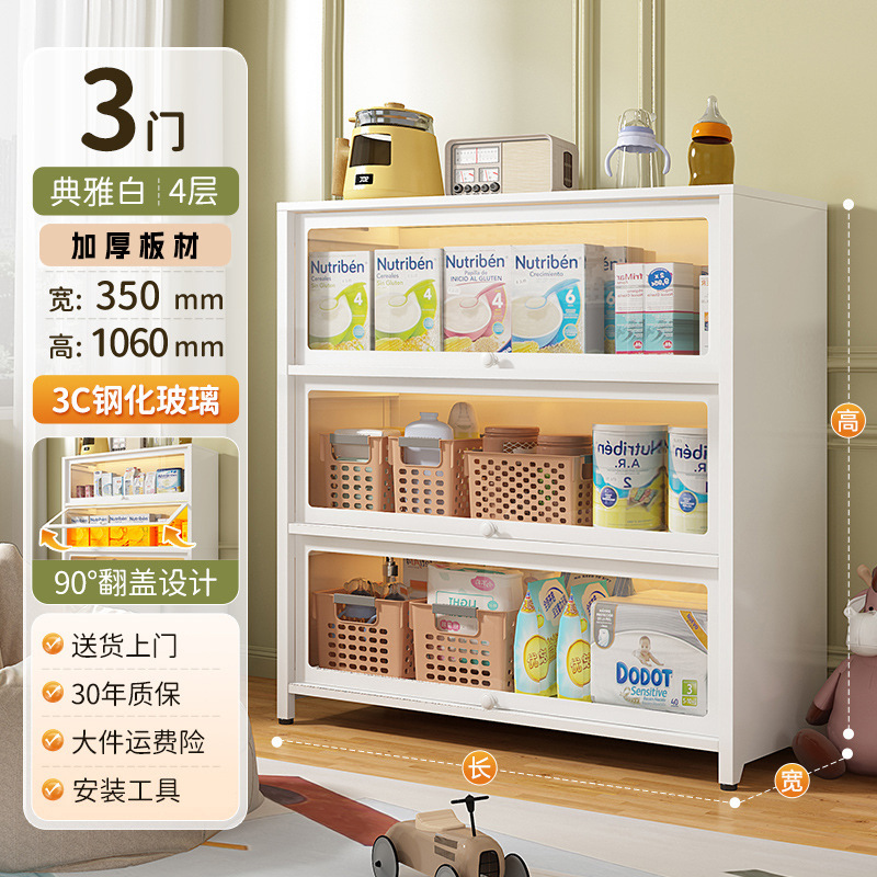 三箭家用钢制书柜防尘书架铁皮柜玻璃展示柜落地柜子收纳柜储物柜