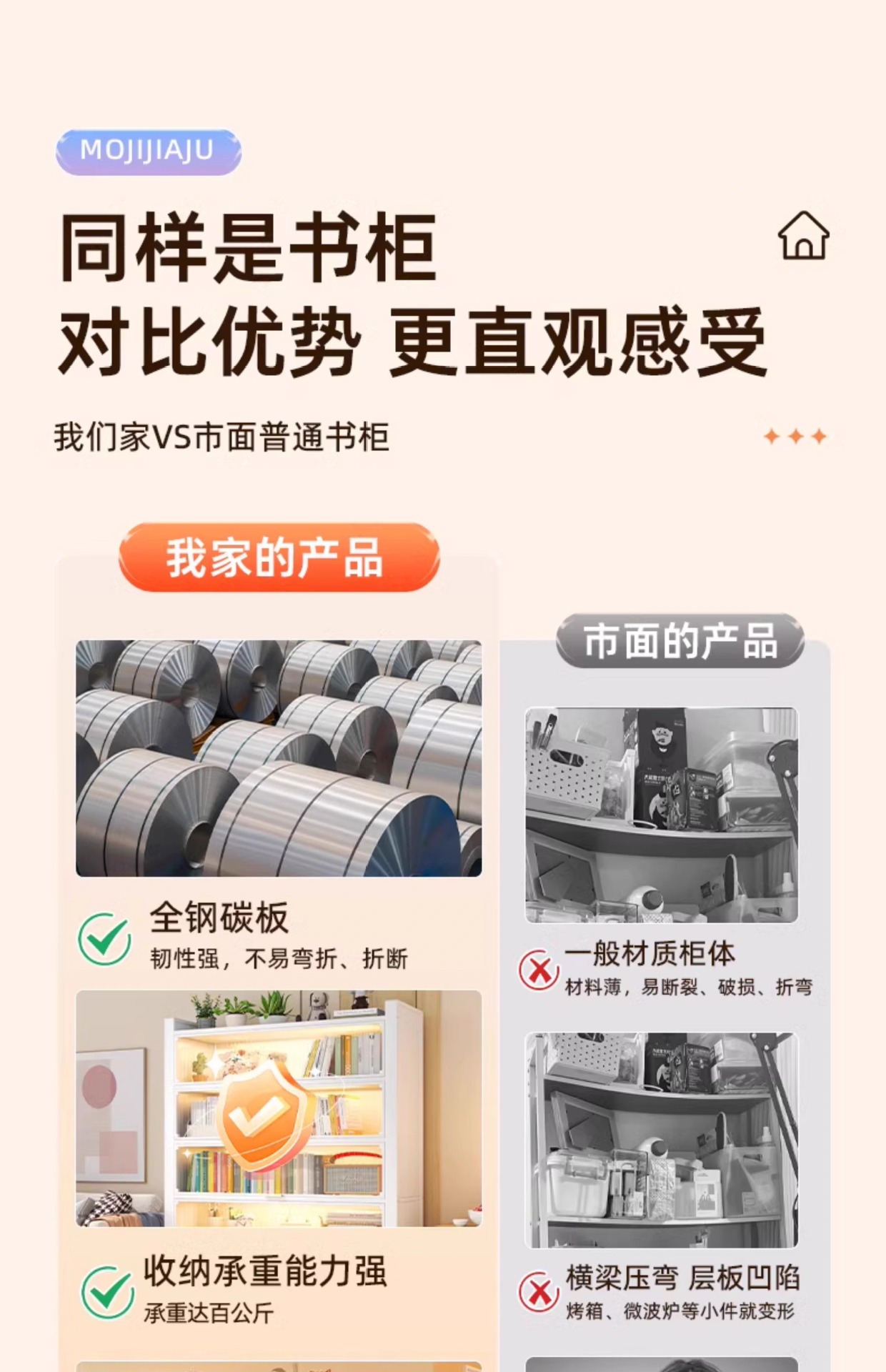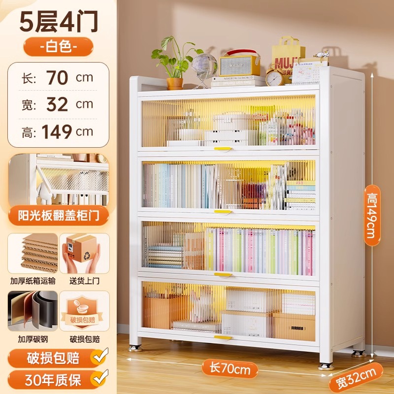 钢制书柜带门儿童书架防尘储物柜家用展示柜卧室落地收纳柜置物架