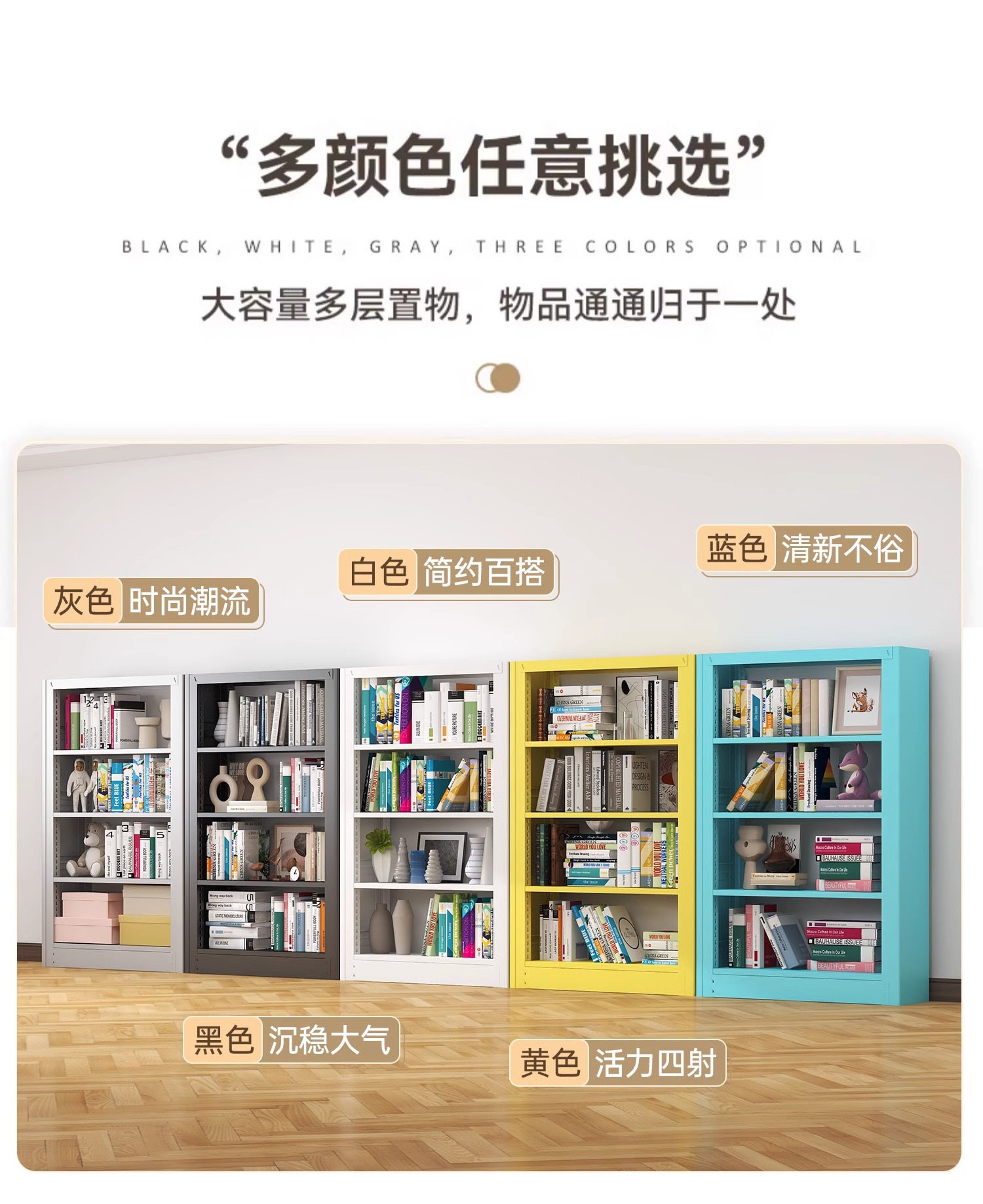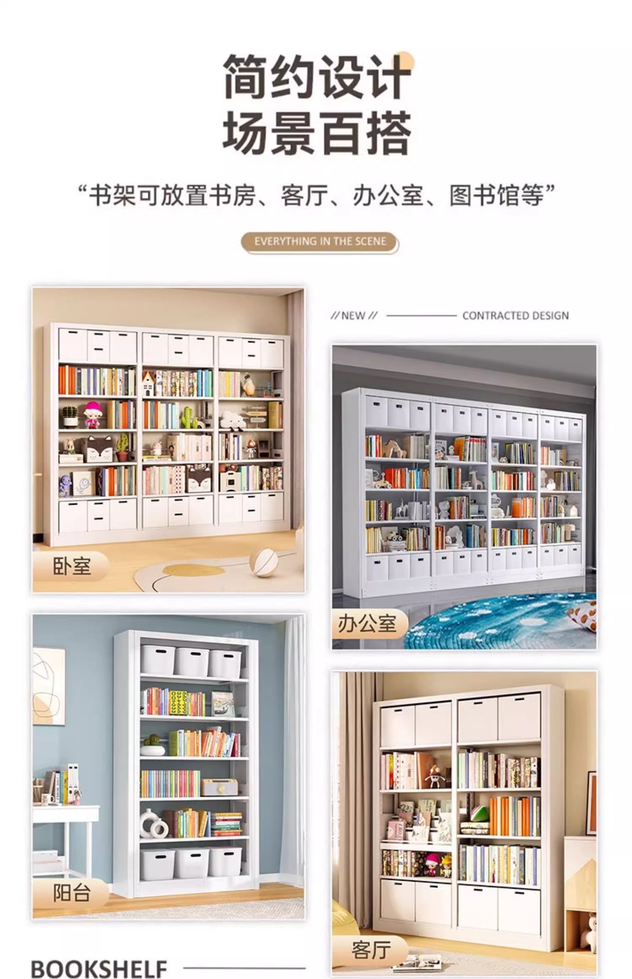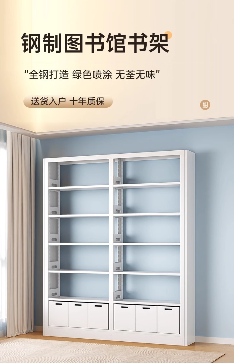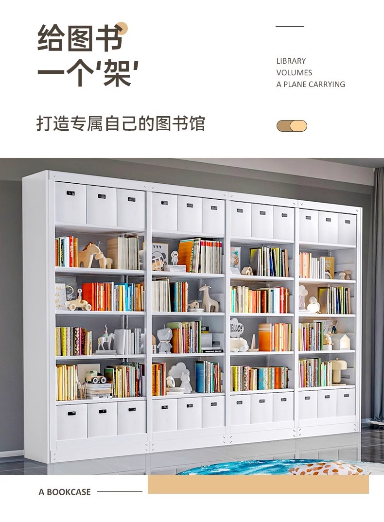 钢制书架图书馆家用儿童书柜绘本架落地置物架客厅简约铁艺储物架