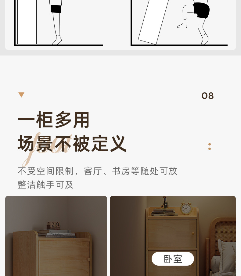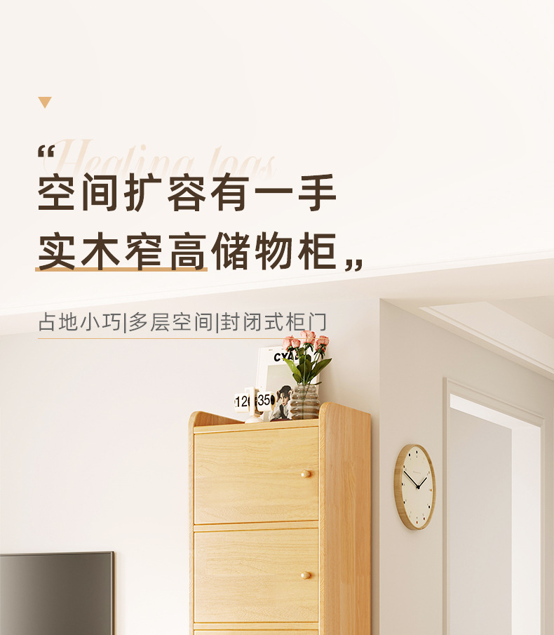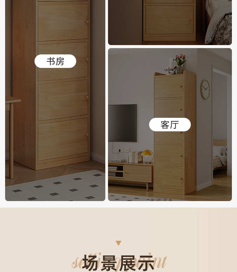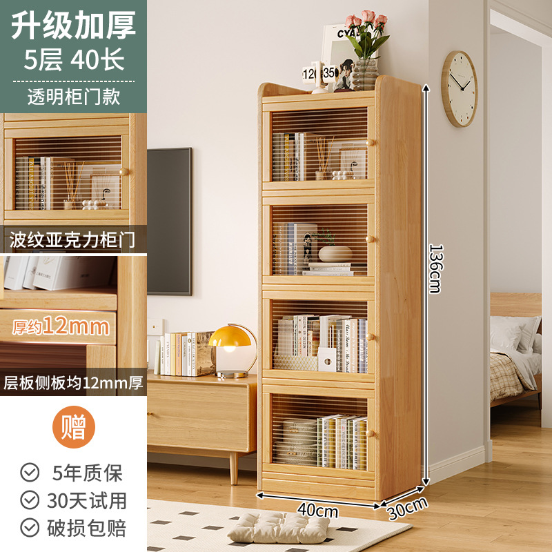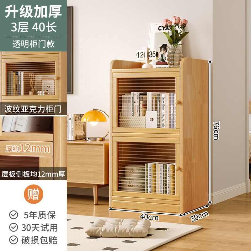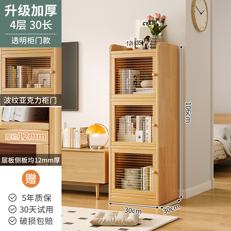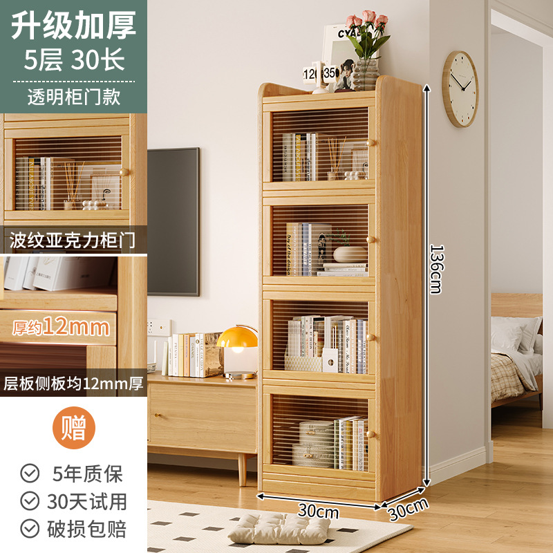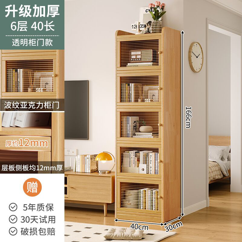 客厅电视柜旁立柜木书架储物一体收纳柜子亚克力高窄柜带门落地