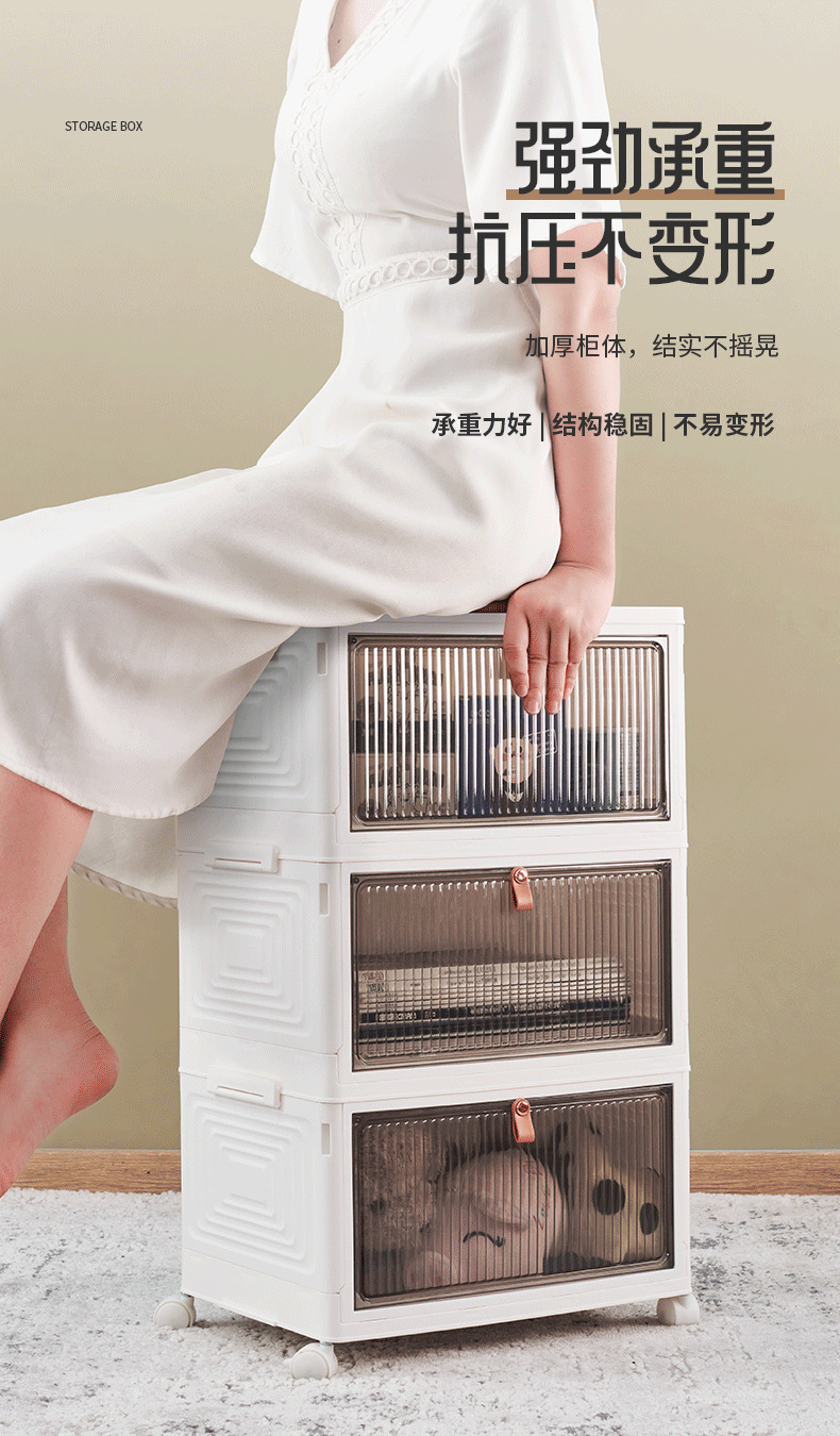 多功能家用可折叠收纳柜透明塑料防尘鞋柜玩具零食书本整理储物柜